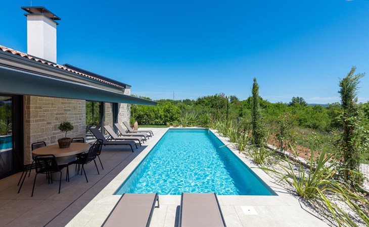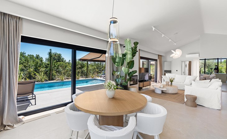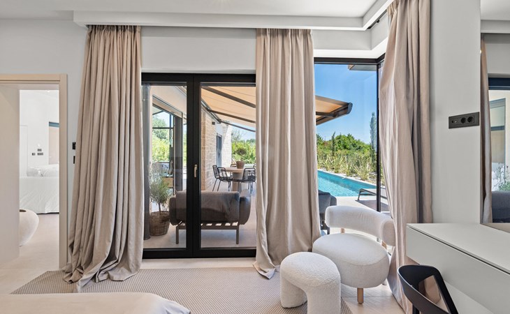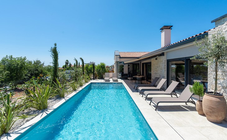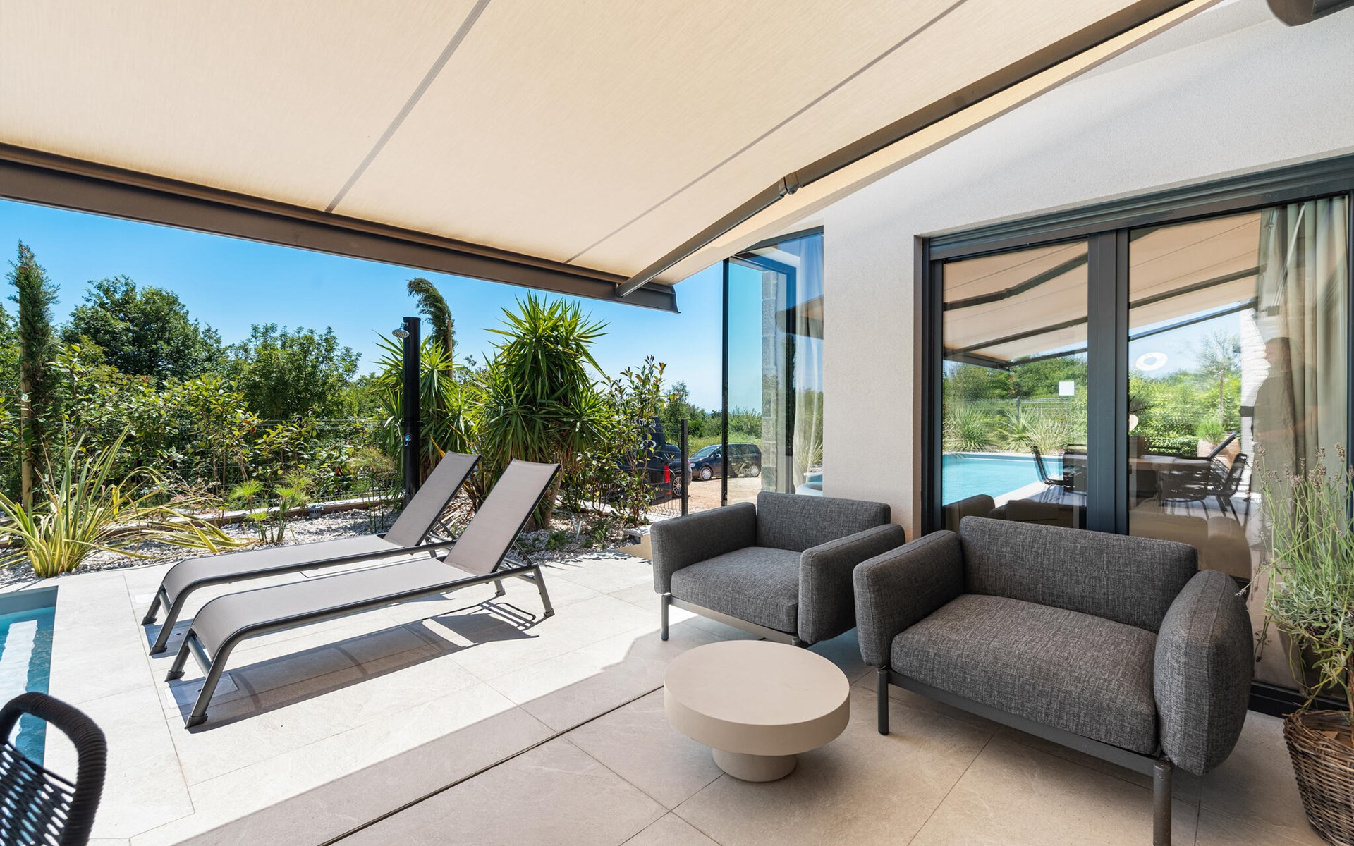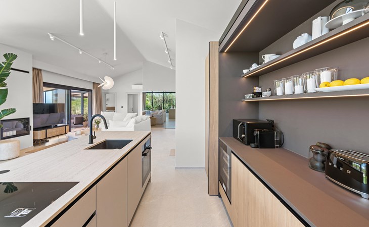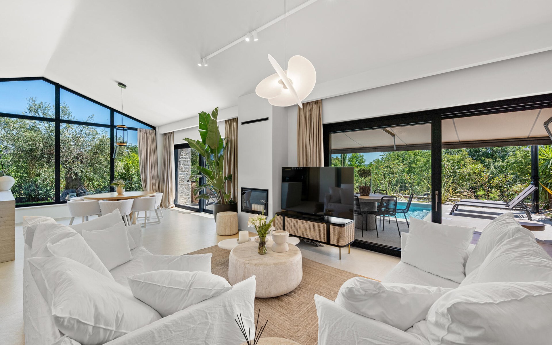 Öffnen Sie morgens die bodentiefen Fenster und genießen Sie den Ausblick in den gepflegten Garten und die mediterrane Landschaft. Ziehen Sie im Pool Ihre Bahnen, spielen Sie ausgelassen Wasserball oder entspannen Sie sich auf einer Sonnenliege mit einem Buch. Kommen Sie abends zum Grillen zusammen und lassen Sie den Tag entspannt ausklingen.