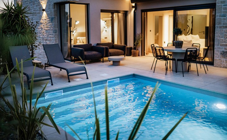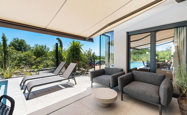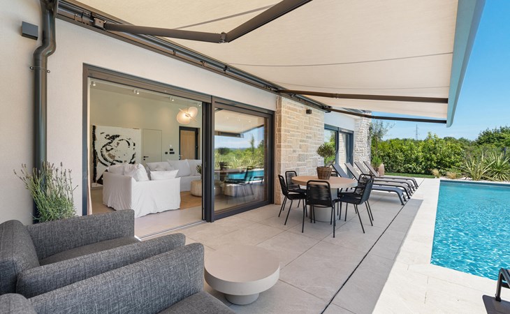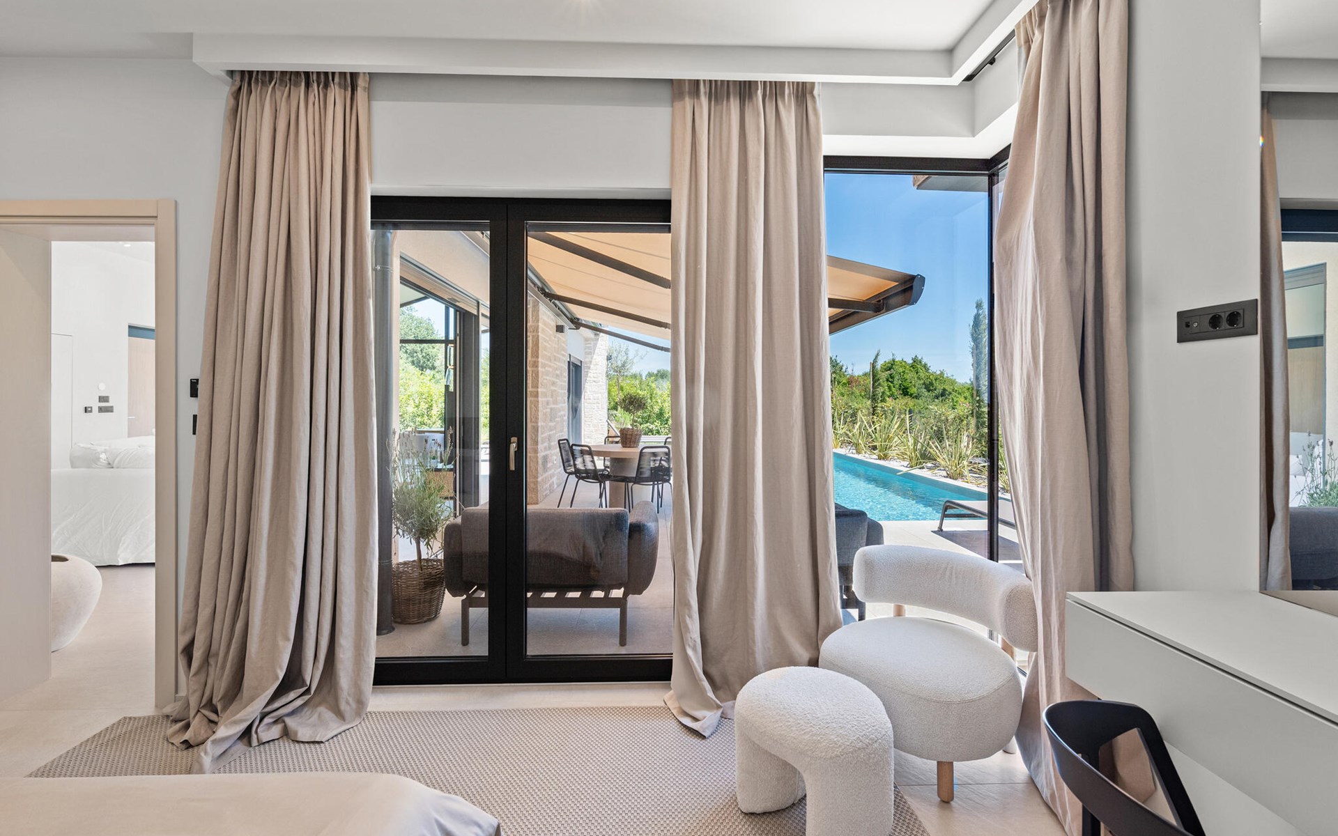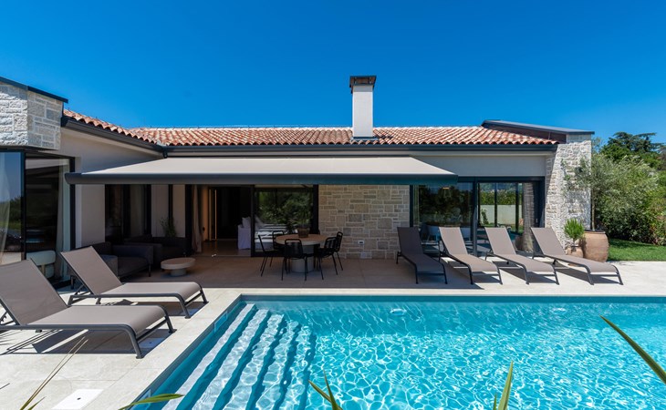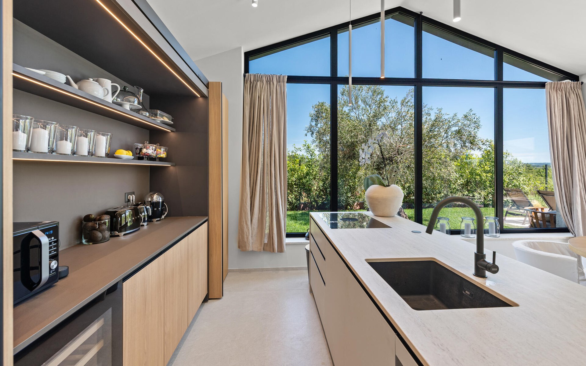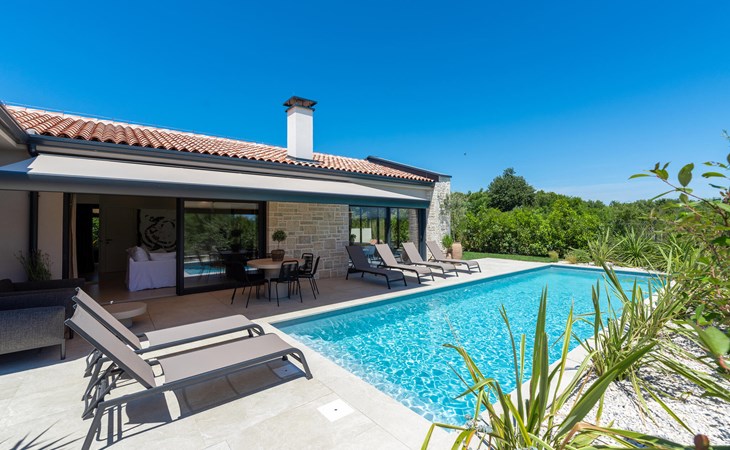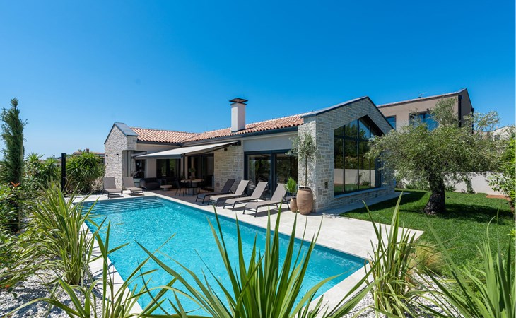 Öffnen Sie morgens die bodentiefen Fenster und genießen Sie den Ausblick in den gepflegten Garten und die mediterrane Landschaft. Ziehen Sie im Pool Ihre Bahnen, spielen Sie ausgelassen Wasserball oder entspannen Sie sich auf einer Sonnenliege mit einem Buch. Kommen Sie abends zum Grillen zusammen und lassen Sie den Tag entspannt ausklingen.
