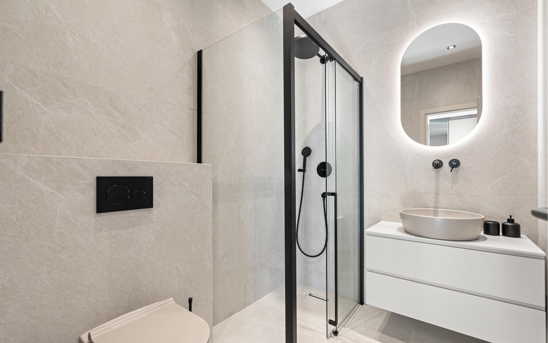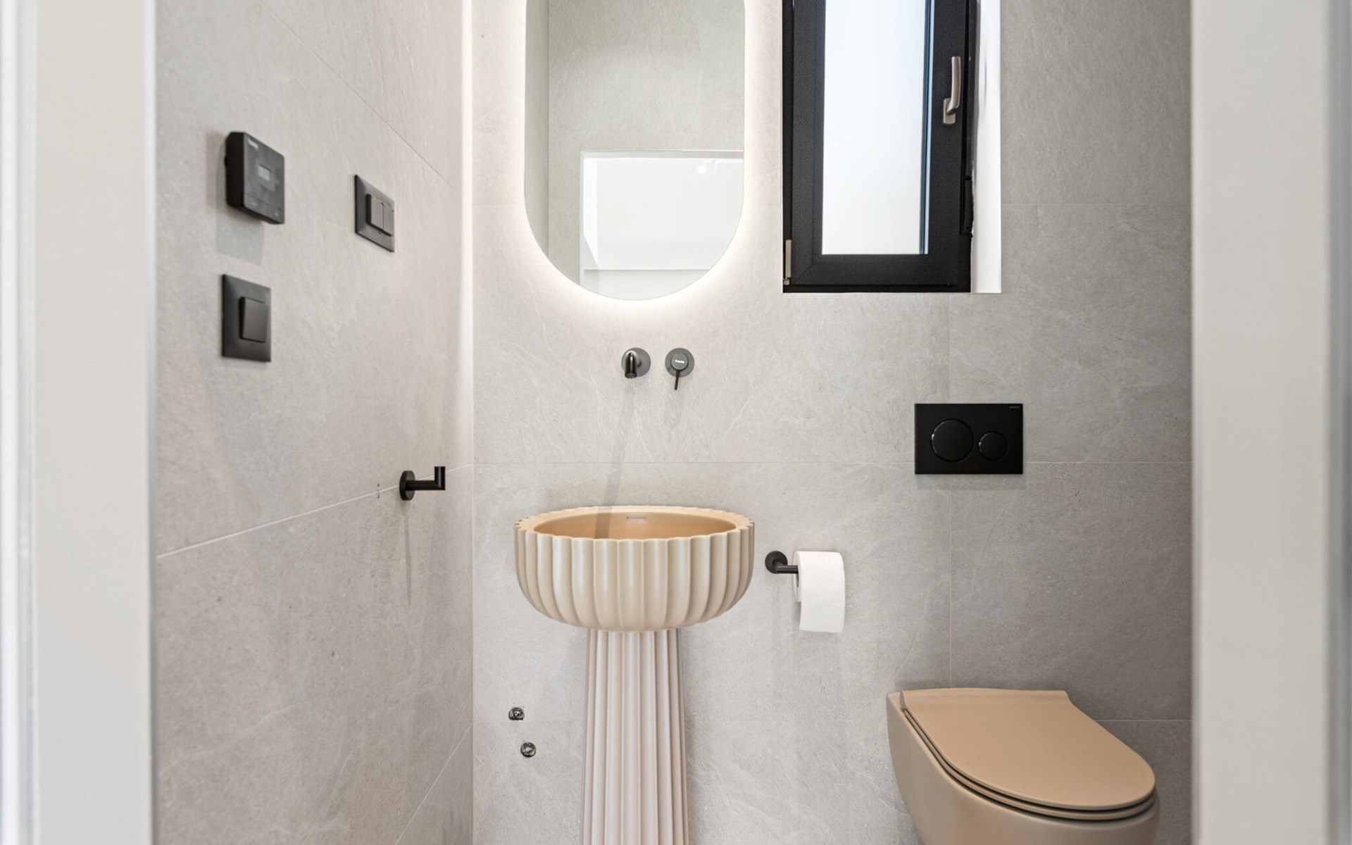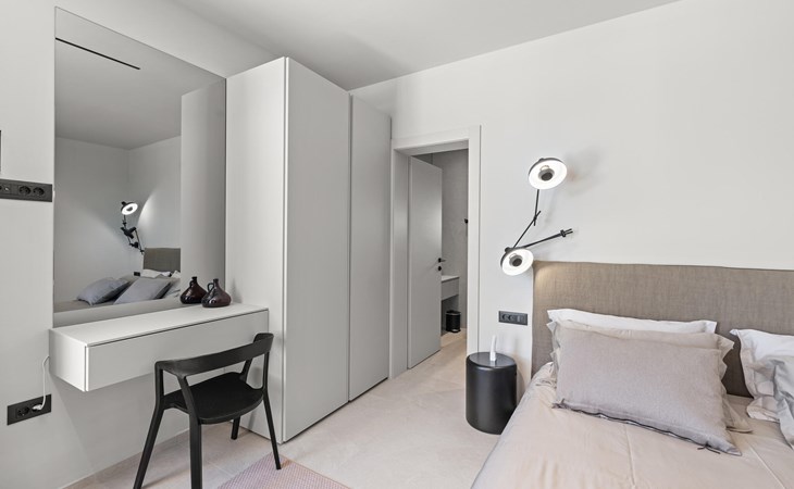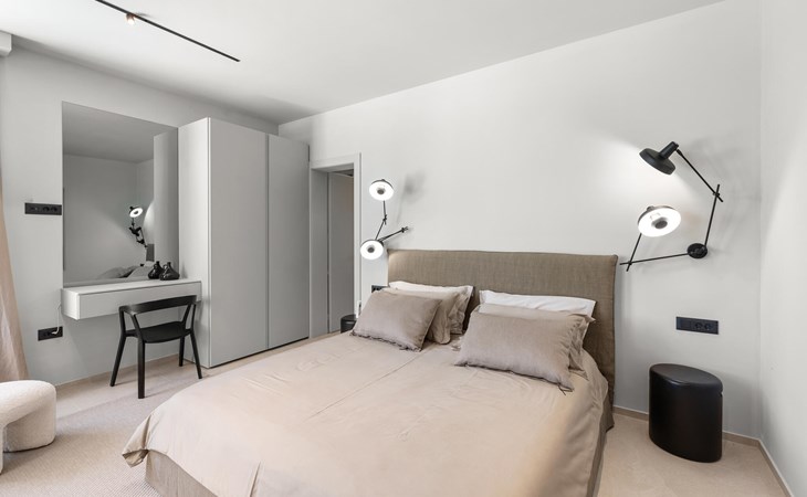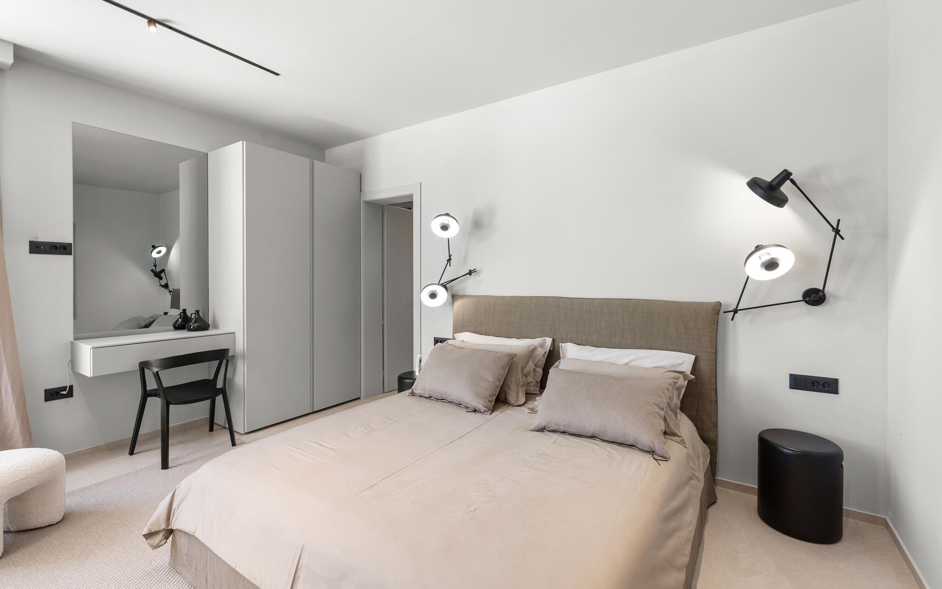 In diesem stilvollen Haus vereinen sich Komfort, Eleganz und Behaglichkeit auf hervorragende Weise. Bodentiefe Fenster, eine bequeme Sofalandschaft in Weiß, Böden in Holzoptik und Designerlampen schaffen eine ganz besondere Atmosphäre. Entspannen Sie sich hier mit einem Drink auf dem Sofa, zaubern Sie leckere Gerichte in der modernen Küche oder versammeln Sie sich für einen gemeinsamen Filmabend.