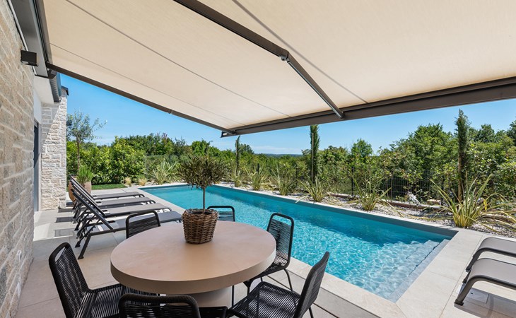 Genießen Sie einen traumhaften Urlaub in diesem luxuriösen Ferienhaus mit Pool und Panoramablick.