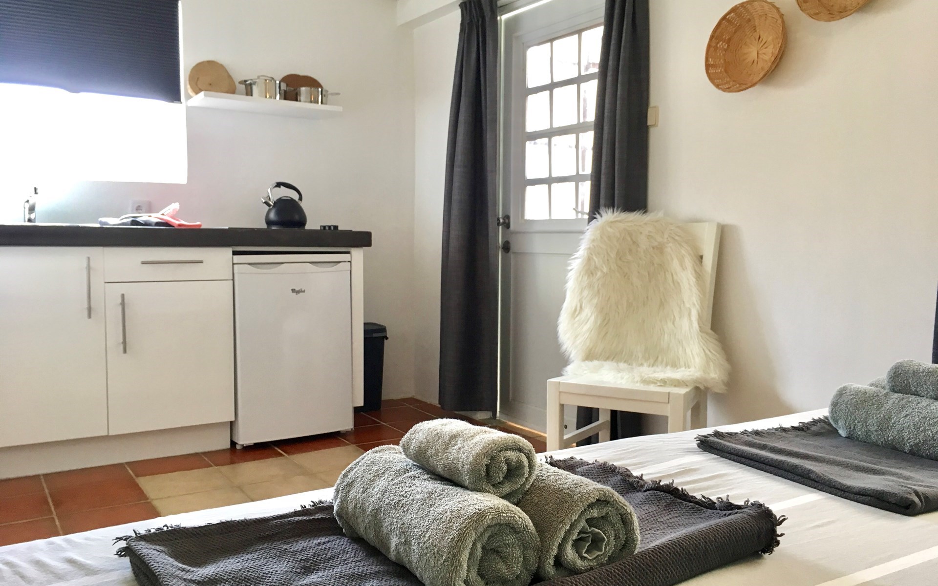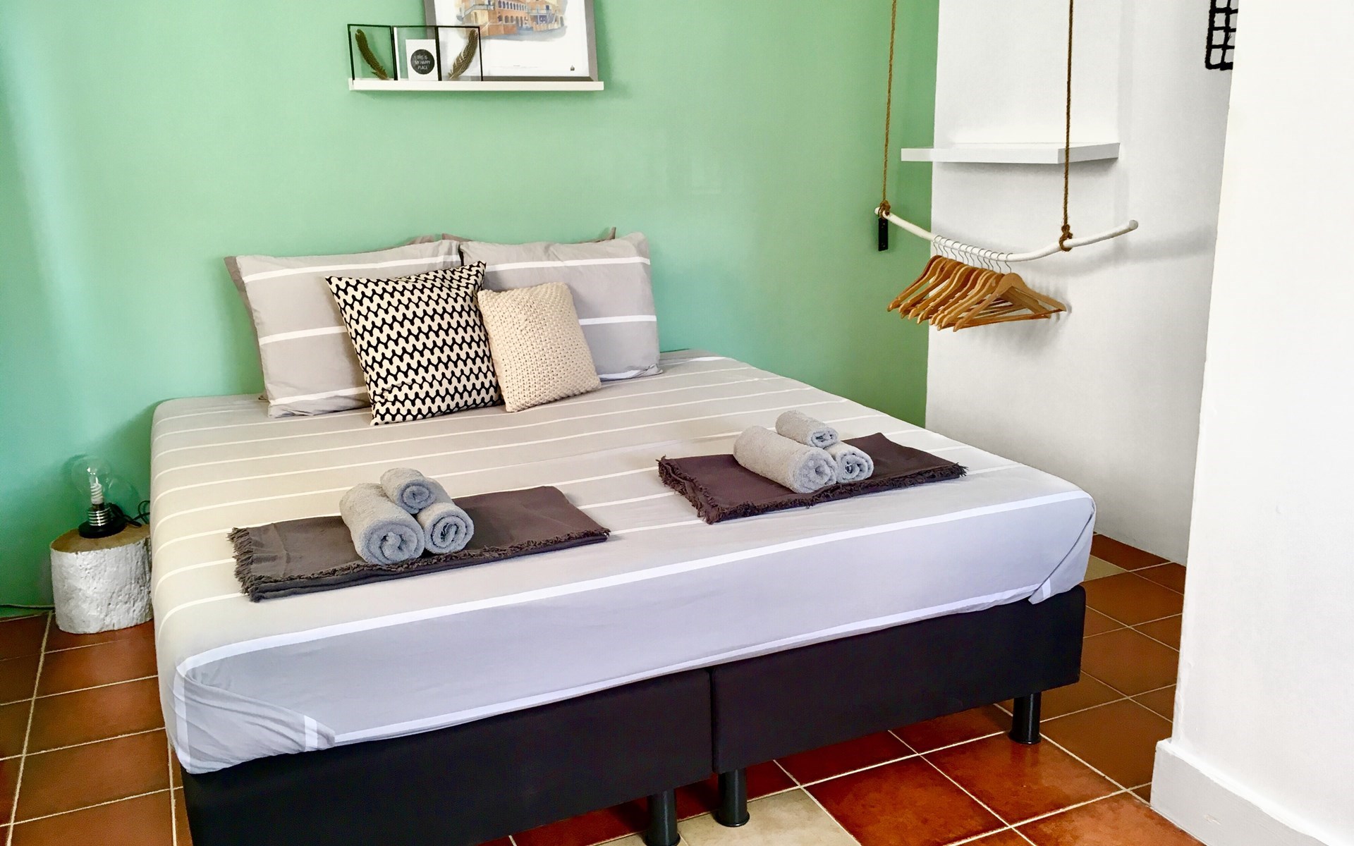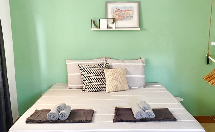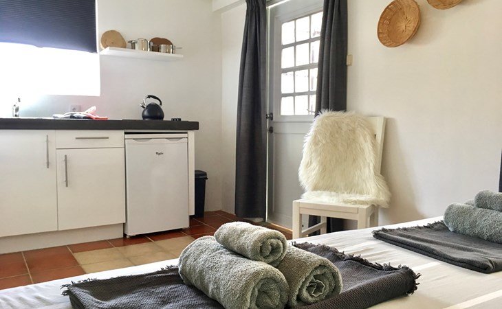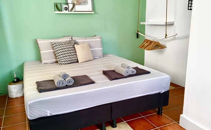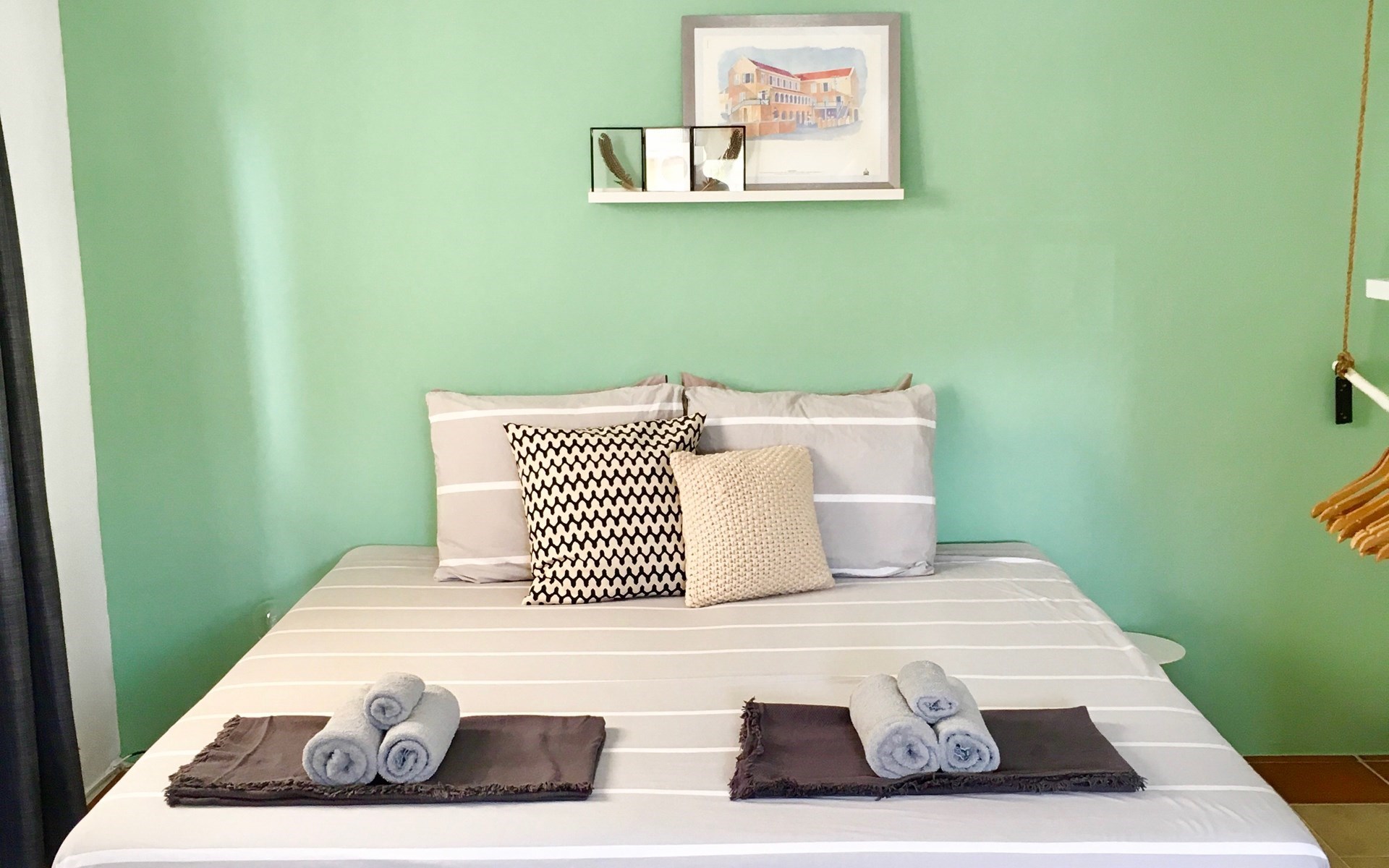 Dieses gemütliche Studio ist separat vom Wohnhaus gelegen und für maximal 2 Personen geeignet. Es verfügt über ein Doppel-Boxspringbett, eine Küchenzeile mit Kühlschrank und Induktionskochfeld sowie ein Badezimmer mit Toilette, Warmwasserdusche und Waschbecken. Darüber hinaus ist das Studio mit einer Klimaanlage und 220-V-Steckdosen ausgestattet.