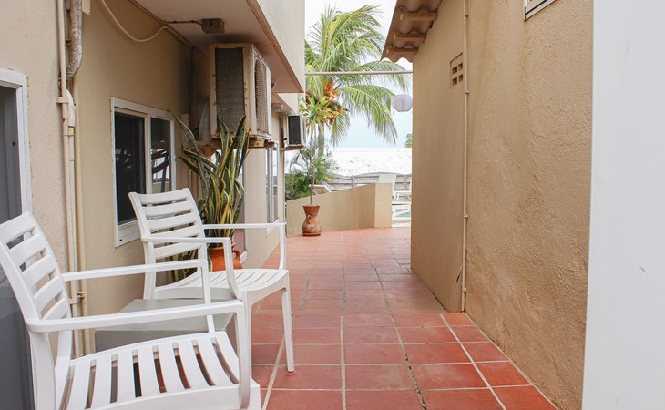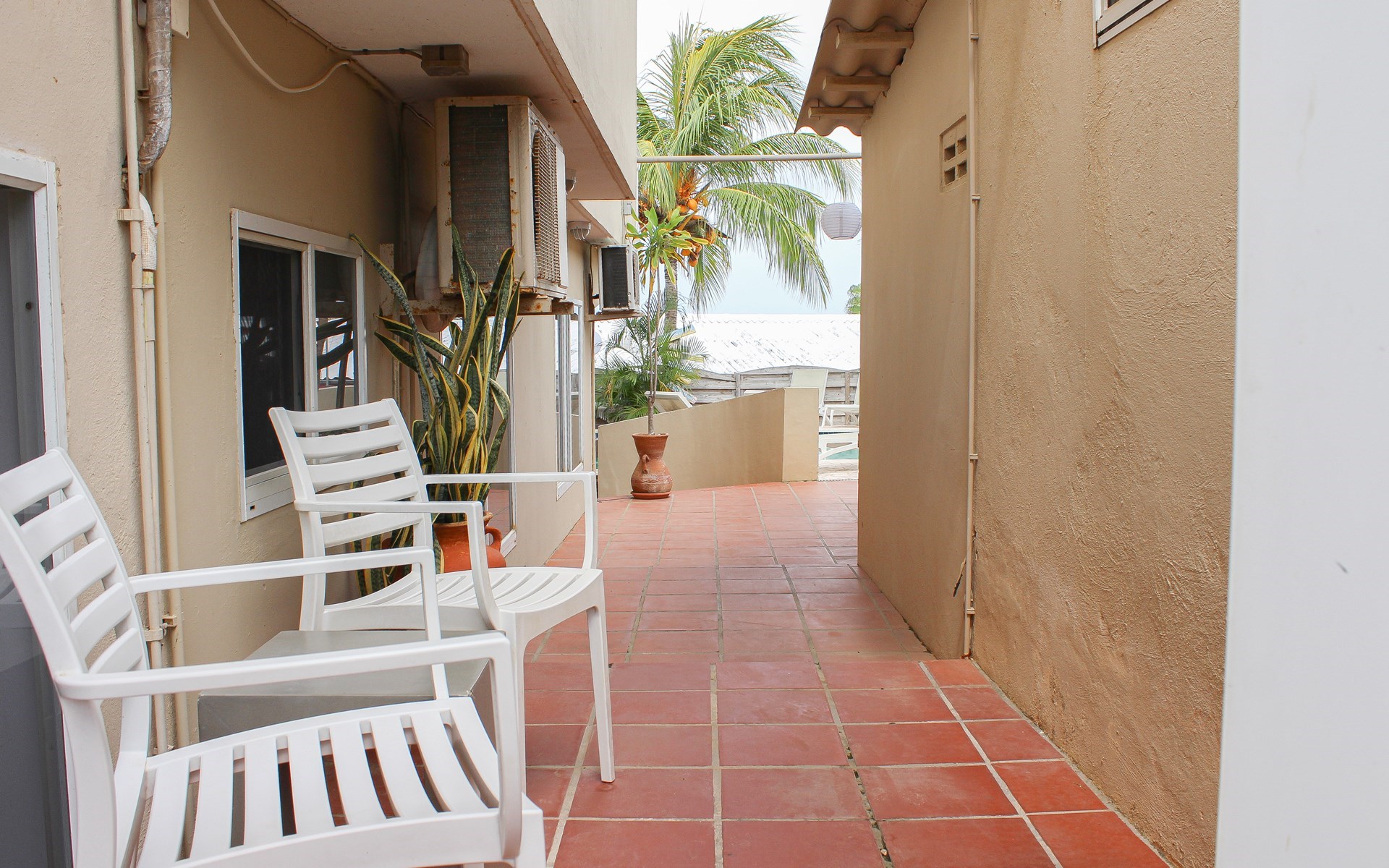 Hinter dem Haus befindet sich ein schöner großer Garten. Dieser Garten verfügt über einen privaten Pool des Resorts mit mehreren Liegestühlen. Es gibt eine gemütliche Bar mit einer hochwertigen Kaffeemaschine. Alle Apartments verfügen über einen eigenen Sitzbereich im Freien, aber es gibt auch einen gemütlichen großen Esstisch zur gemeinsamen Nutzung. Innerhalb der Mauern und hinter dem elektronischen Tor gibt es ausreichend Parkplätze, um Ihr Auto sicher abzustellen.