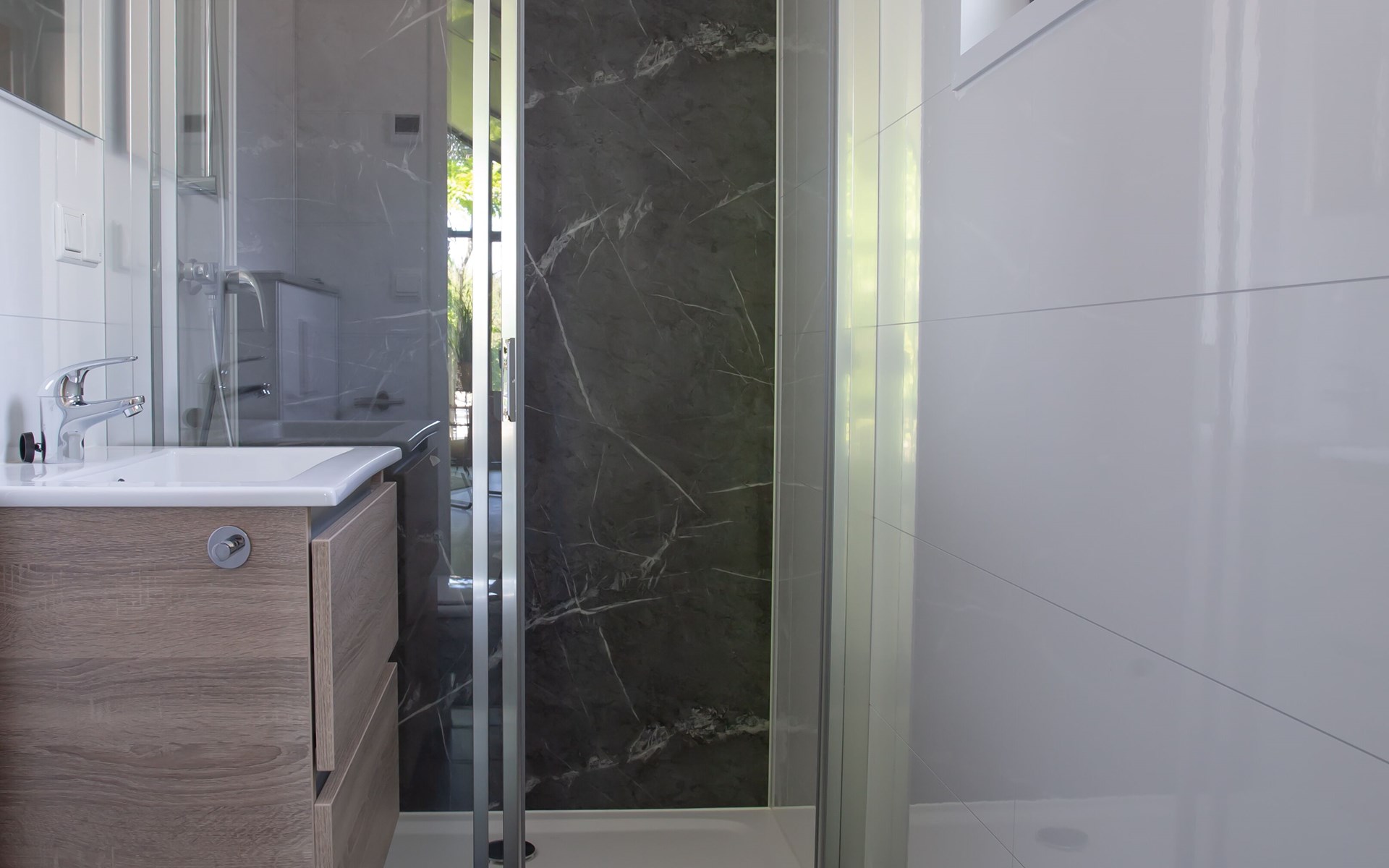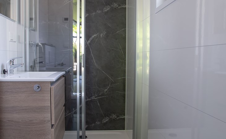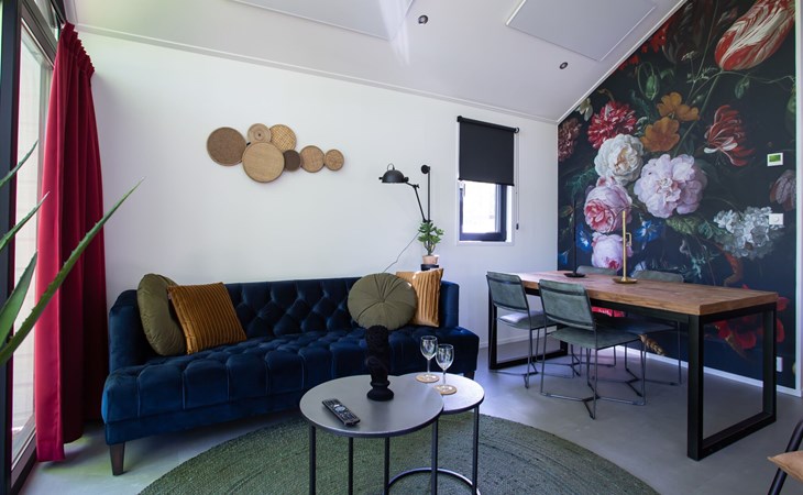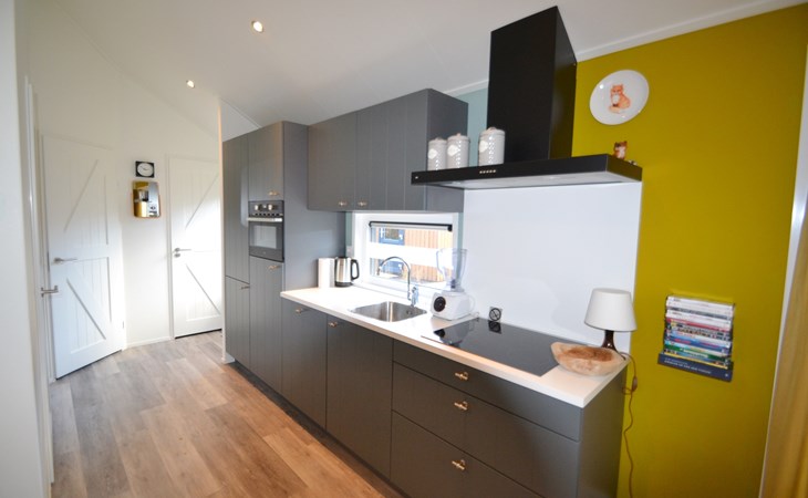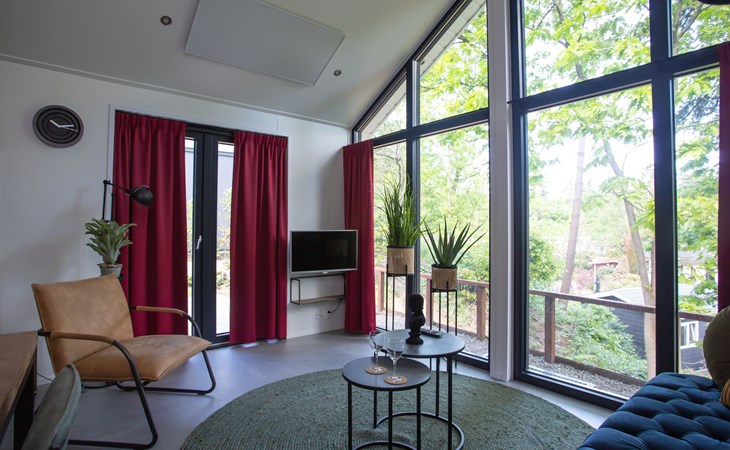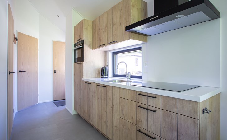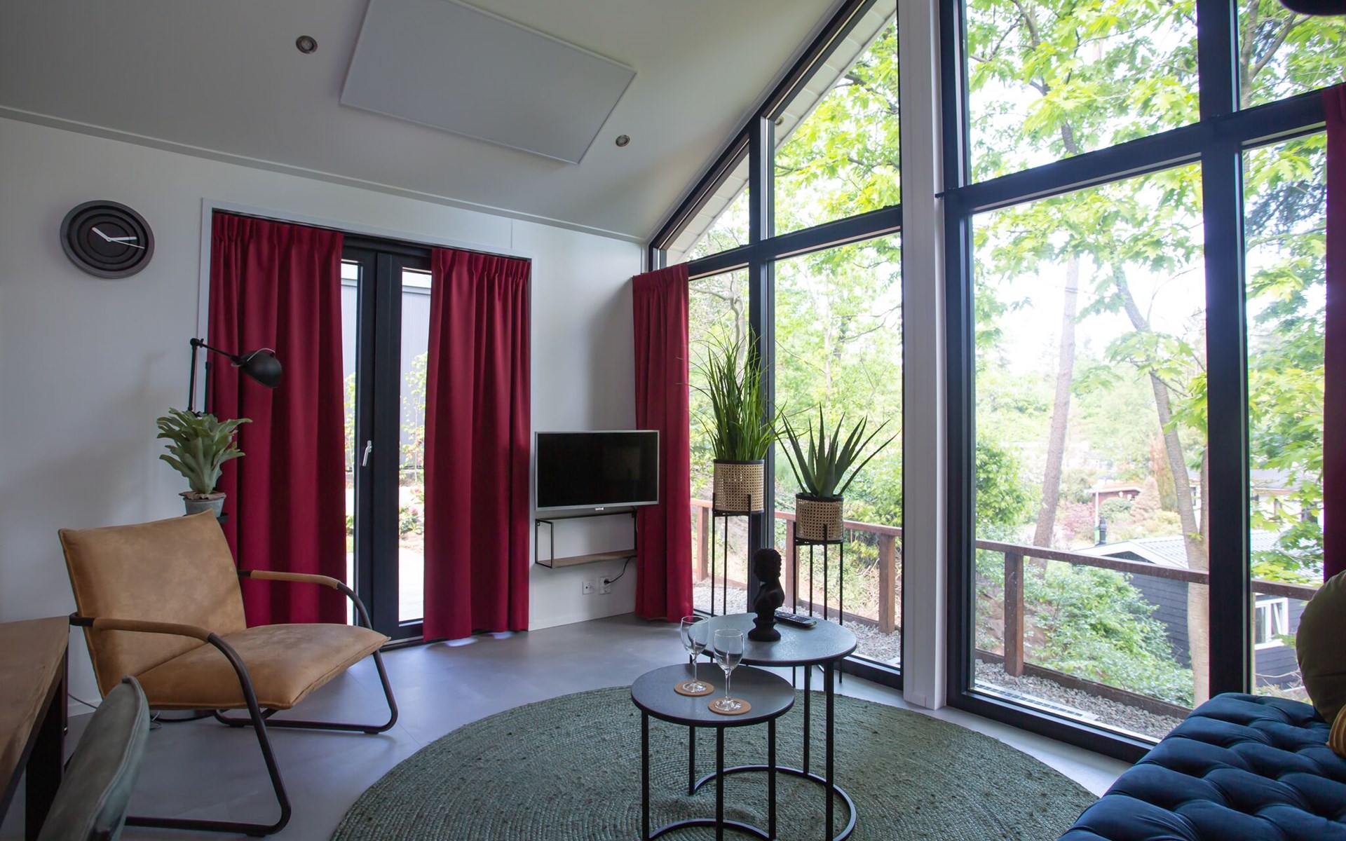 Das Eco Cottage verfügt über ein gemütliches Wohnzimmer mit bequemer Sitzecke und Essbereich für vier Personen. Die offene Küche ist vollständig mit modernen Geräten ausgestattet, darunter eine Nespresso-Maschine, eine Kombimikrowelle und ein Geschirrspüler. Die zwei komfortablen Schlafzimmer bieten ein Doppelbett und zwei Einzelbetten. Das luxuriöse Badezimmer verfügt über eine begehbare Dusche, ein Waschbecken und eine Toilette. Draußen erwartet Sie eine große Terrasse mit überdachter Veranda, wo Sie auch bei weniger gutem Wetter entspannt sitzen können. Der große Garten bietet zusätzliche Privatsphäre und ist der perfekte Ort, um die Ruhe der Natur zu genießen.