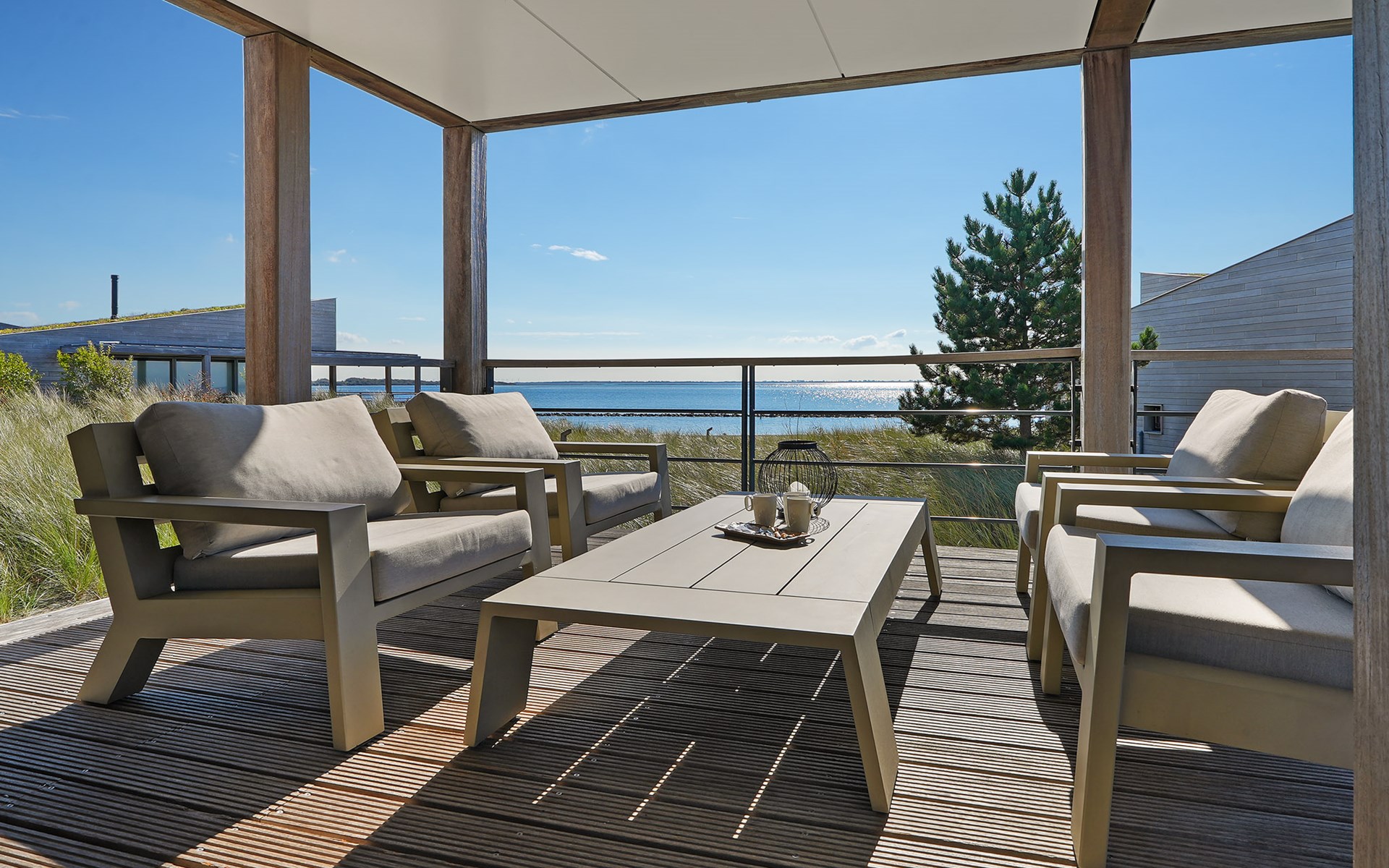 Treten Sie hinaus auf Ihre großzügige Terrasse, die für das Essen im Freien und zum Entspannen eingerichtet ist, und genießen Sie den ungestörten Blick auf den See und die umliegenden Dünen. Es ist der perfekte Ort, um ein Frühstück in der Sonne, ein Nachmittagsschläfchen oder ein Glas Wein bei Sonnenuntergang nach einem Tag am Strand zu genießen.