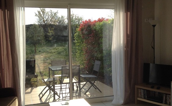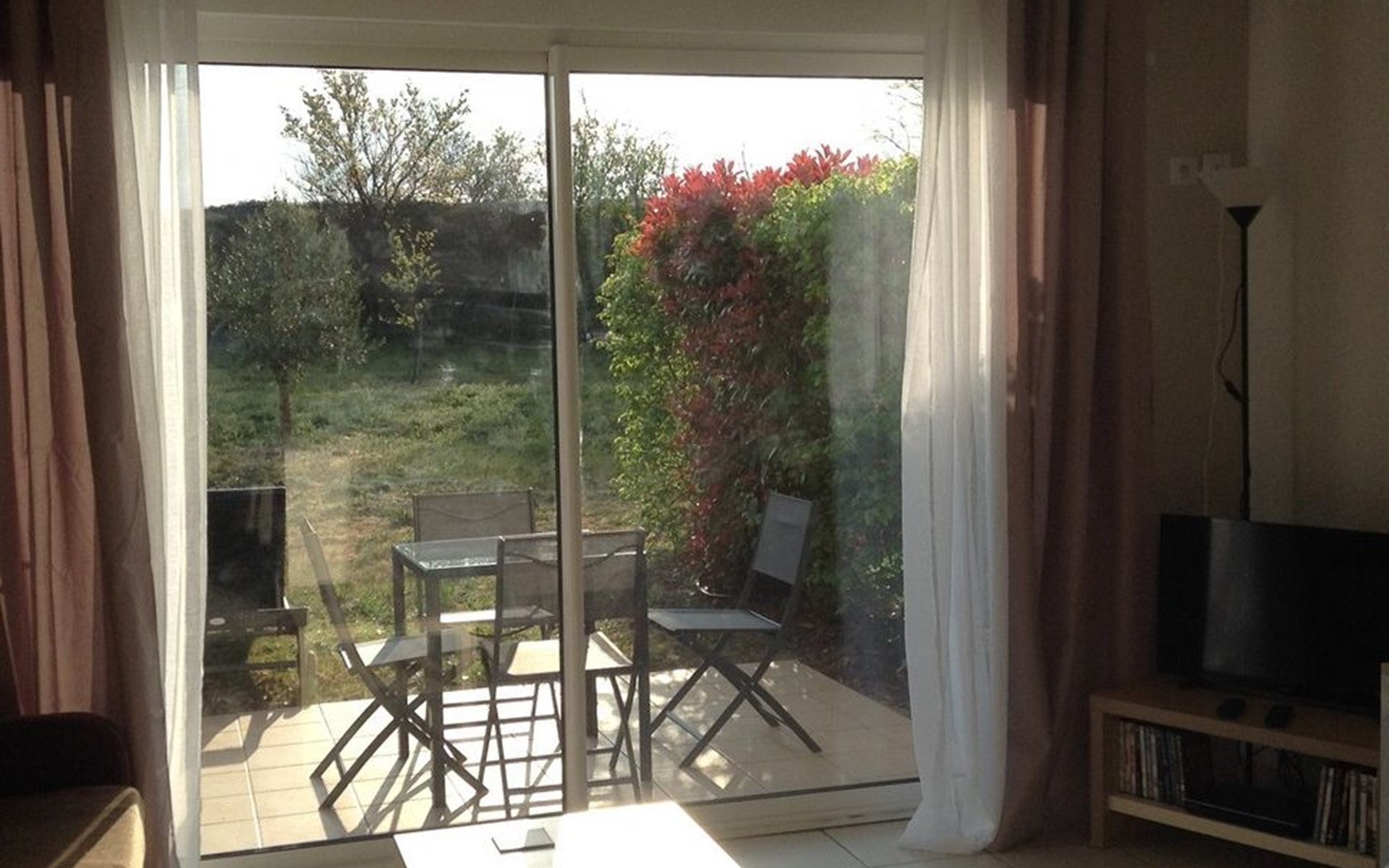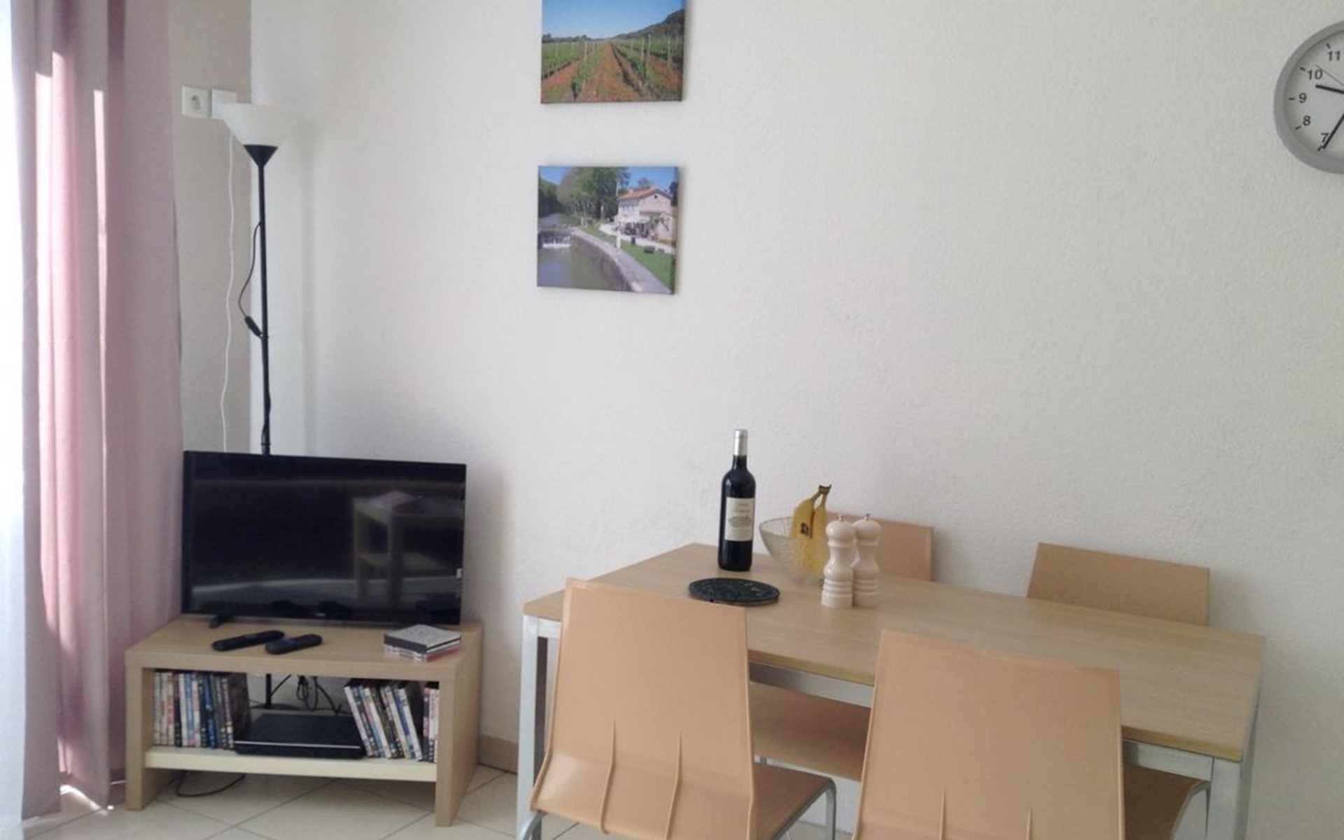Wunderschöne und gemütliche Ferienwohnung in Azille, Languedoc Roussillon, Frankreich mit Gemeinschaftspool für 4 Personen. Die Wohnung liegt in einem Ferienkomplex mit Bar und Restaurant und in einer hügeligen und ländlichen Umgebung.