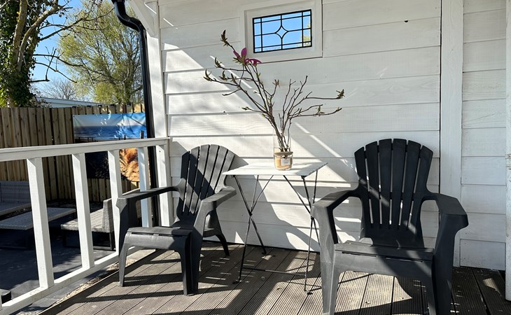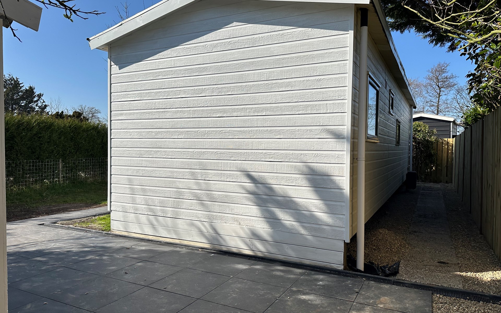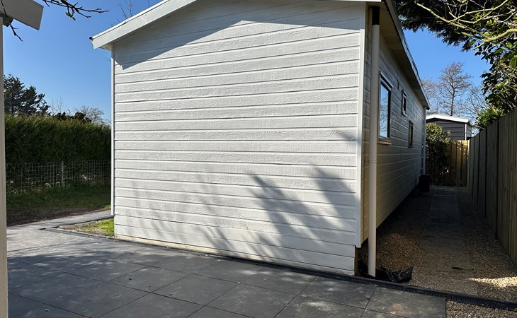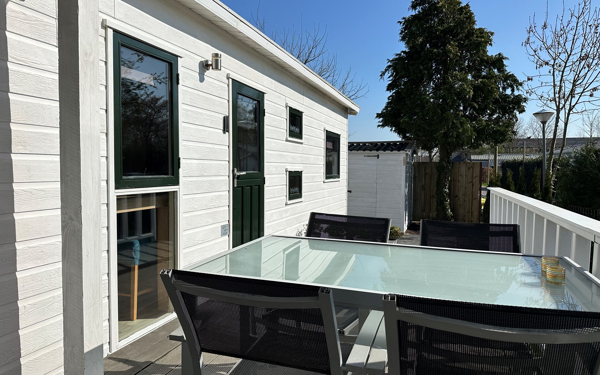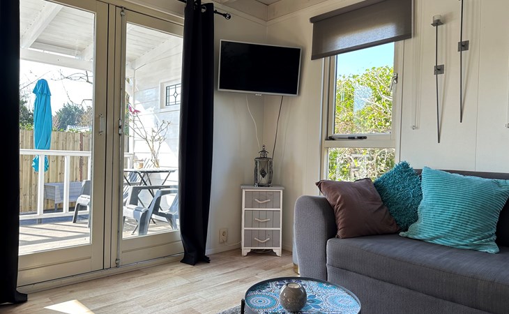 Das Grundstück ist komplett eingezäunt und bietet viel Privatsphäre, ideal, um Ruhe und Frieden zu genießen. Das Chalet verfügt über eine großzügige Terrasse mit attraktivem Baldachin, die sich tagsüber und abends perfekt zum Draußensitzen eignet. Außerdem gibt es einen gemütlichen Loungebereich mit Sonnenschirm, wo Sie entspannen können. Für alle, die gerne im Freien kochen, gibt es einen Außengrill. Auch an die Bequemlichkeit wurde gedacht: In der Nähe des Chalets befindet sich ein privater Parkplatz, sodass Sie bequem ein- und ausfahren können.