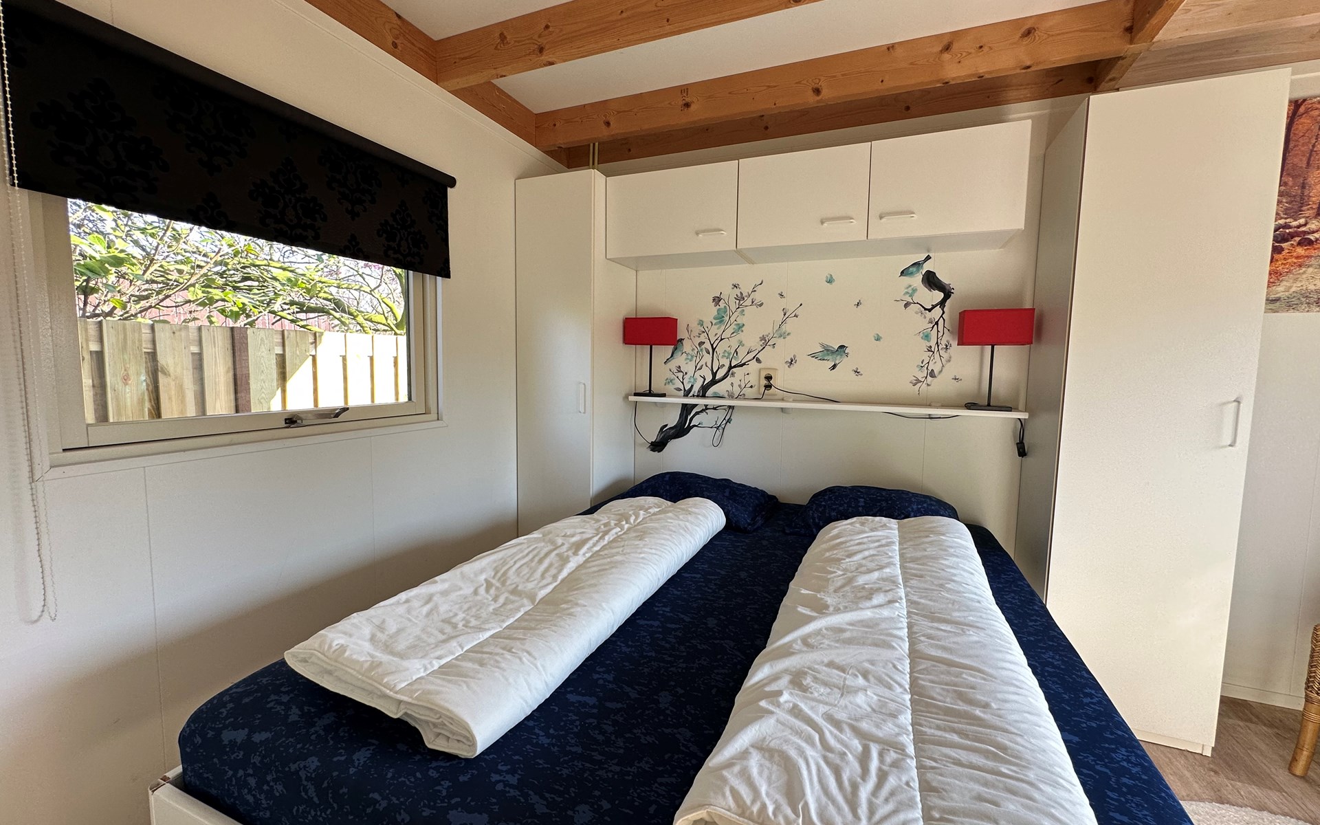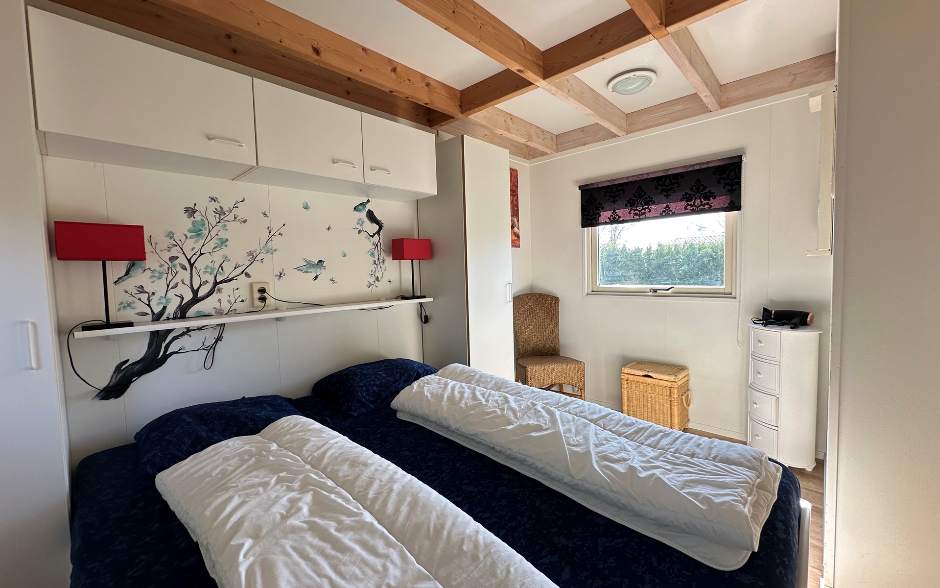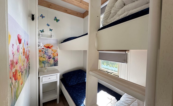 Die Schlafzimmer sind sorgfältig für einen angenehmen Aufenthalt eingerichtet. Das größere Schlafzimmer verfügt über zwei große Kleiderschränke, drei kleine Kleiderschränke, einen Wäschekorb, einen Schrank für Toilettenartikel, einen Spiegel und einen Haartrockner sowie ein Doppelbett. Das kleinere Schlafzimmer verfügt über ein Etagenbett mit Nachttisch.