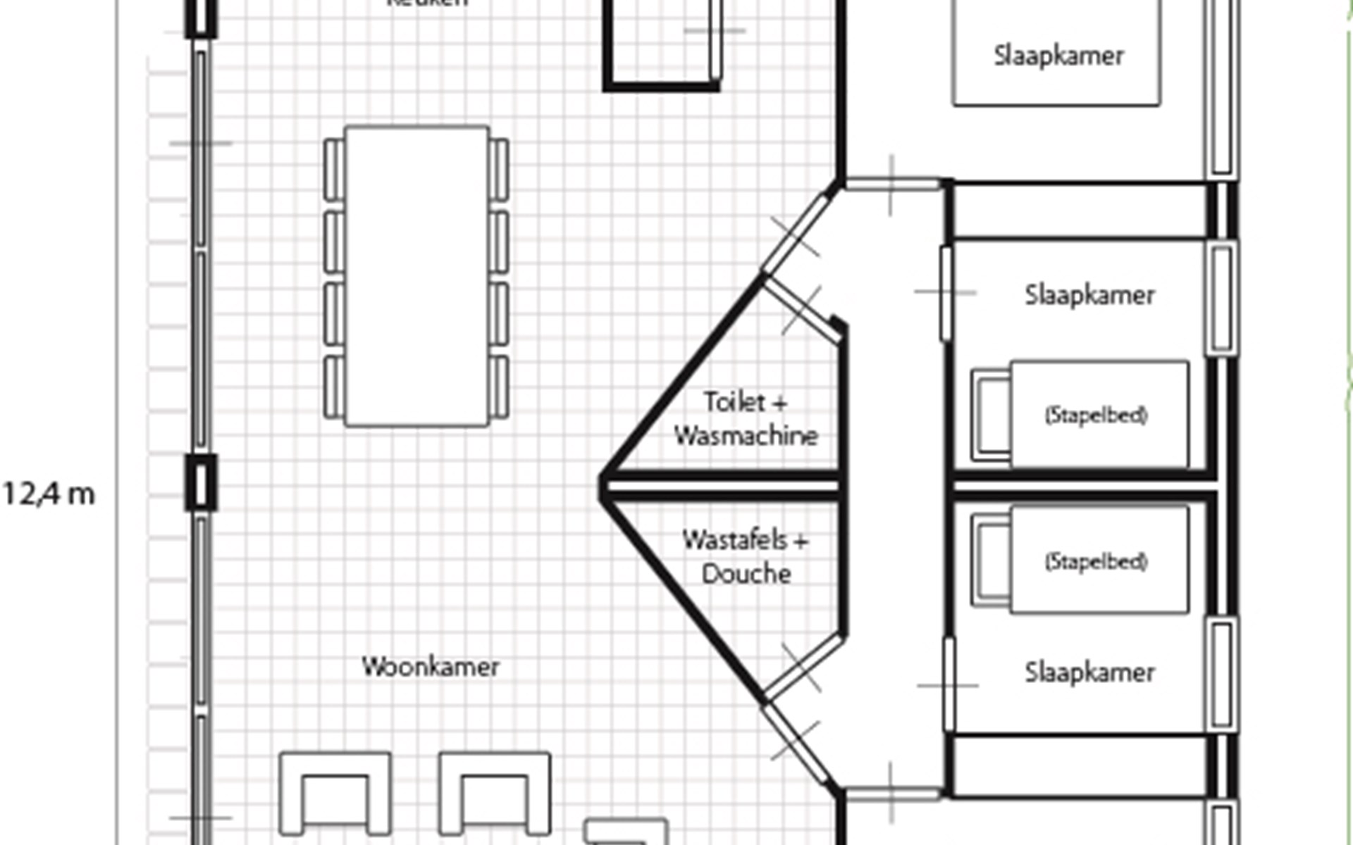 Sehen Sie sich unten die Ausstattung und Aufteilung von Bungalow 8 an und buchen Sie sofort Ihren Aufenthalt!