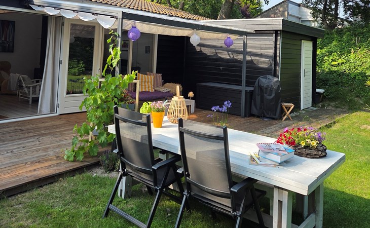 Draußen können Sie den Garten genießen. Auf der schön angelegten Terrassenplattform können Sie dank der ausziehbaren Markise sowohl in der Sonne als auch im Schatten sitzen. Es gibt auch einen Kohlegrill und einen Außenkamin, perfekt für gemütliche Abende mit Freunden oder Familie. Parken ist kein Problem; es gibt Platz für zwei Autos.