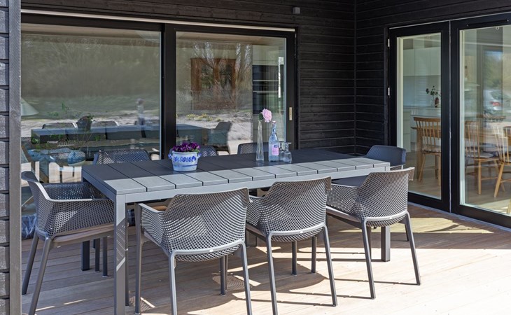 Einfamilienhaus, Baujahr 2022. 350 m vom Meer. Zur Alleinbenutzung: naturbelassenes Grundstück 1'207 m2. Aussendusche, Terrasse (70 m2), Grill. Im Hause: Sauna, Waschmaschine, Wäschetrockner. Parkplatz beim Haus. E-Ladestation. Lebensmittelgeschäft 3 km. Golfplatz 5 km. Der Besitzer akzeptiert keine Jugendgruppen.