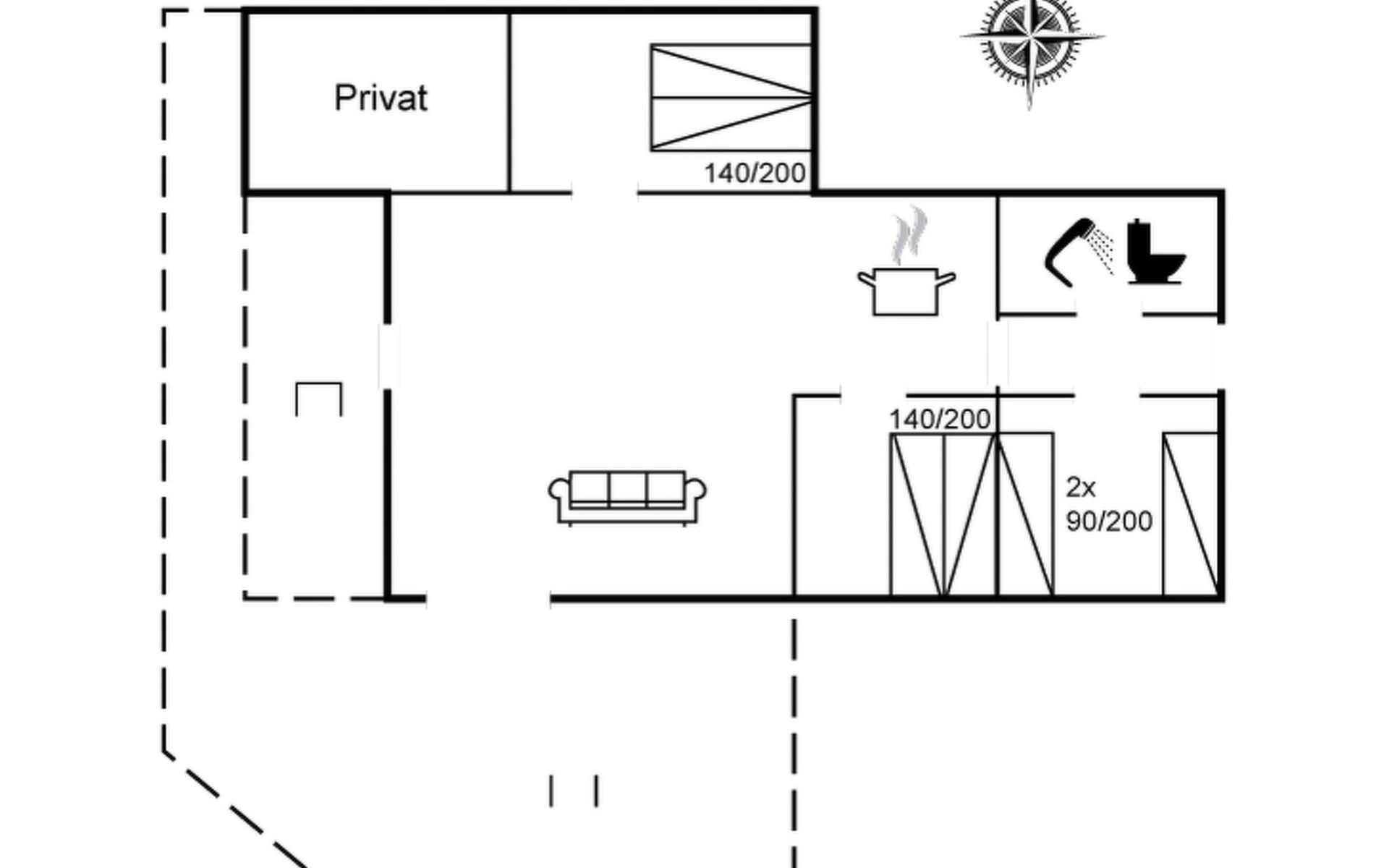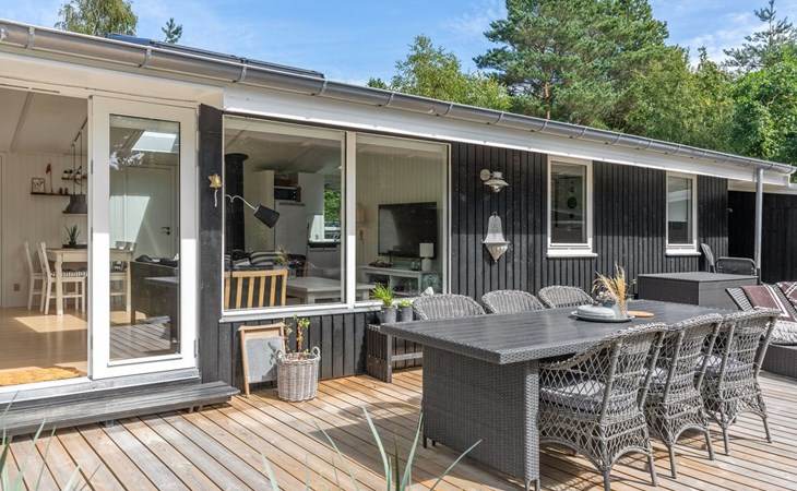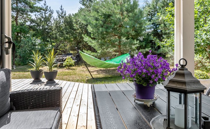 Einfamilienhaus, Baujahr 1981. 300 m vom Meer. Zur Alleinbenutzung: naturbelassenes Grundstück 800 m2. Terrasse (30 m2), Grill. Im Hause: Waschmaschine. Parkplatz beim Haus. E-Ladestation. Lebensmittelgeschäft 3 km. Golfplatz 5 km. Der Besitzer akzeptiert keine Jugendgruppen.