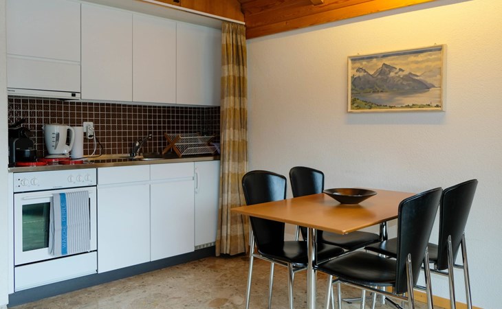 Das Nichtraucher-Ferienhaus verfügt u.a. über: Parkplatz, WLAN, Mini-TV, Radio, Nespresso-Kaffeemaschine & Fondue-Set.