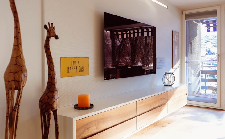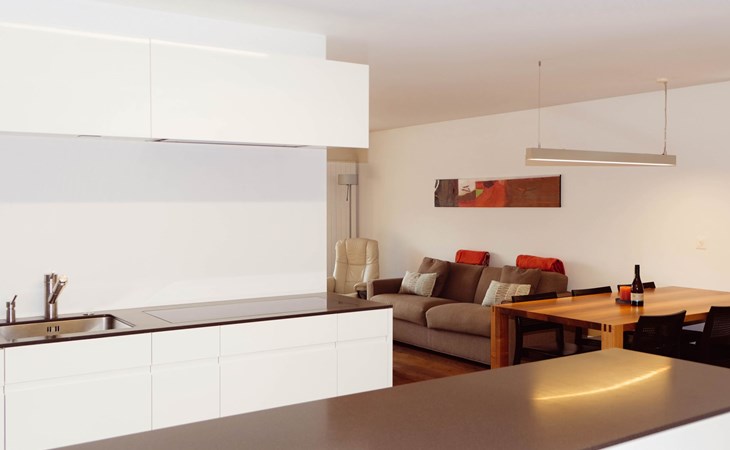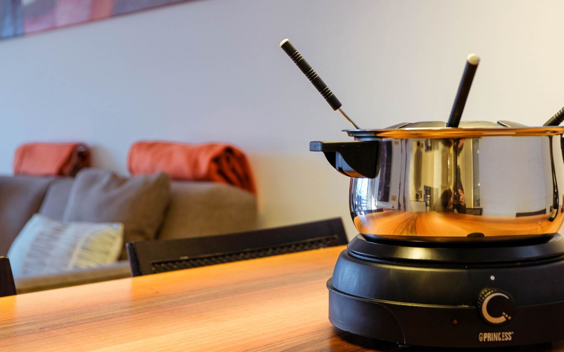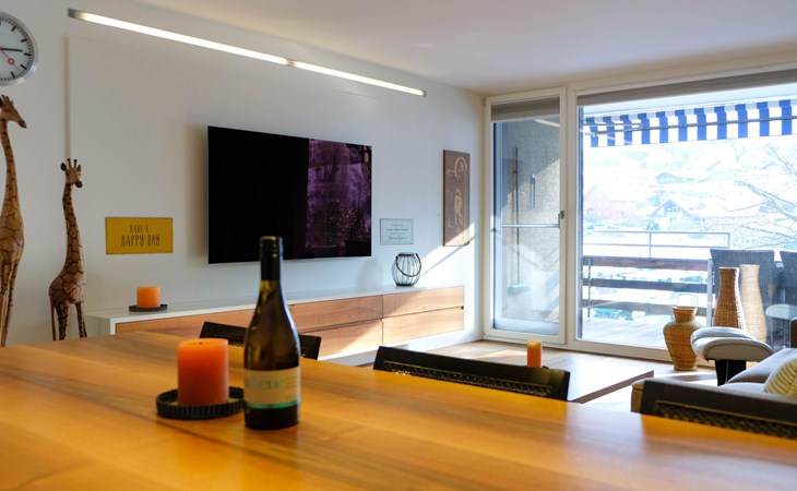 Die mit wunderschönen Holzelementen ausgestattete Nichtraucher-Wohnung verfügt u.a. über: 65-Zoll-TV inkl. Netflix, WLAN, Nespresso-Kaffeemaschine, Kaffeebohnen-Maschine, Kombi-Steamer, Heissluft-Ofen, Induktionsherd, Raclette- und Fondue-Set und vieles mehr.