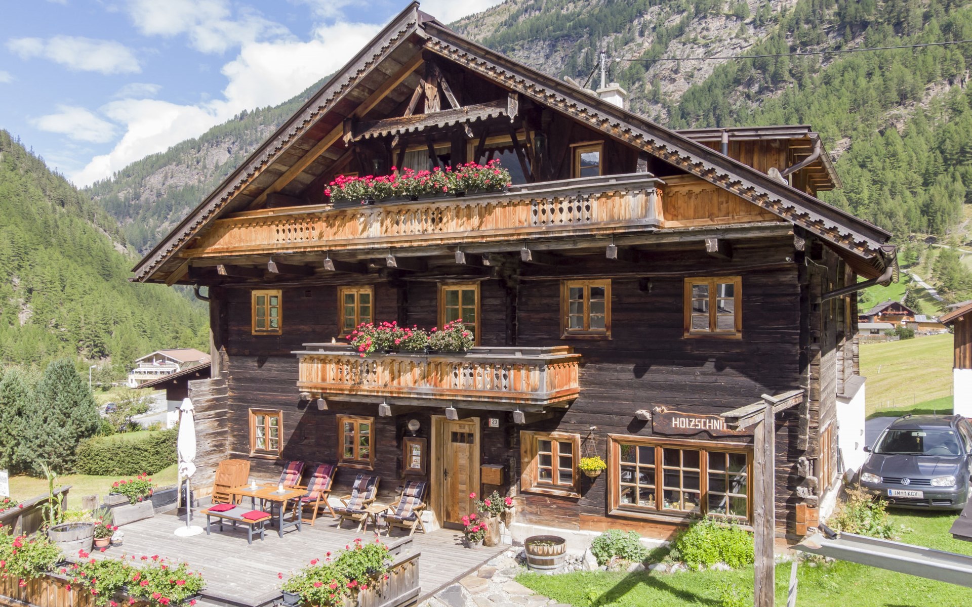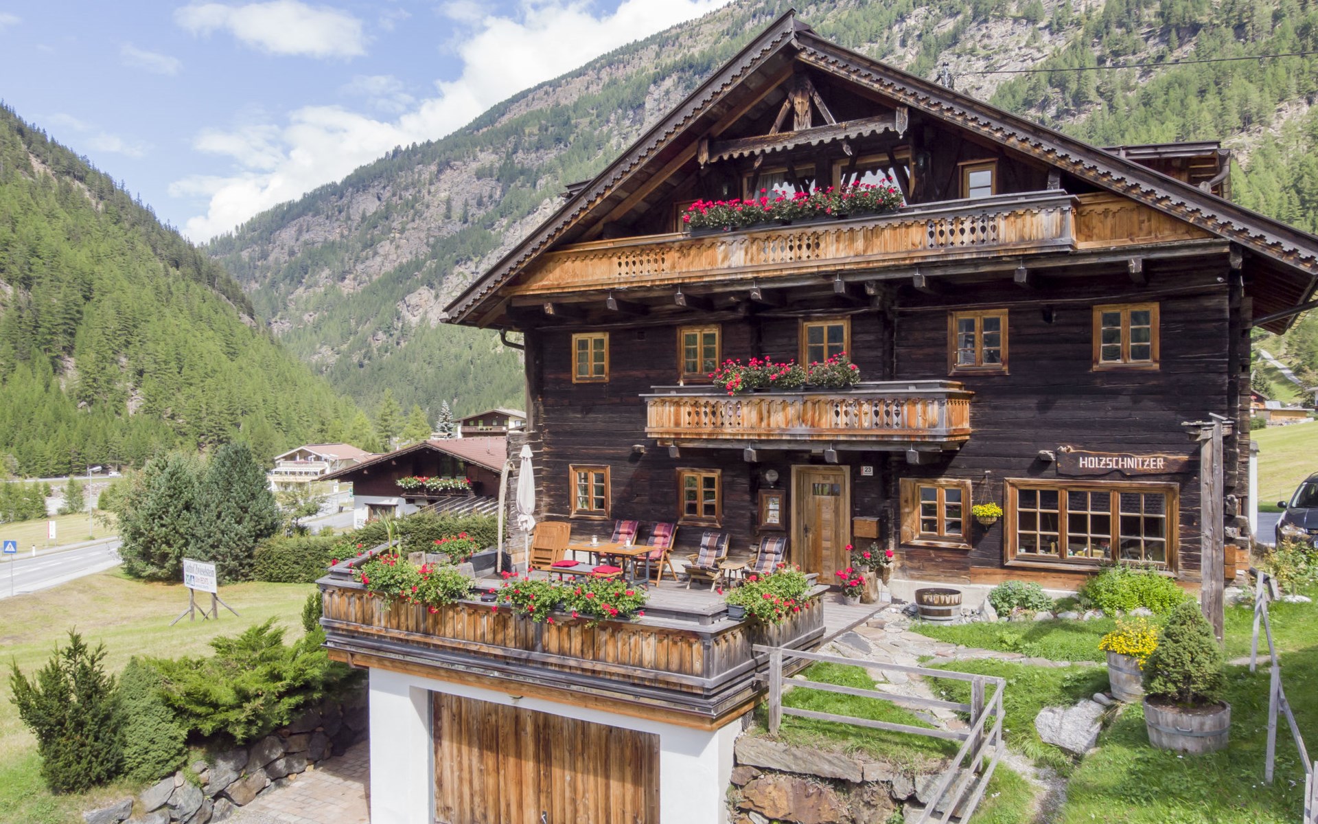 Zwieselstein 4 km von Sölden: Das 300 Jahre alte renovierte Chalet "Beim Holzschnitzer". Am Ortsrand, 300 m vom Zentrum von Zwieselstein, 4 km vom Skigebiet. Zur Mitbenutzung: Terrasse. Im Hause: Skiraum, Zentralheizung, Waschmaschine (zur Mitbenutzung, extra), Skischuhtrockner. Brötchenservice auf Anfrage (extra). Parkplatz. Lebensmittelgeschäft 4 km, Restaurant 200 m, Bushaltestelle 20 m, Bahnstation 42 km, Hallenbad 5 km, Thermalbad "Aqua Dome Längenfeld" 18 km. Golfplatz (18 Loch) 40 km, Gondelbahn 4 km, Skibushaltestelle 20 m, Langlaufloipe 100 m. Nahe gelegene Sehenswürdigkeiten: Outdoor Park 'Area 47' in 40 km, Ötzidorf Umhausen 27 km, Klettersteig Stuibenfall 31 km, NEU: 007 Elements James Bond Museum. Bekannte Skigebiete sind gut erreichbar: Sölden 4 km, Obergurgl 9 km, Vent 13 km. Bekannte Seen in der Umgebung sind gut erreichbar: Piburger See 35 km. Bitte beachten: Gratis Skibus. Der gratis Skibus fährt zum Skigebiet Sölden, Hochgurgl, Vent. Bitte beachten: Weitere Unterkünfte sind buchbar. Im Haus befindet sich eine Schnitzerwerkstatt mit Galerie. Regionale Spezialitäten in 100m im "Gampe Ladele" der Familie.