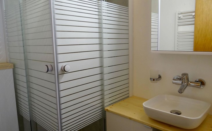 1-Zimmerwohnung, 2. Stock: Wohn-Schlafzimmer mit 3 Einzelbetten, Küche, Dusche-WC.