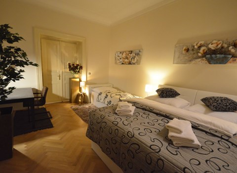 Hervorragende Kombination, welche Komfort, ruhige Lage und gute Verbindung zum Stadtzentrum bietet, entweder mit der U-Bahn-Linie A oder mit der Strassenlinie Nr. 22. Alle wichtigen Sehenswürdigkeiten sind in 15-20 Minuten zu erreichen. Grosse Villa "V Olšinách", auf 3 Stockwerken, Baujahr 1927, renoviert. 6 km vom Zentrum von Praha, im Bezirk Strašnice, sonnige Lage im Villenviertel. Zur Mitbenutzung: Garten 1'000 m2 mit Rasen. Gartenmöbel. Im Hause: Zentralheizung. Parkplatz (für 2 Autos) auf dem Grundstück, öffentliche Parkplätze auf der Strasse. Einkaufsgeschäft, Lebensmittelgeschäft 100 m, Supermarkt 400 m, Einkaufszentrum 500 m, Restaurant, Bar 200 m, Café 250 m, Biergarten 200 m, Straßenbahn "Průběžná" 70 m, Bushaltestelle "Strašnická" 280 m, U-Bahnstation "Strašnická" 280 m, Freibad 1 km, Hallenbad 1 km. Tennis 1 km, Tennishalle 1 km, Minigolf 300 m, Sportzentrum, Kinderspielplatz. Nahe gelegene Sehenswürdigkeiten: Sport/RelaxPark Gutovka 200 m, Eden 1.4 km, Havlíčkovy sady/Gröbovka, Žižkovská věž 3 km, Václavské náměstí, Karlův most, Staroměstské náměstí, Orloj, Vyšehrad, Hradčany/Pražský hrad, Stromovka, Zoo. Bitte beachten: kein Fahrstuhl vorhanden. Geeignet für Familien. Jugendgruppen nur auf Anfrage. Der Besitzer wohnt im selben Haus.