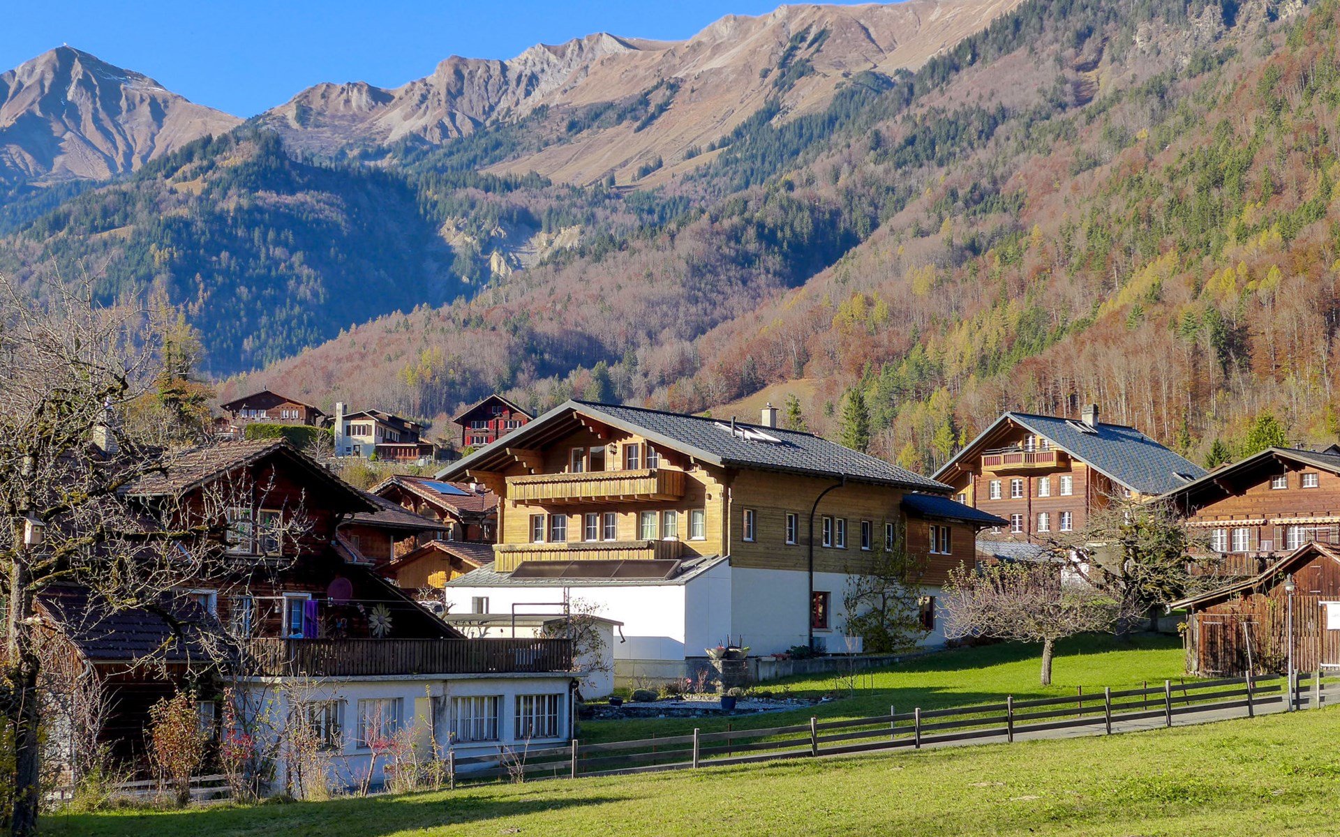 Zweifamilienhaus "Oltschiblick". Im Ort, 200 m vom Zentrum, ruhige, sonnige Lage, Richtung Süden. Im Hause: Zentralheizung. Parkplatz beim Haus. Lebensmittelgeschäft, Supermarkt 7 km, Restaurant 200 m, Bäckerei 5 km, Bushaltestelle 20 m, Bahnstation "Brienz" 7 km, Freibad 6 km, Hallenbad 10 km. Tennis 10 km, Wanderwege ab Haus 10 m, Skisportanlagen 10 km, Eisfeld 6 km. Nahe gelegene Sehenswürdigkeiten: Freilichtmuseum Ballenberg 400 m, Brienz - Brienzersee 5 km, Aareschlucht 10 km. Bekannte Skigebiete sind gut erreichbar: Meiringen - Hasliberg 10 km, Axalp 15 km. Bekannte Seen in der Umgebung sind gut erreichbar: Brienzersee 5 km. Wandergebiete: Rosenlaui 10 km. Bitte beachten: Der Besitzer wohnt im selben Haus. Die Nachbarschaft ist sehr lärmempfindlich. Ruhe und gutes Benehmen wird erwartet.
