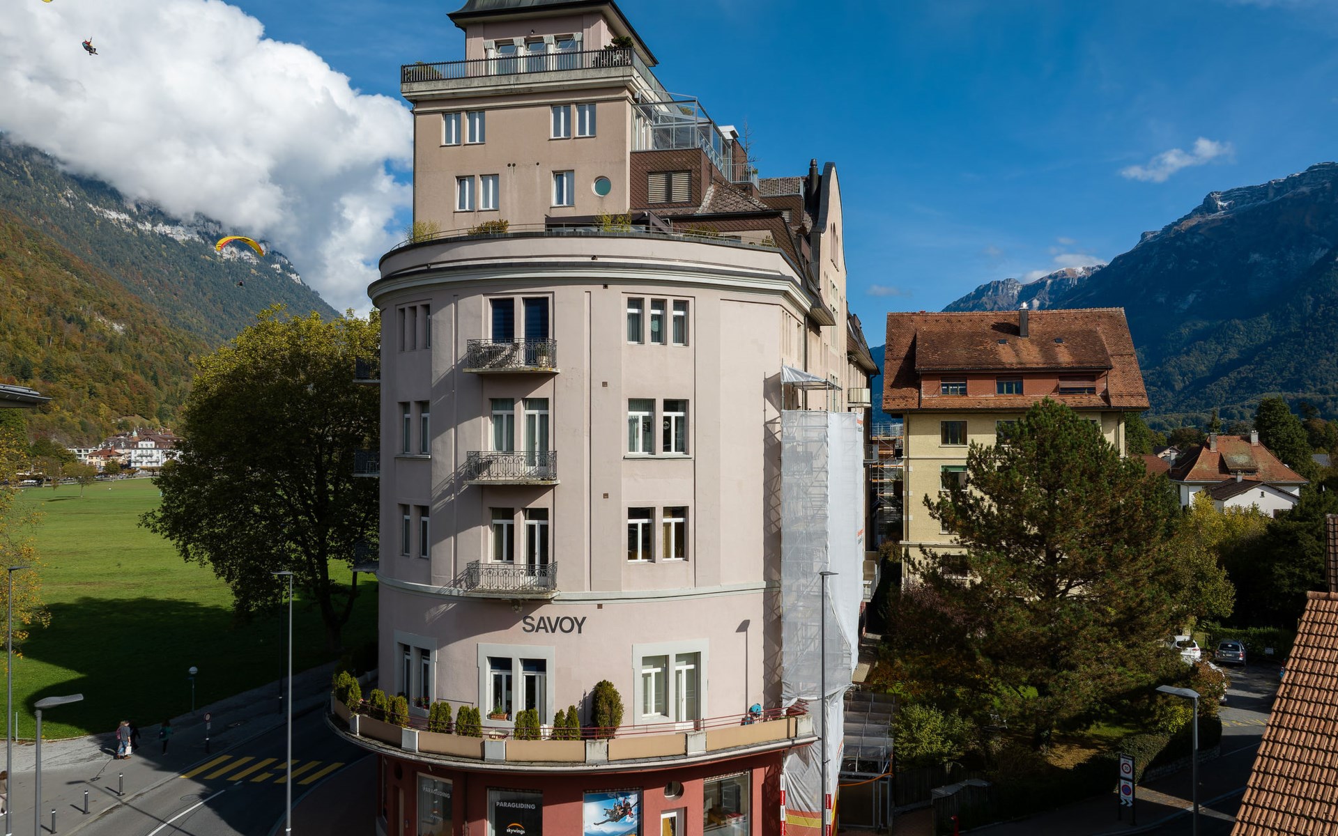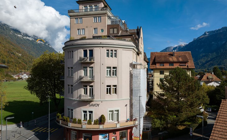Interlaken: Schönes, historisches Appartementhaus "Savoy", auf 5 Stockwerken, Baujahr 1907. Zentrale Lage, im Herzen der Stadt. Im Hause: Fahrstuhl. Öffentliches Parkhaus in 50 m. Einkaufsgeschäft 150 m, Supermarkt 750 m, Einkaufszentrum 400 m, Restaurant 100 m, Bar 50 m, Bäckerei 300 m, Café 100 m, Fußgängerzone 50 m, Bushaltestelle "Centralplatz oder Sonnenhof" 150 m, Bahnstation "Interlaken West" 600 m, Freibad 1 km, Hallenbad 1 km, Strandbad 3 km. Golfplatz (18 Loch) 4.5 km, Segelschule 1.2 km, Tennis 150 m, Minigolf 1 km, Reitstall 1 km, Sportzentrum 200 m, Bergeisenbahn 800 m, Skibushaltestelle 300 m, Eisfeld 100 m, Kinderspielplatz 150 m. Nahe gelegene Sehenswürdigkeiten: Jungfraujoch, Schilthorn, Tell-Freilichtspiele. Bekannte Skigebiete sind gut erreichbar: Wengen - Kleine Scheidegg 10 km, Grindelwald - First, Mürren - Schilthorn. Bekannte Seen in der Umgebung sind gut erreichbar: Thunersee 2 km, Brienzersee 2 km. Wandergebiete: Jungfrau Region. Bitte beachten: Gratis Skibus. Der gratis Skibus fährt zum Skigebiet Grindelwald. Bitte beachten: Weitere Unterkünfte sind buchbar. Ferienwohnung Ref. 400.1 - 400.6 befindet sich auf dem gleichen Grundstück. Alle Häuser/Wohnungen sind individuell eingerichtet.