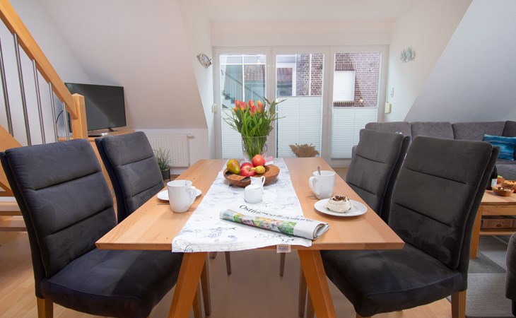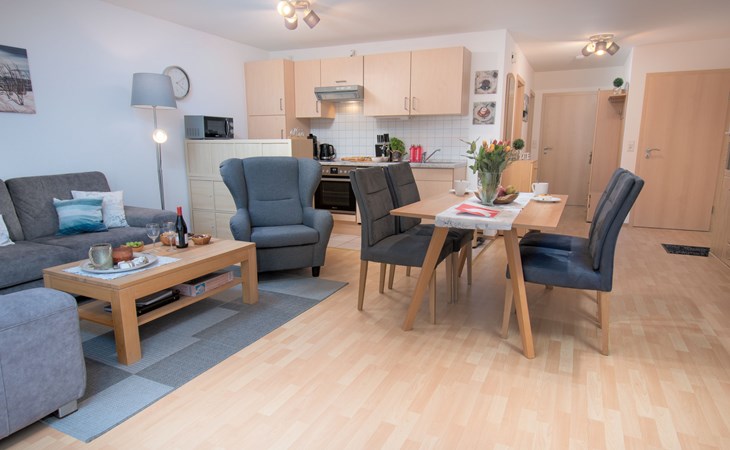 Mehrfamilienhaus. Im Ortszentrum, 1 km vom Meer, 1 km vom Strand. Im Hause: Zentralheizung. Parkplatz beim Haus. Supermarkt 500 m, Restaurant 10 m, Bäckerei 250 m, Café, Bushaltestelle 200 m, Bahnstation "Norddeich" 1 km, Fähre 1 km, Sandstrand 1 km, Freibad 14 km, Hallenbad 800 m. Golfplatz (18 Loch) 8 km, Surfschule 1 km, Tennis 2.5 km, Kinderspielplatz 800 m.