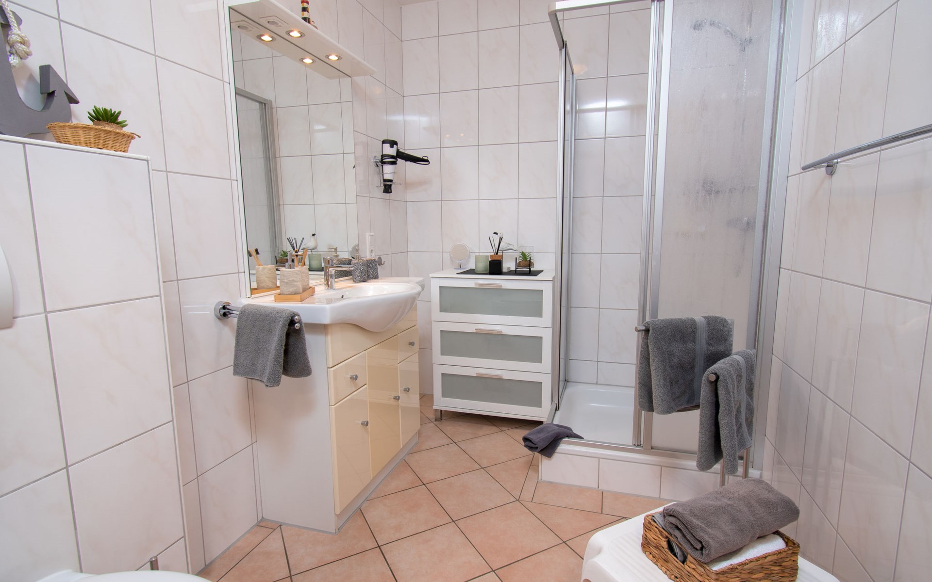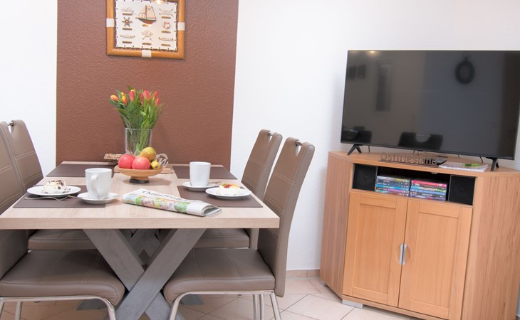 Mehrfamilienhaus. Im Ortszentrum, 1 km vom Meer, 1 km vom Strand. Im Hause: Zentralheizung. Parkplatz beim Haus. Supermarkt 500 m, Restaurant 10 m, Bäckerei 250 m, Café, Bushaltestelle 200 m, Bahnstation "Norddeich" 1 km, Fähre 1 km, Sandstrand 1 km, Freibad 14 km, Hallenbad 800 m. Golfplatz (18 Loch) 8 km, Surfschule 1 km, Tennis 2.5 km, Kinderspielplatz 800 m.