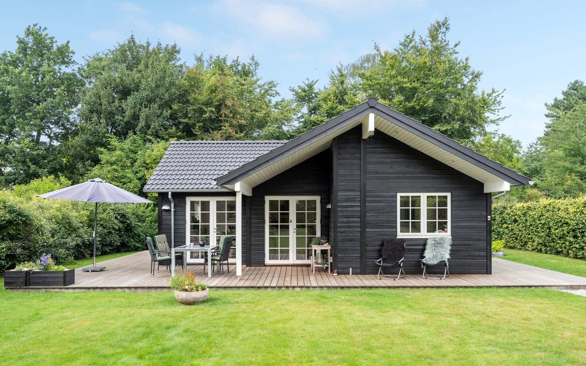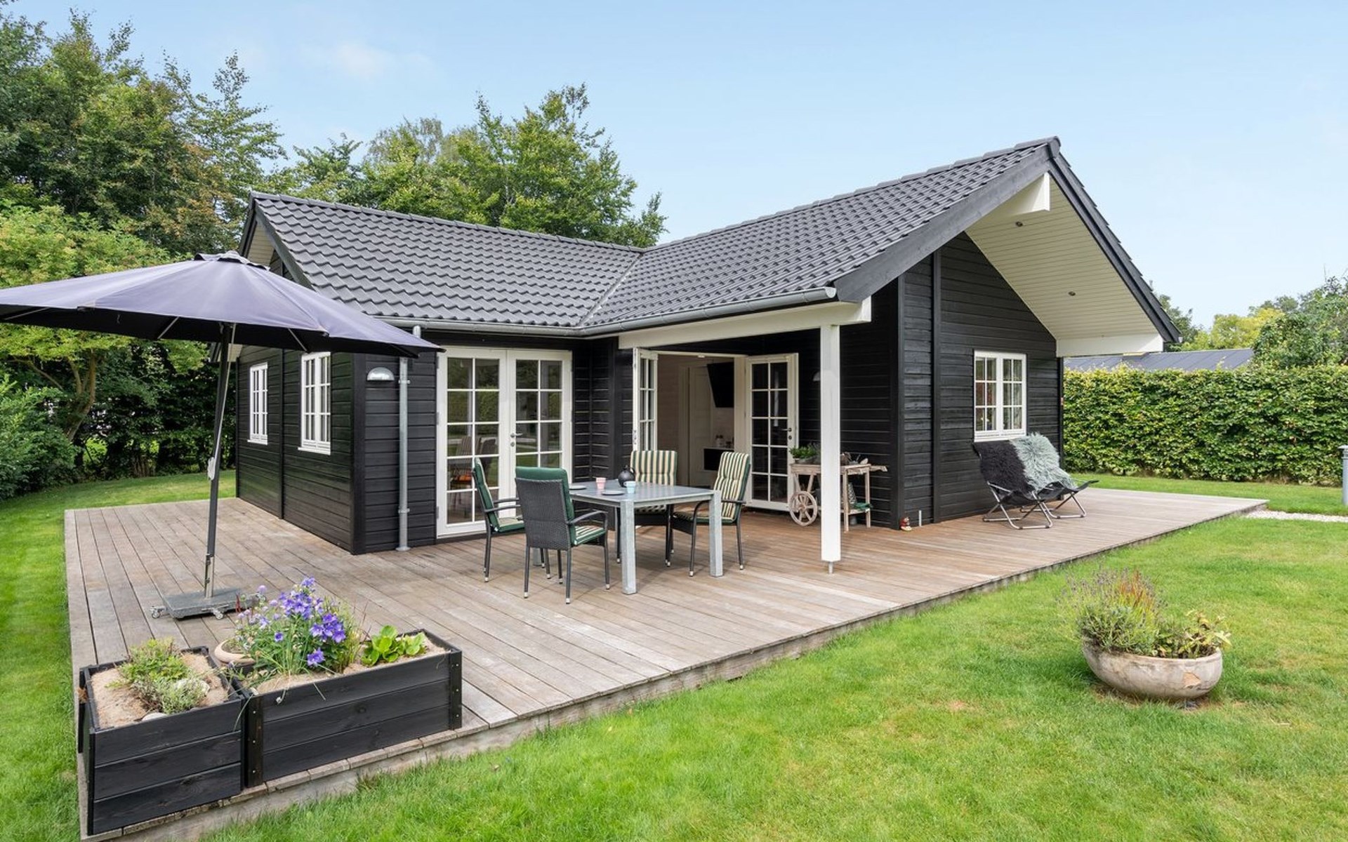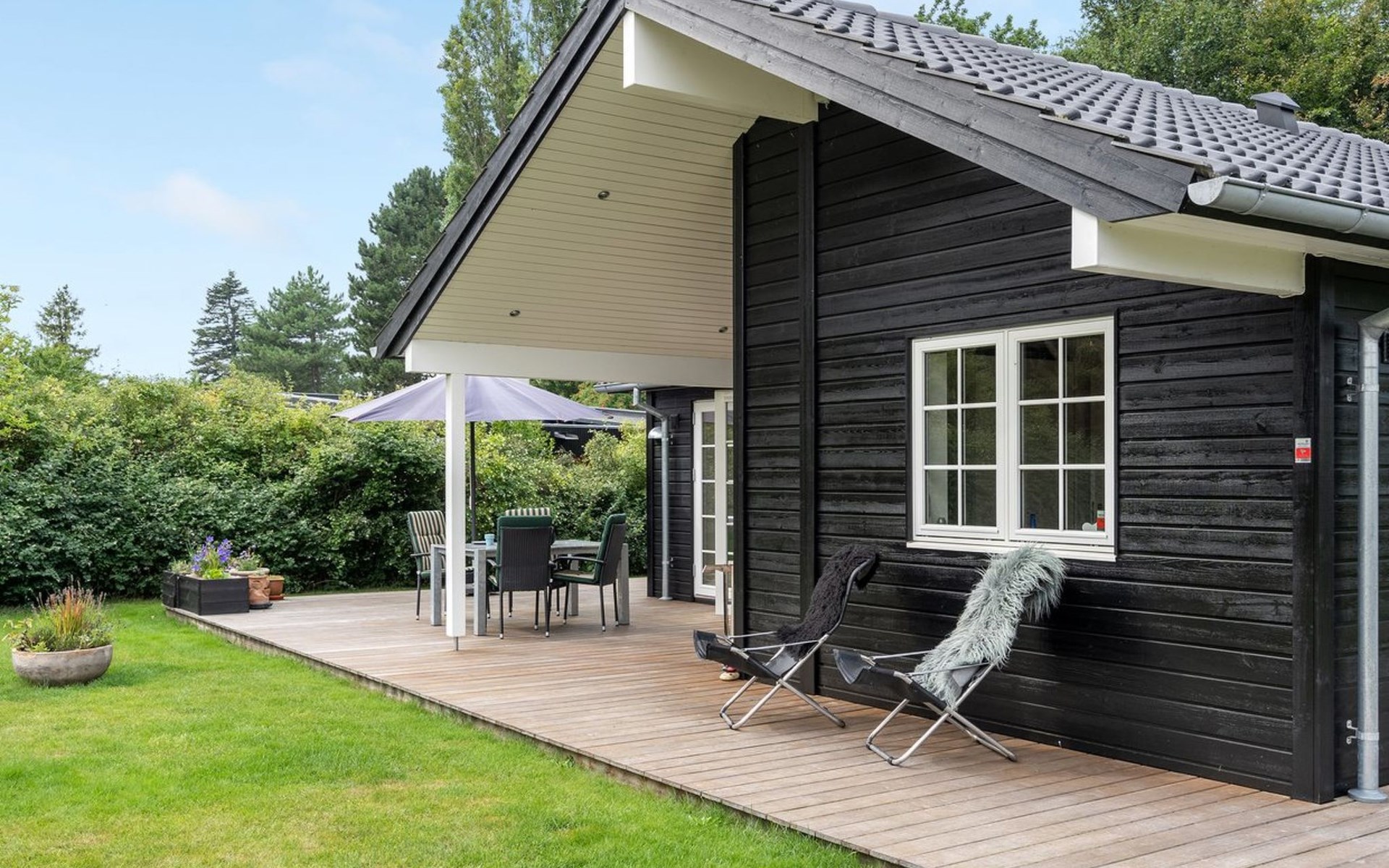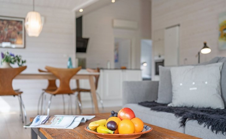 Einfamilienhaus, Baujahr 2018. 750 m vom Meer. Zur Alleinbenutzung: Grundstück 1'201 m2, gepflegter Garten. Terrasse (50 m2), Grill. Im Hause: Waschmaschine. Parkplatz beim Haus. Lebensmittelgeschäft 250 m. Golfplatz 6.5 km. Der Besitzer akzeptiert keine Jugendgruppen.