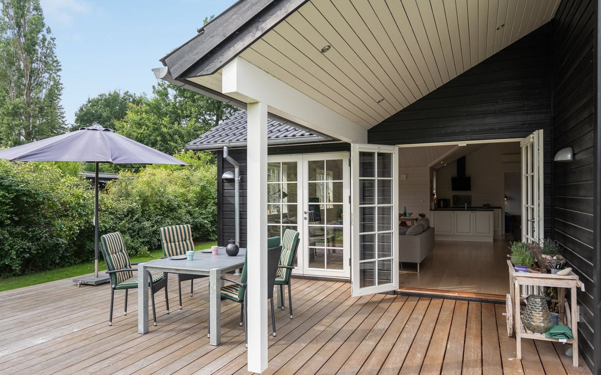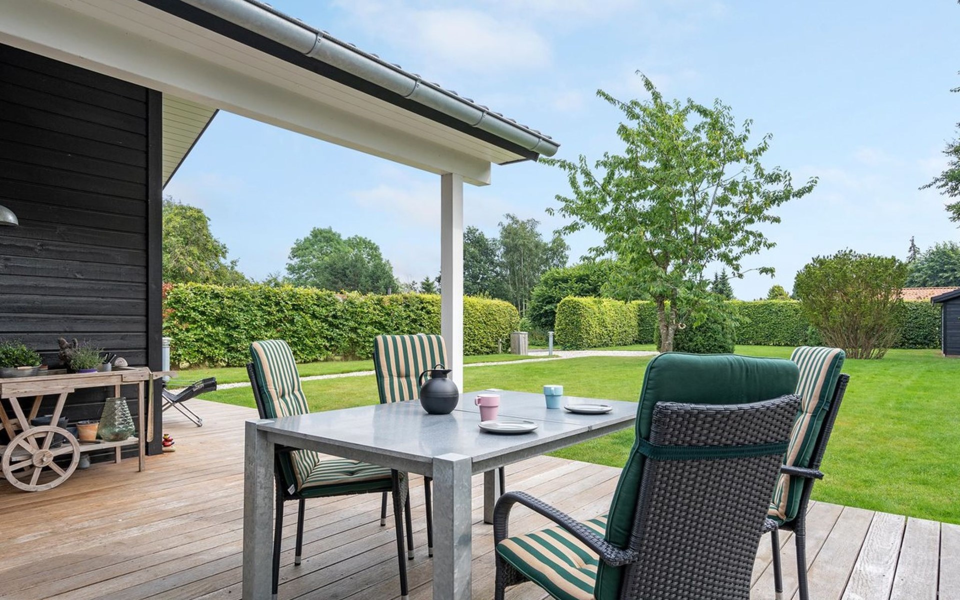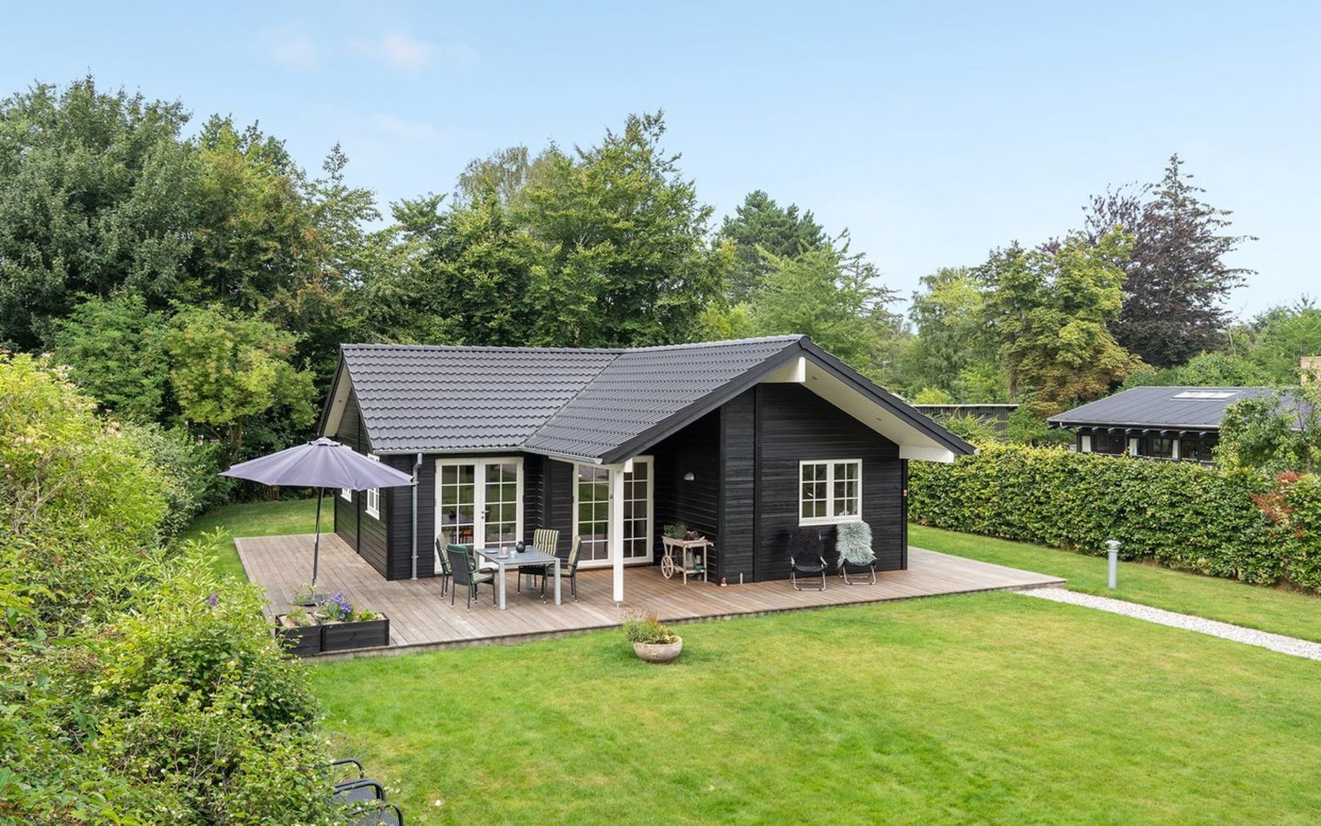Einfamilienhaus, Baujahr 2018. 750 m vom Meer. Zur Alleinbenutzung: Grundstück 1'201 m2, gepflegter Garten. Terrasse (50 m2), Grill. Im Hause: Waschmaschine. Parkplatz beim Haus. Lebensmittelgeschäft 250 m. Golfplatz 6.5 km. Der Besitzer akzeptiert keine Jugendgruppen.