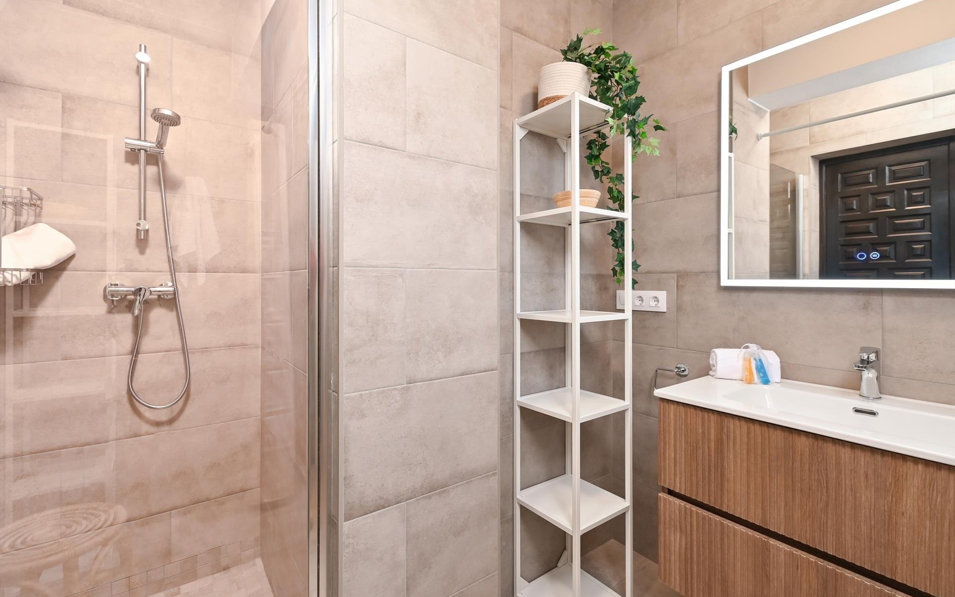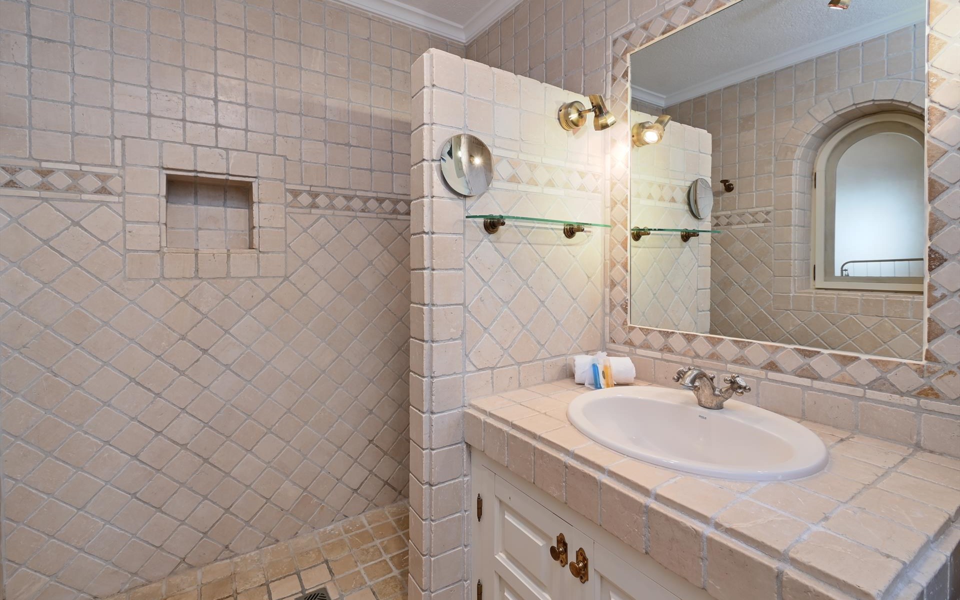 - en-suite Badezimmer mit einem Waschbecken und Dusche