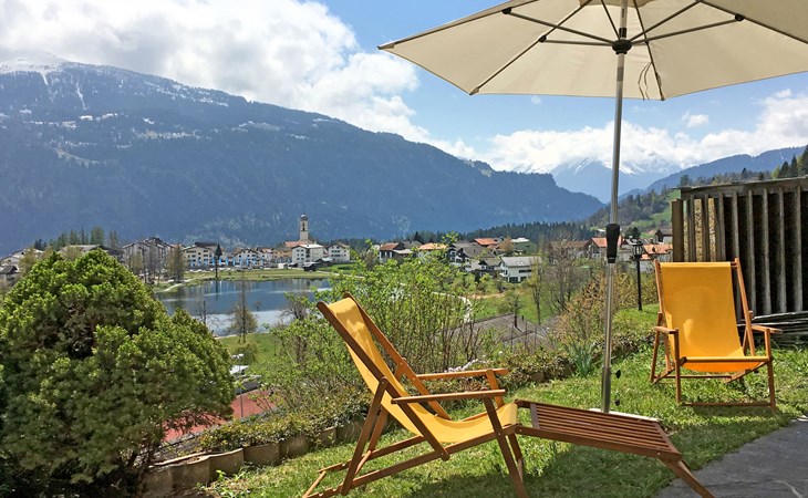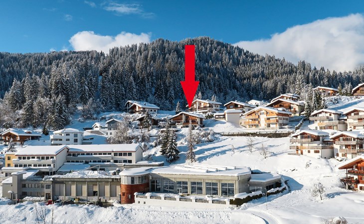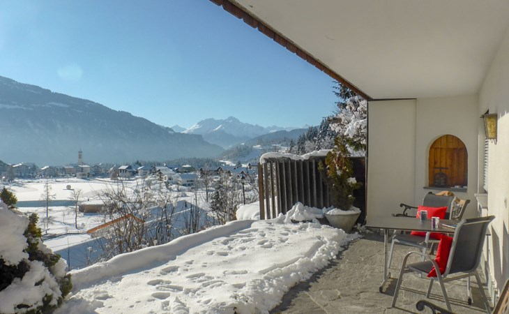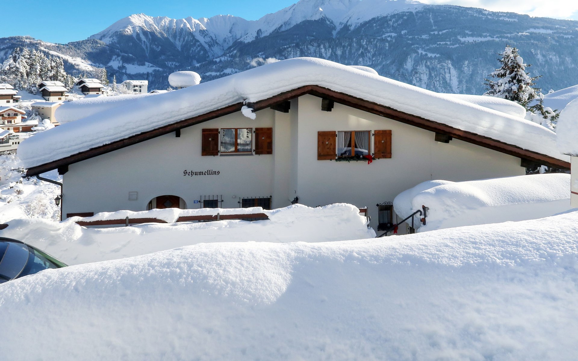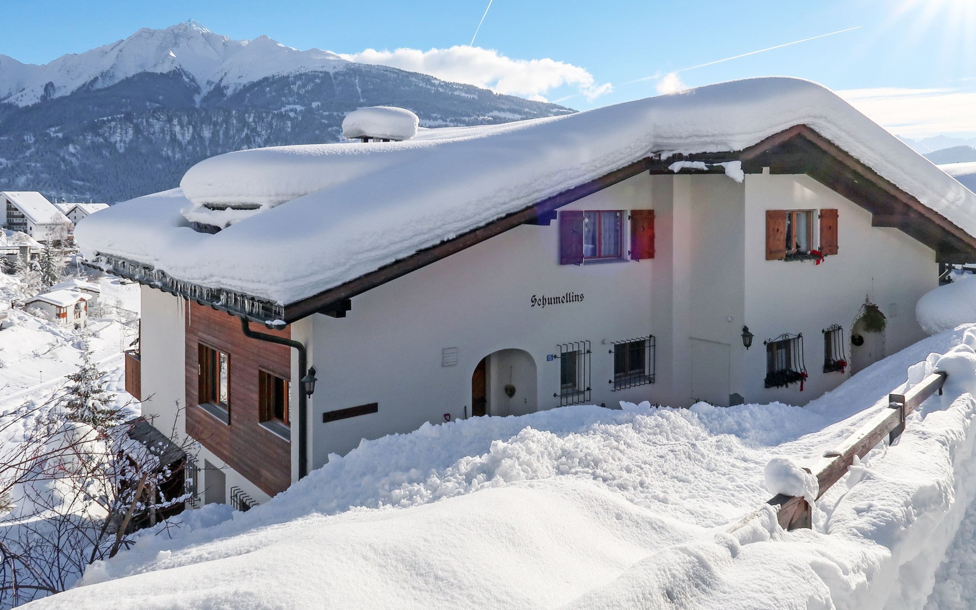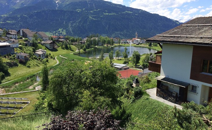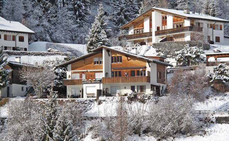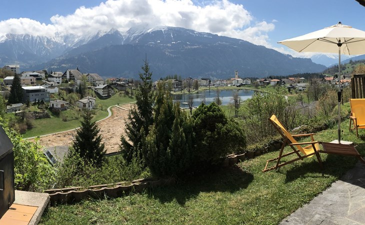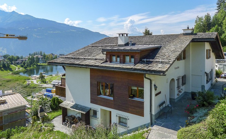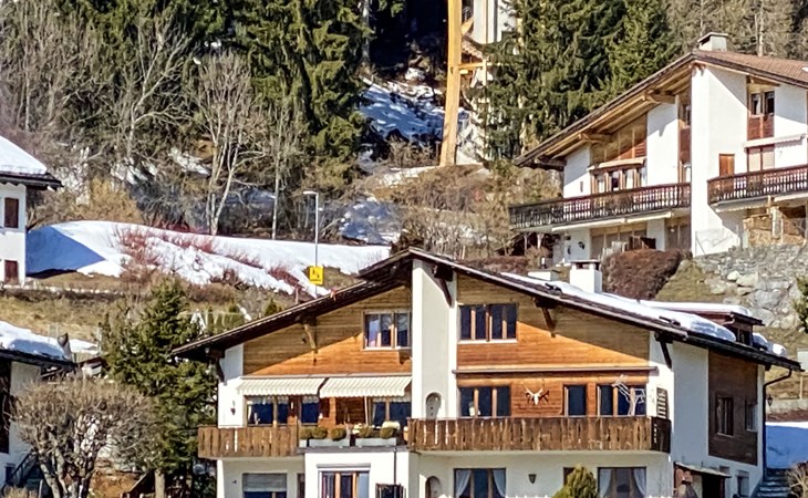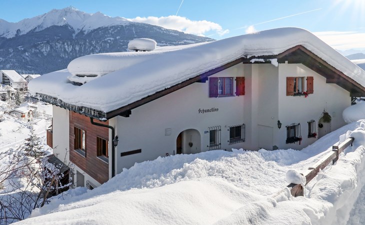 Zweifamilienhaus "Schumellins", 1'020 m.ü.M., auf 2 Stockwerken. 2 Wohnungen im Ferienhaus. 500 m vom Zentrum von Laax, 6 km vom Zentrum von Ilanz, 20 km vom Zentrum von Chur, am Hang, in einem Wohnquartier, 300 m vom See, in einer Sackgasse. Im Hause: Einstellraum für Fahrräder, Skiraum, Zentralheizung, Waschmaschine (zur Mitbenutzung). Treppenweg bis zum Haus. Parkplatz (überdacht) auf dem Grundstück. Einkaufsgeschäft 500 m, Supermarkt 6 km, Bushaltestelle "Laax GR, posta" 500 m, Bahnstation "Ilanz" 6 km. Golfplatz (18 Loch) 3.9 km, Bergeisenbahn 2 km, Skilift 2 km, Skibushaltestelle 350 m, Skischule 2 km. Bitte beachten: Bei guter Schneelage Zufahrt mit den Skiern bis zum Haus. Der Besitzer wohnt im selben Haus.