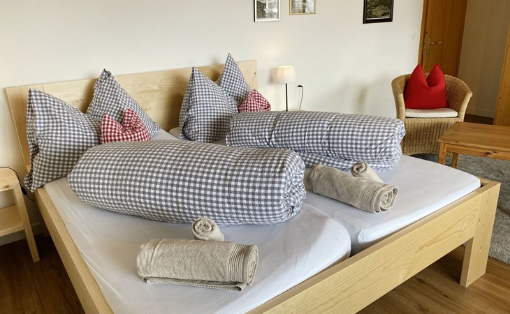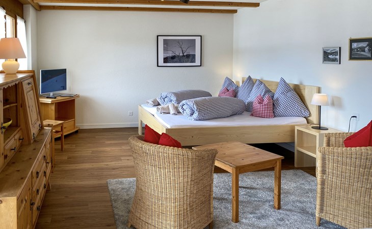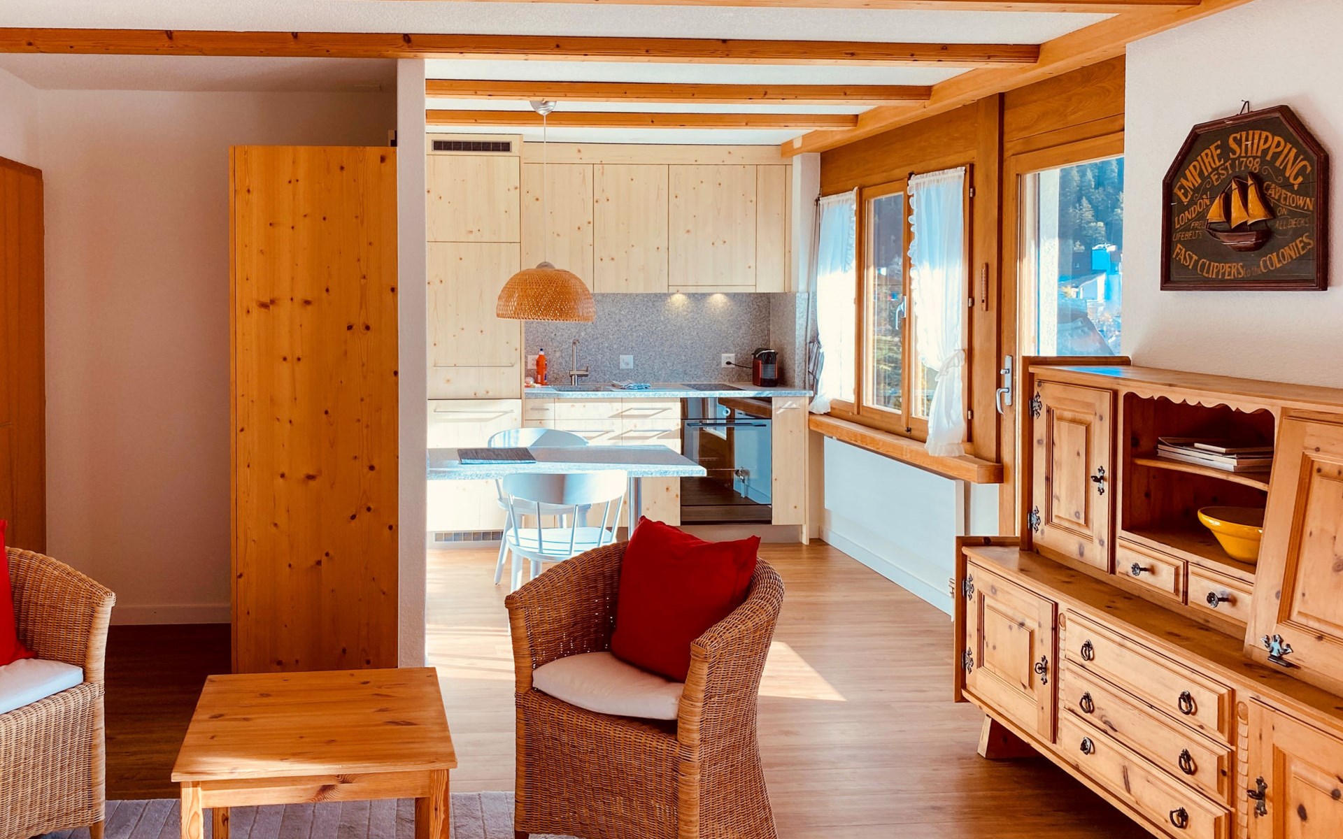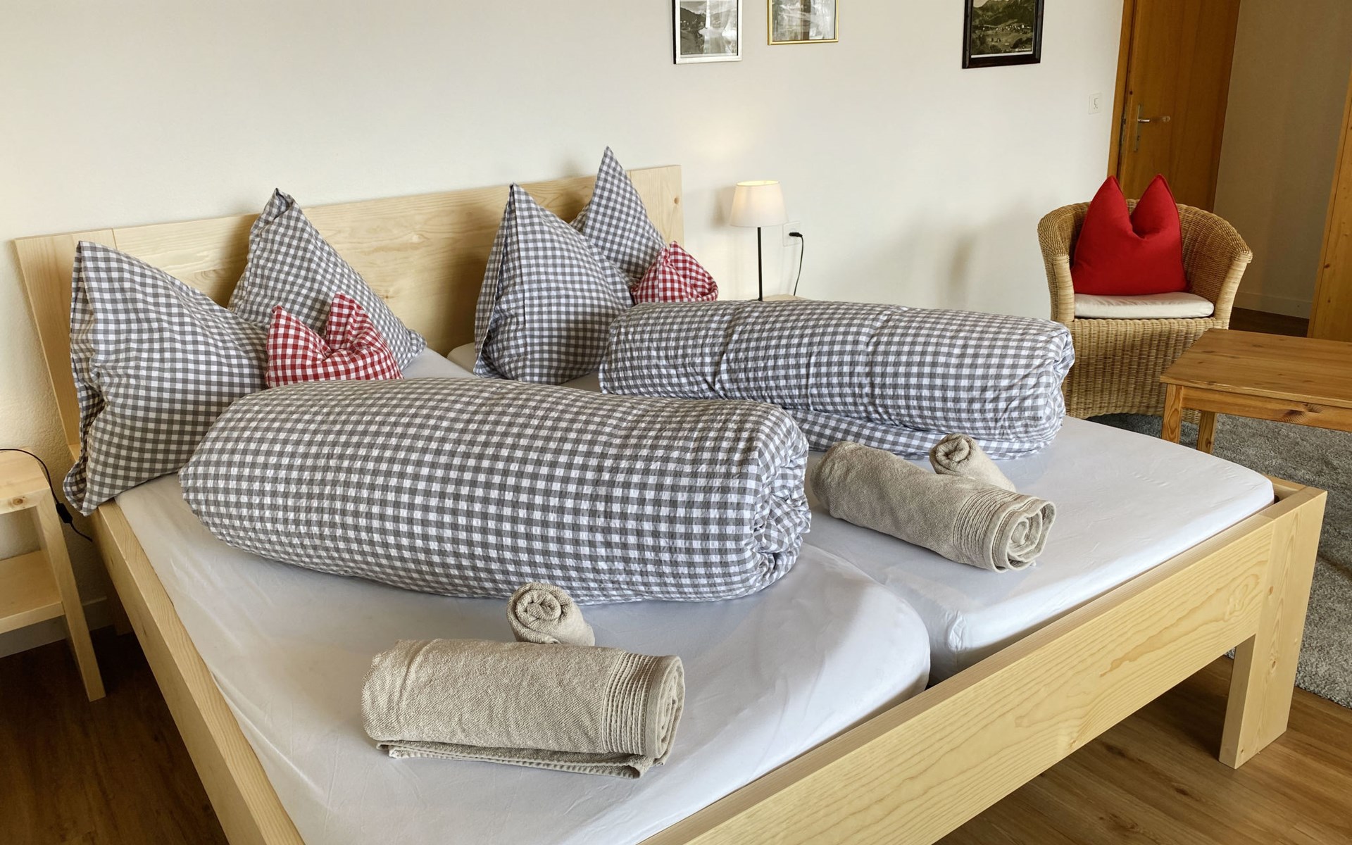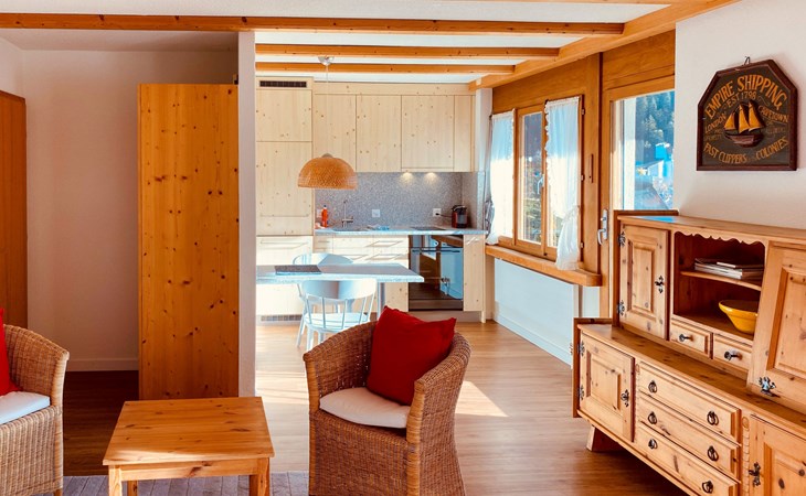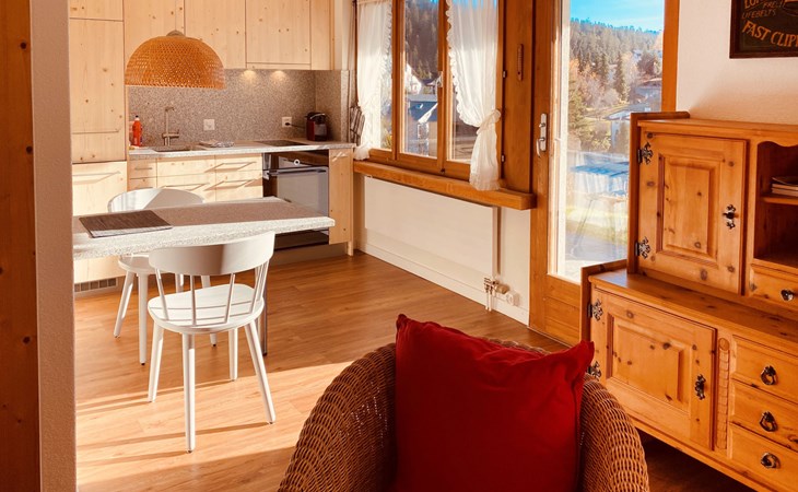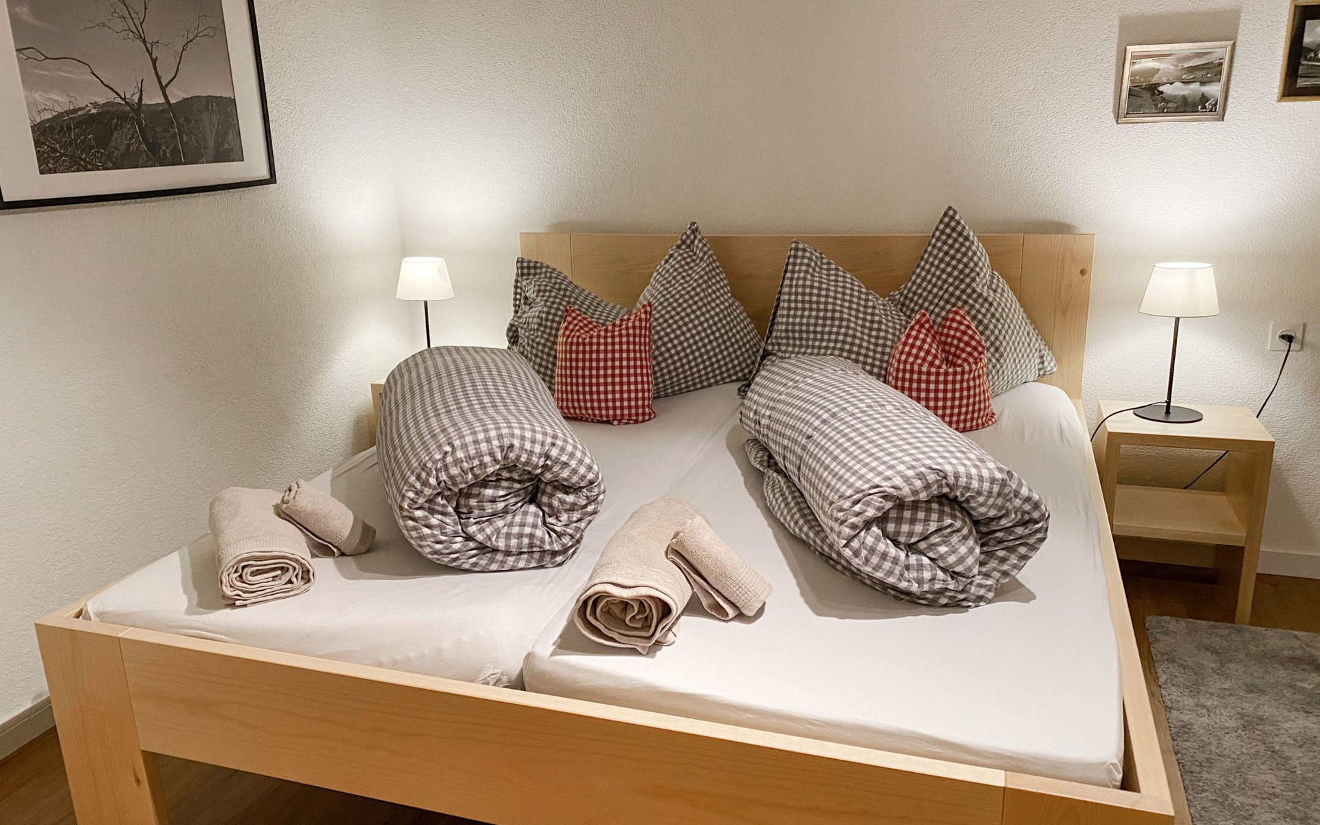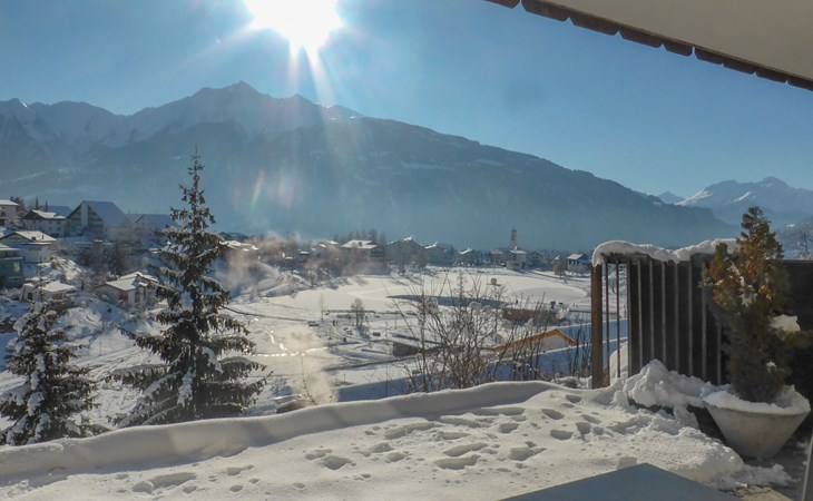 Zweifamilienhaus "Schumellins", 1'020 m.ü.M., auf 2 Stockwerken. 2 Wohnungen im Ferienhaus. 500 m vom Zentrum von Laax, 6 km vom Zentrum von Ilanz, 20 km vom Zentrum von Chur, am Hang, in einem Wohnquartier, 300 m vom See, in einer Sackgasse. Im Hause: Einstellraum für Fahrräder, Skiraum, Zentralheizung, Waschmaschine (zur Mitbenutzung). Treppenweg bis zum Haus. Parkplatz (überdacht) auf dem Grundstück. Einkaufsgeschäft 500 m, Supermarkt 6 km, Bushaltestelle "Laax GR, posta" 500 m, Bahnstation "Ilanz" 6 km. Golfplatz (18 Loch) 3.9 km, Bergeisenbahn 2 km, Skilift 2 km, Skibushaltestelle 350 m, Skischule 2 km. Bitte beachten: Bei guter Schneelage Zufahrt mit den Skiern bis zum Haus. Der Besitzer wohnt im selben Haus.