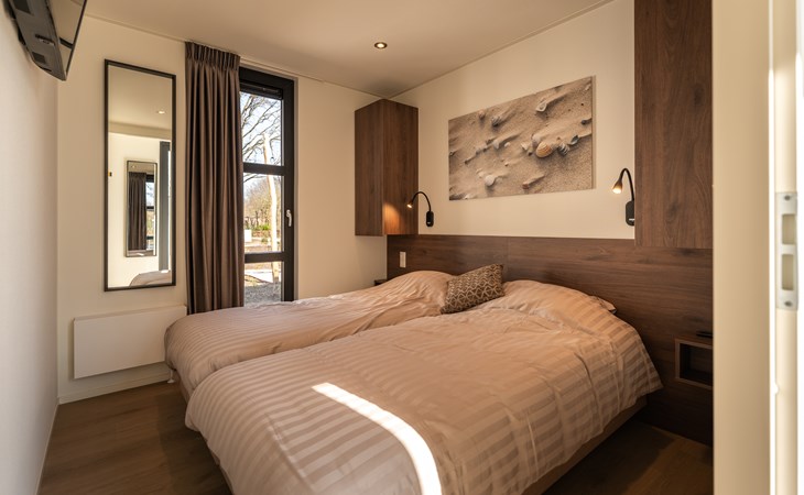 Die Villa verfügt über zwei Schlafzimmer, die jeweils mit zwei Einzelbetten (Boxspringbetten), einem Fernseher und ausreichend Stauraum ausgestattet sind. Die Betten sind bei Ihrer Ankunft bereits bezogen, sodass Sie sich sofort entspannen können.