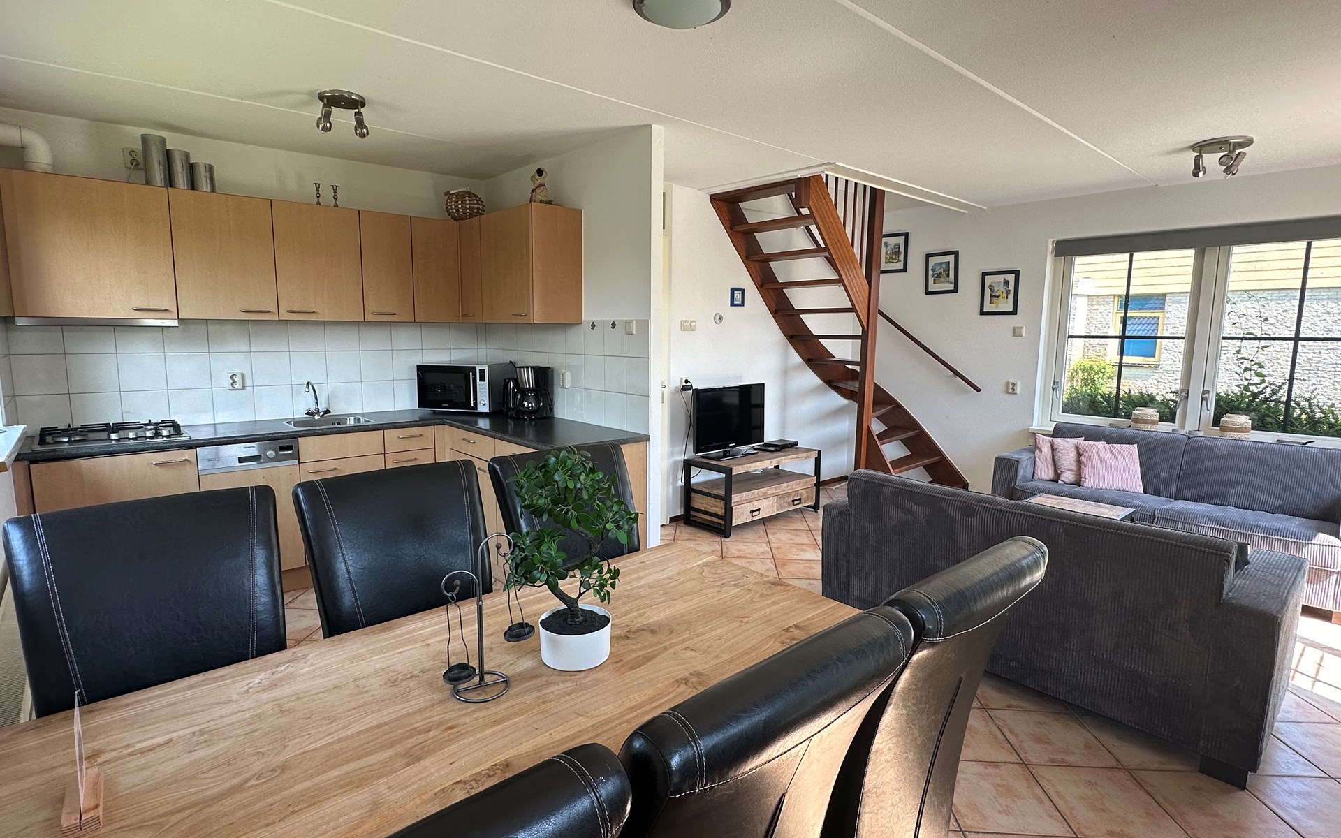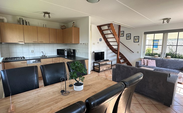Dieser freistehende Bungalow befindet sich in schöner Lage am Wasser inmitten des gemütlichen Bungalowpark Strandslag. Ein wunderbarer Ort, um sich zu entspannen und einen erholsamen Urlaub an der Küste zu genießen. Der Bungalow ist ansprechend eingerichtet und verfügt über eine offene Küche, die an das Wohnzimmer angrenzt. Durch die Schiebetüren können Sie direkt in den sonnigen Garten gehen, ideal an schönen Tagen! In den kälteren Monaten sorgt der Kamin im Wohnzimmer für zusätzliche Wärme und Gemütlichkeit.