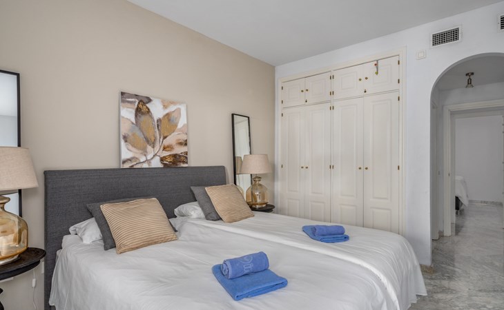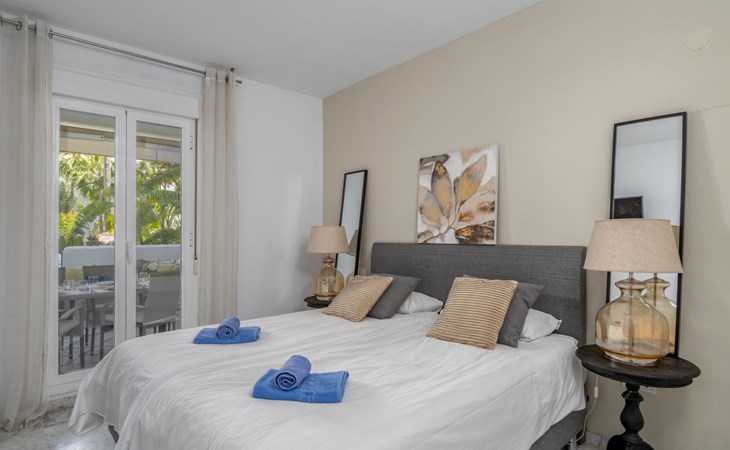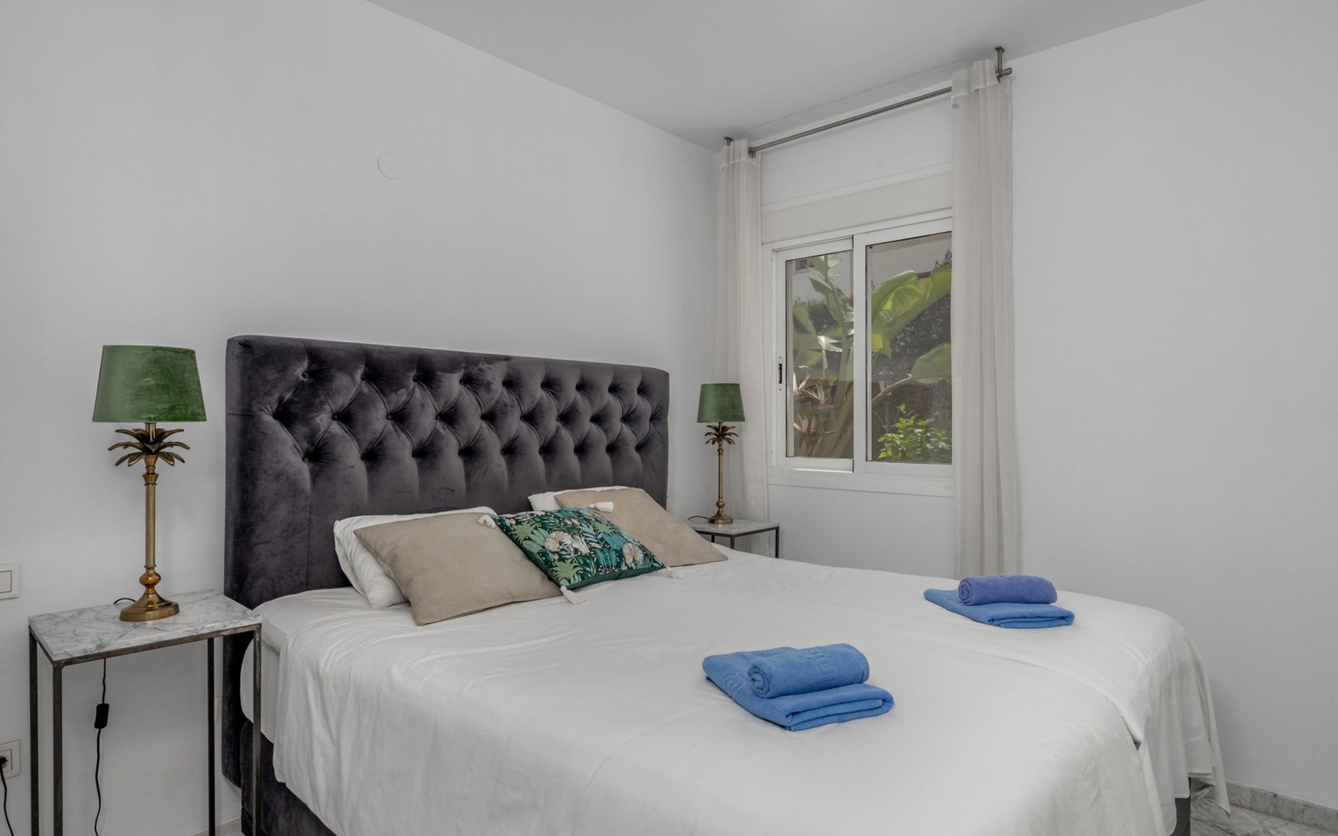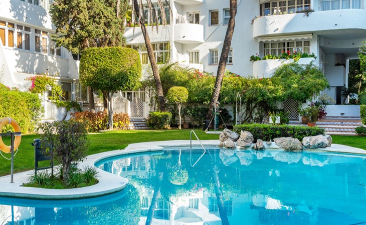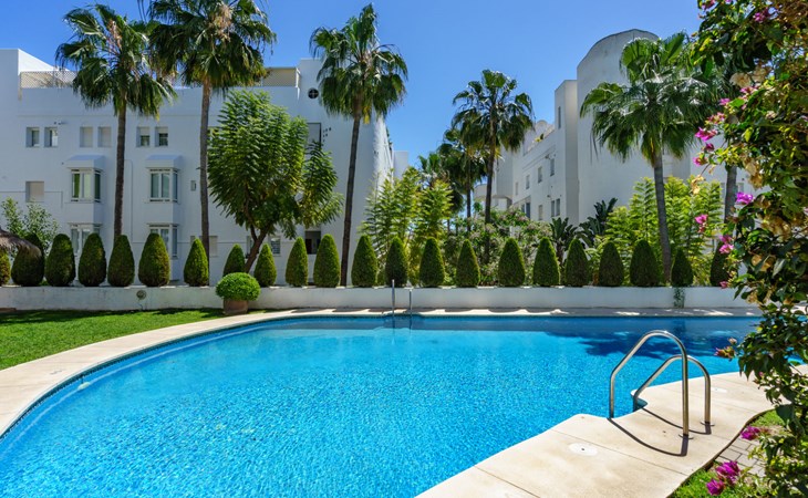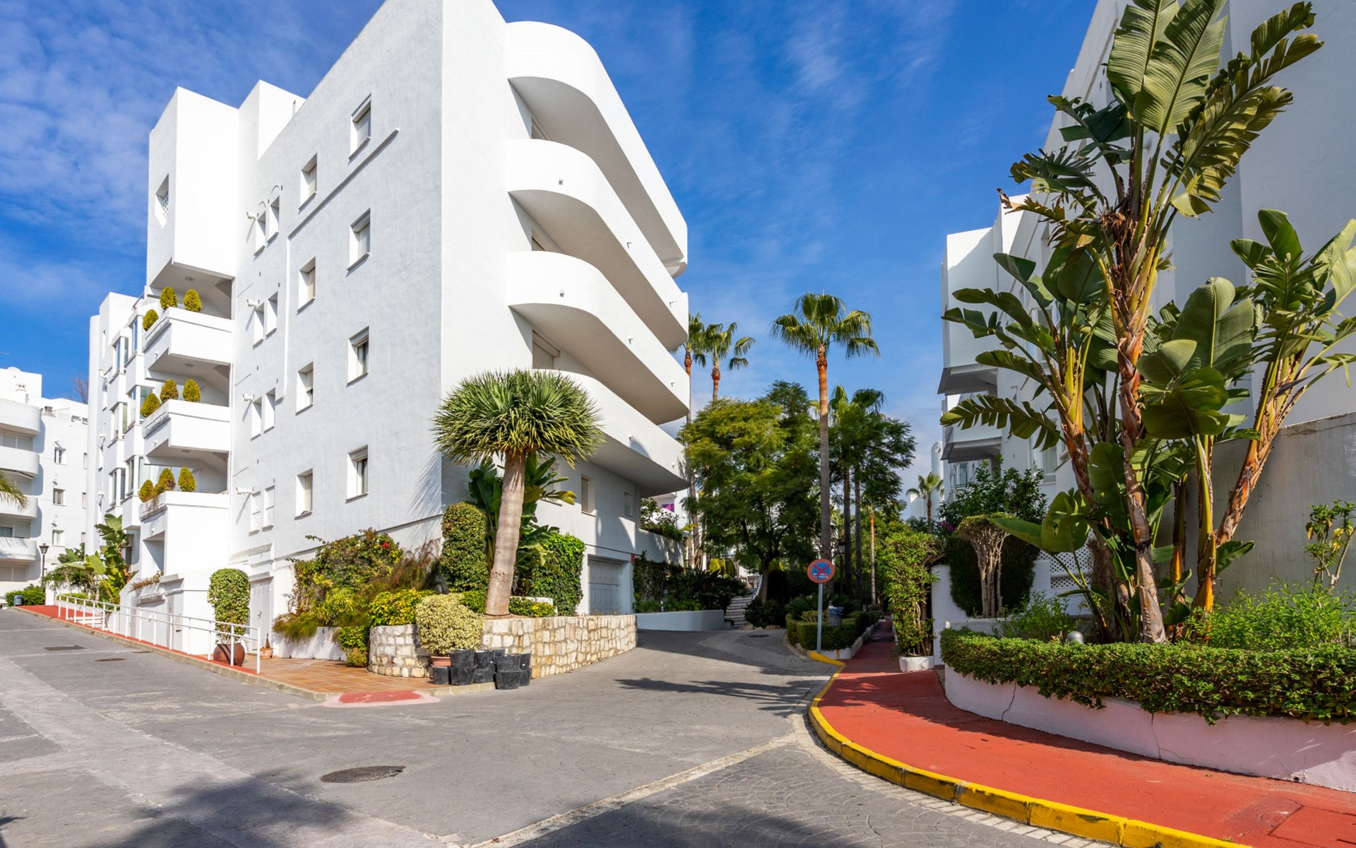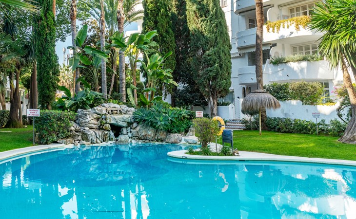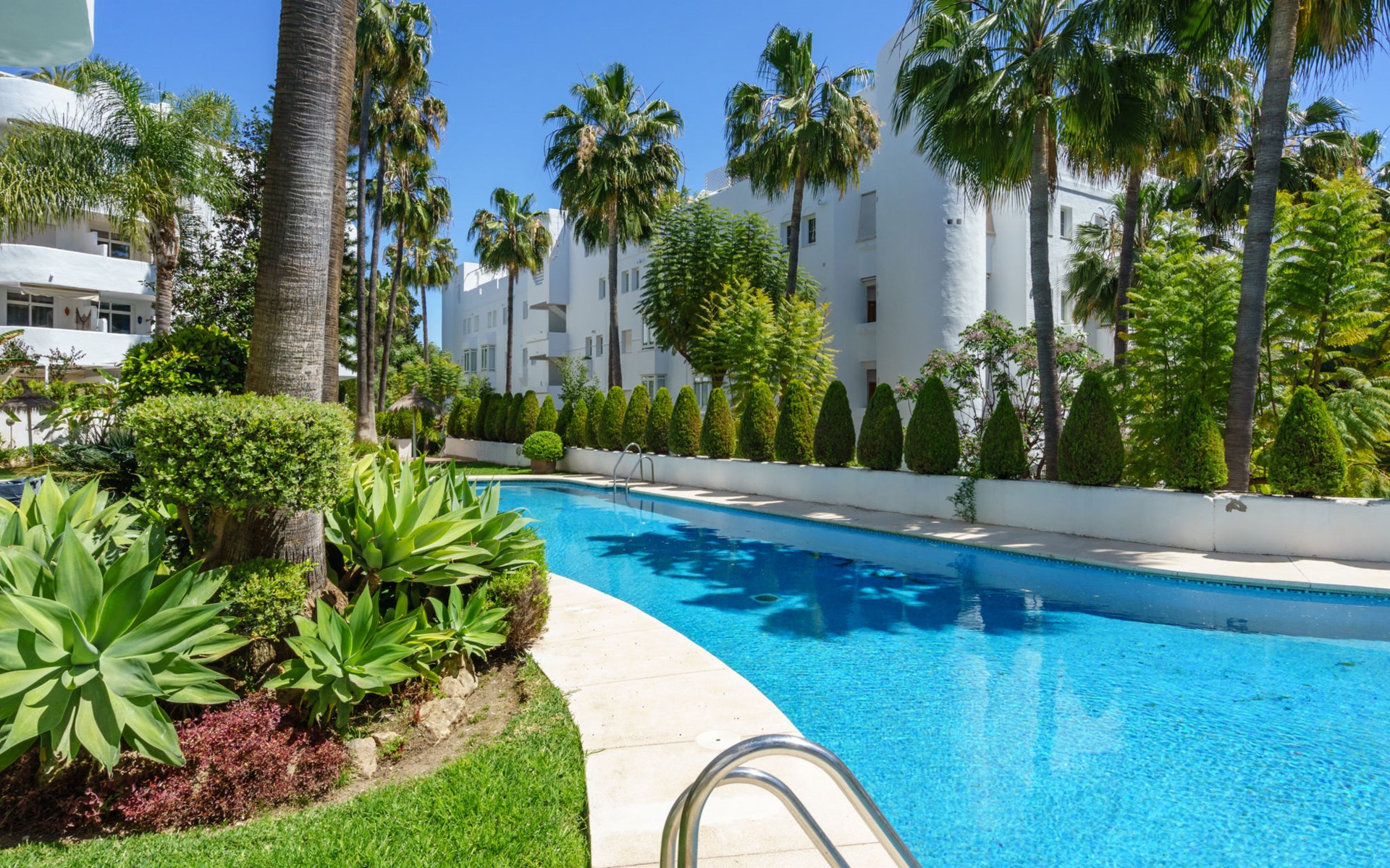 Schönes, komfortables Appartementhaus "Marbella Real", renoviert. 200 m vom Zentrum von Puente Romano, im Bezirk Marbella Golden Mille, exzellente Lage: Absolut zentral und dennoch ruhig, 800 m vom Meer, vom Strand, Richtung Osten. Zur Mitbenutzung: wunderschöner Garten zum Entspannen, 4 Schwimmbäder (saisonale Verfügbarkeit: 15.Jun. - 15.Sep.). Aussendusche, Tennis. In der Anlage: Aufenthaltsraum, Fitnessraum, Tischtennis, Spielzimmer. Parkplatz. Supermarkt 500 m, Restaurant 100 m, Bäckerei 500 m, Café 100 m, Bushaltestelle "La Carolina" 300 m, Sandstrand 800 m. Objekt geeignet für 4 Erwachsene. Bewachte Residenz.