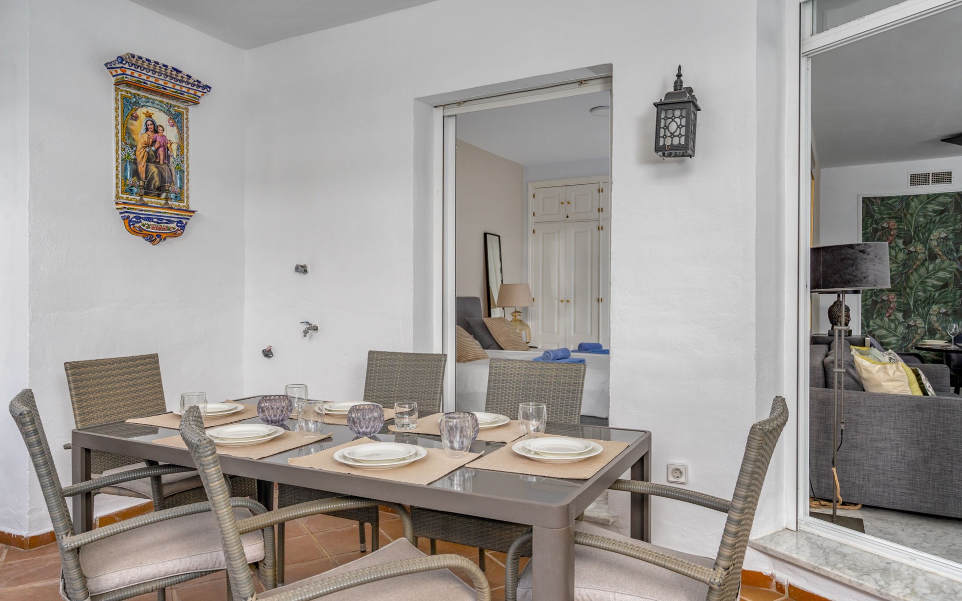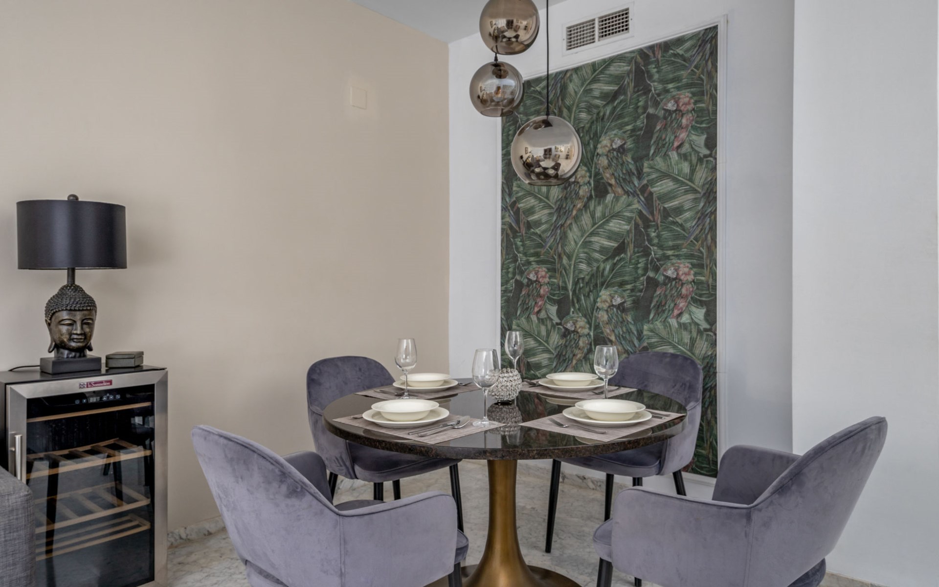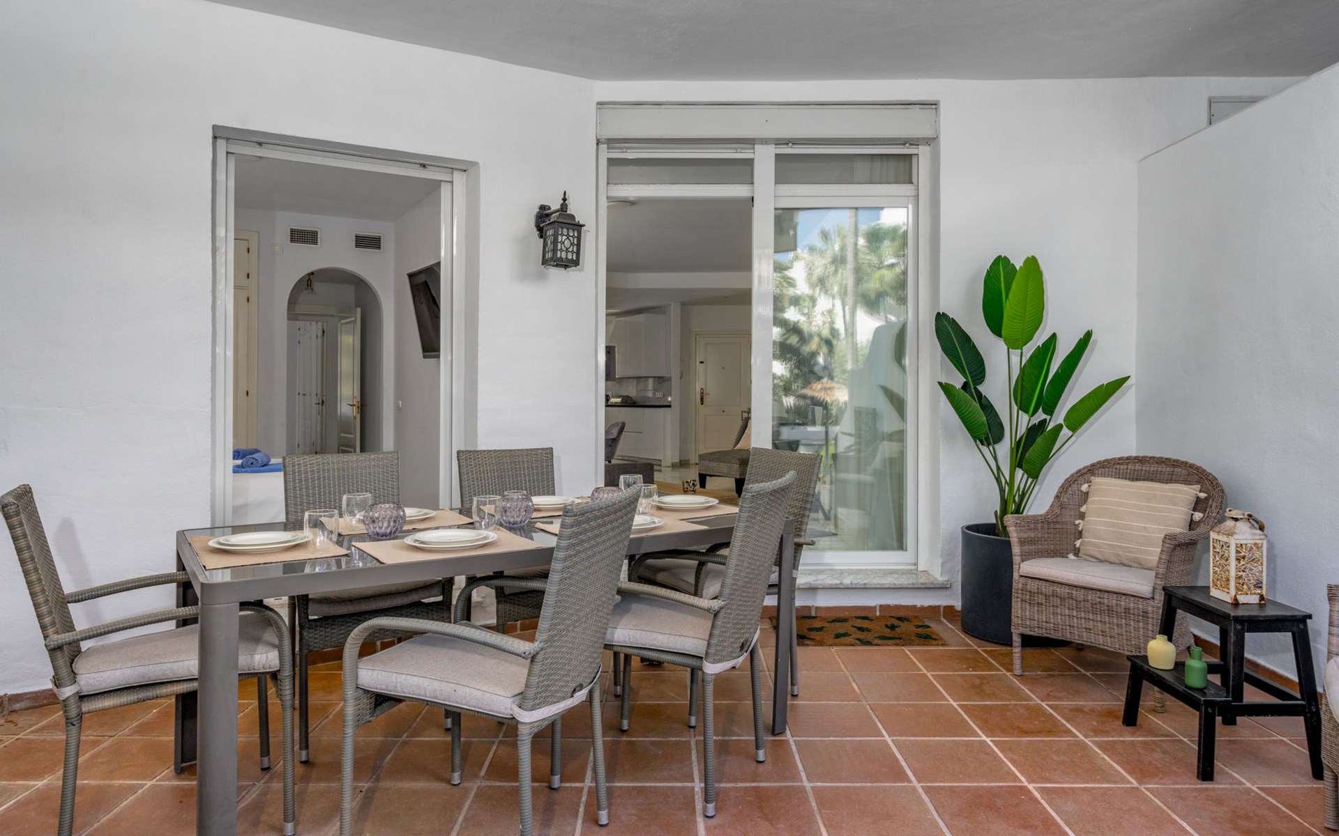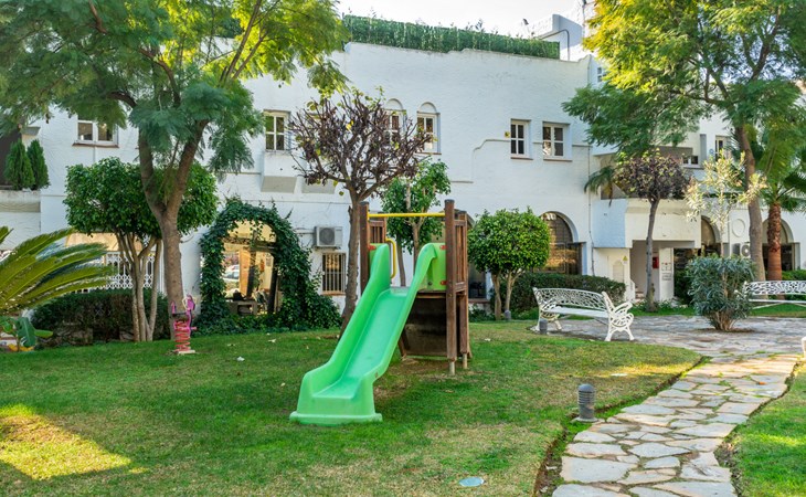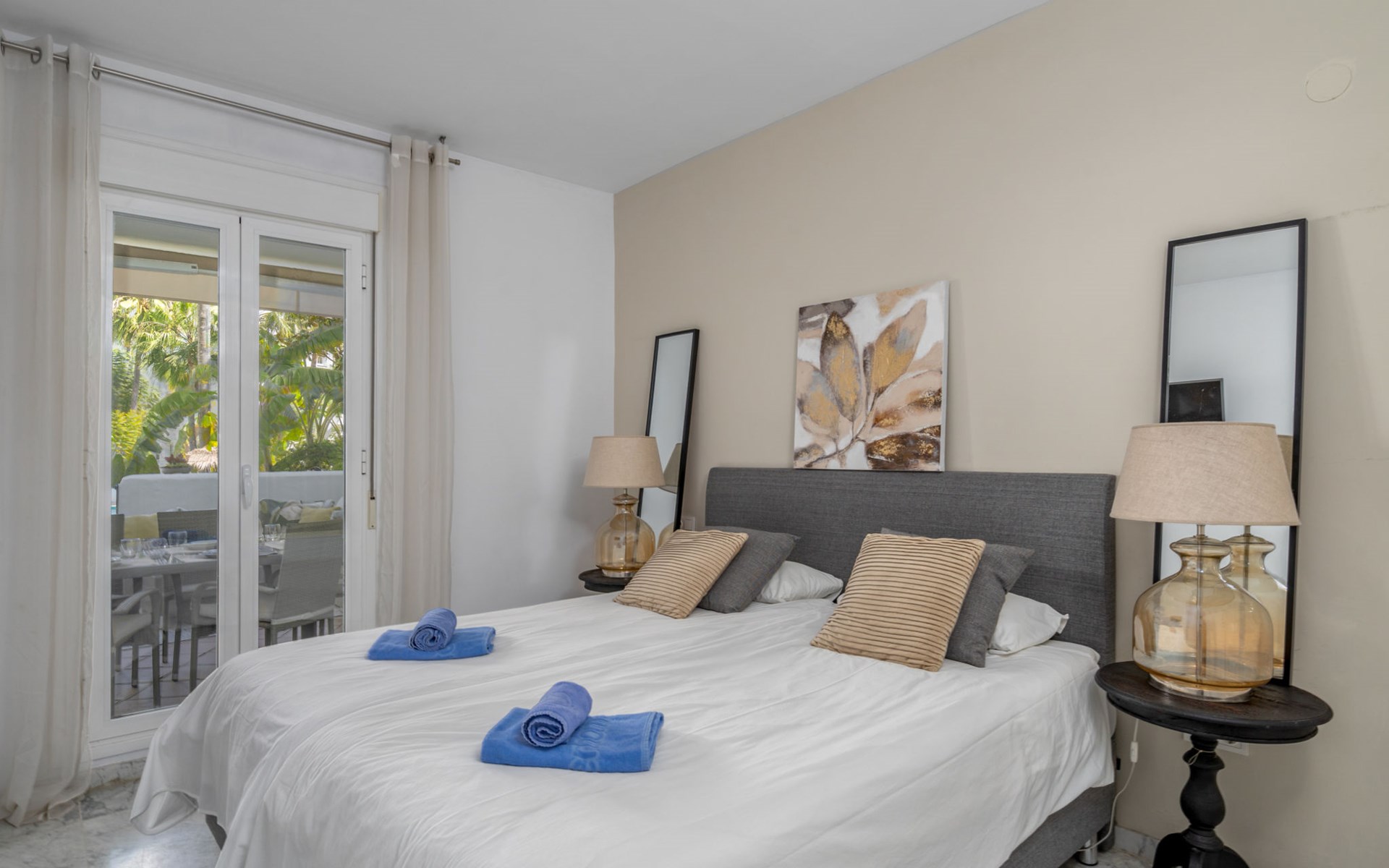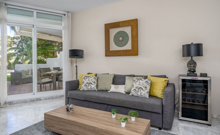 Schönes, komfortables Appartementhaus "Marbella Real", renoviert. 200 m vom Zentrum von Puente Romano, im Bezirk Marbella Golden Mille, exzellente Lage: Absolut zentral und dennoch ruhig, 800 m vom Meer, vom Strand, Richtung Osten. Zur Mitbenutzung: wunderschöner Garten zum Entspannen, 4 Schwimmbäder (saisonale Verfügbarkeit: 15.Jun. - 15.Sep.). Aussendusche, Tennis. In der Anlage: Aufenthaltsraum, Fitnessraum, Tischtennis, Spielzimmer. Parkplatz. Supermarkt 500 m, Restaurant 100 m, Bäckerei 500 m, Café 100 m, Bushaltestelle "La Carolina" 300 m, Sandstrand 800 m. Objekt geeignet für 4 Erwachsene. Bewachte Residenz.