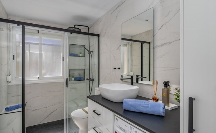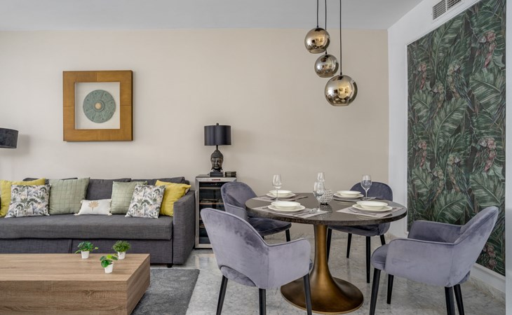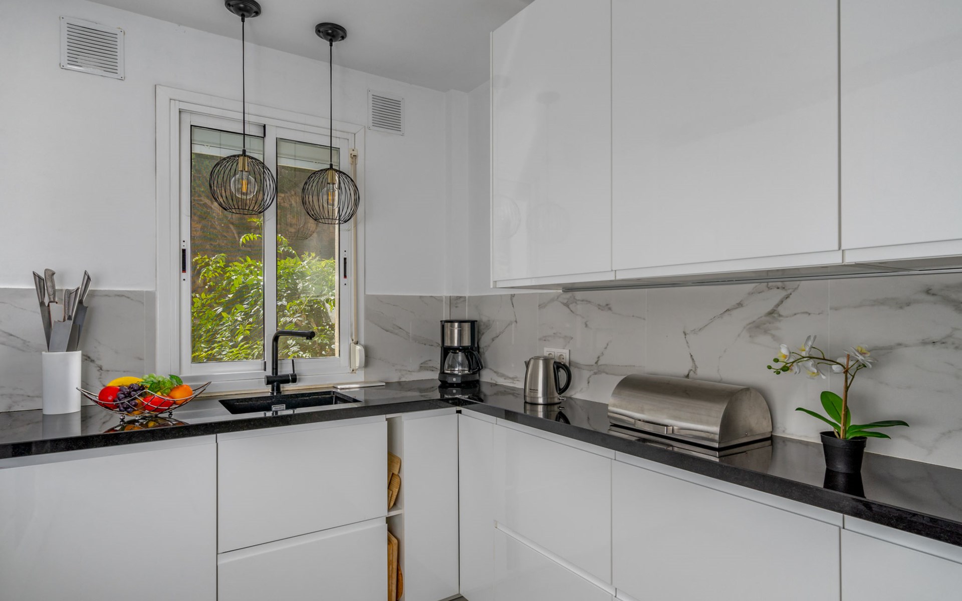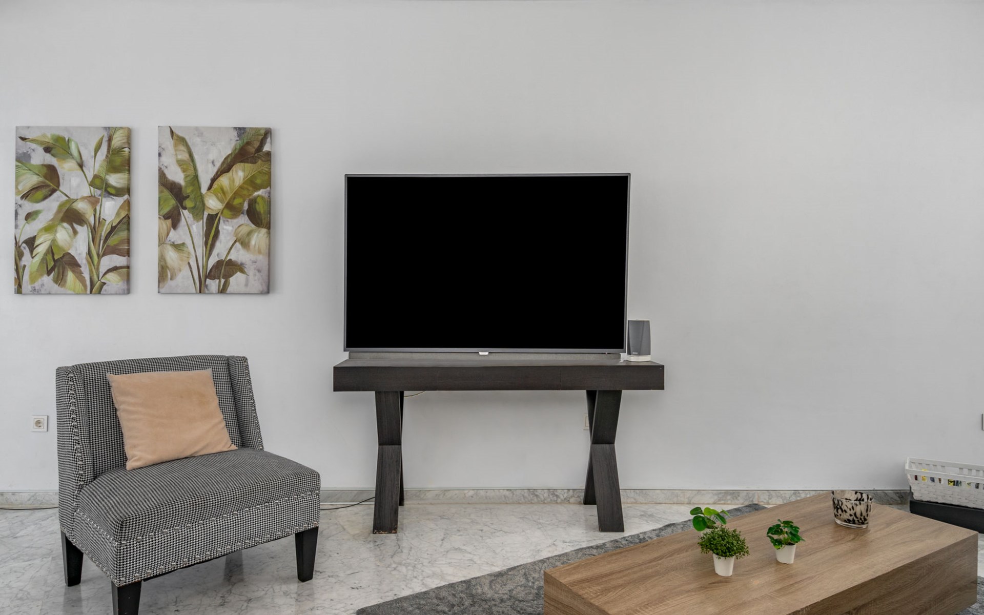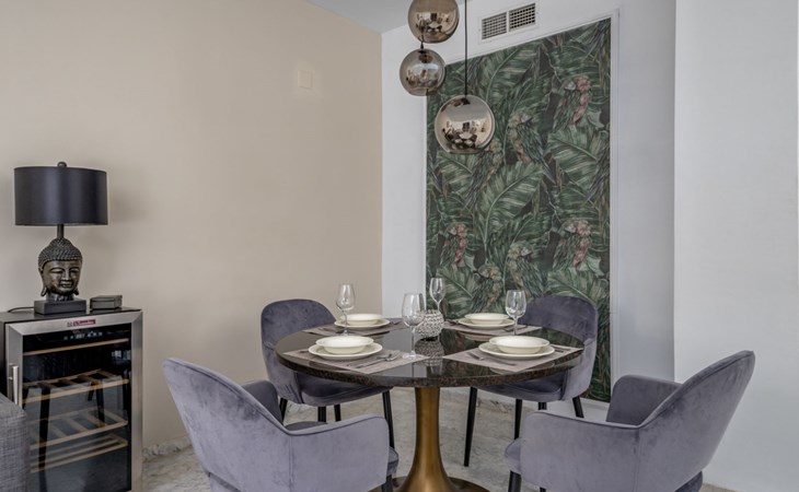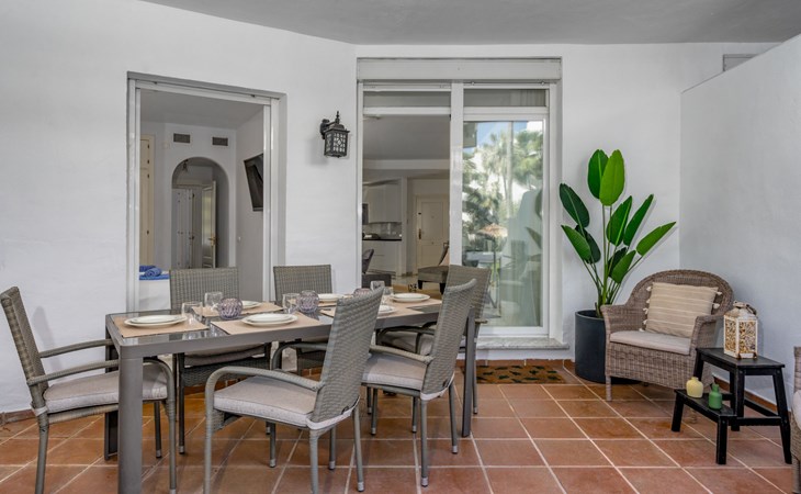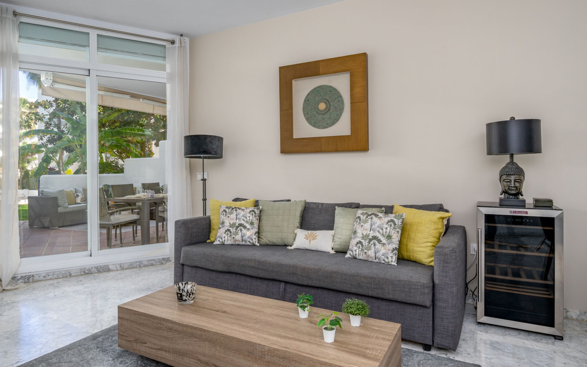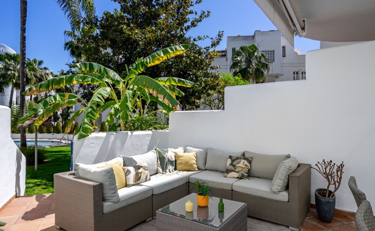 Schönes, komfortables Appartementhaus "Marbella Real", renoviert. 200 m vom Zentrum von Puente Romano, im Bezirk Marbella Golden Mille, exzellente Lage: Absolut zentral und dennoch ruhig, 800 m vom Meer, vom Strand, Richtung Osten. Zur Mitbenutzung: wunderschöner Garten zum Entspannen, 4 Schwimmbäder (saisonale Verfügbarkeit: 15.Jun. - 15.Sep.). Aussendusche, Tennis. In der Anlage: Aufenthaltsraum, Fitnessraum, Tischtennis, Spielzimmer. Parkplatz. Supermarkt 500 m, Restaurant 100 m, Bäckerei 500 m, Café 100 m, Bushaltestelle "La Carolina" 300 m, Sandstrand 800 m. Objekt geeignet für 4 Erwachsene. Bewachte Residenz.