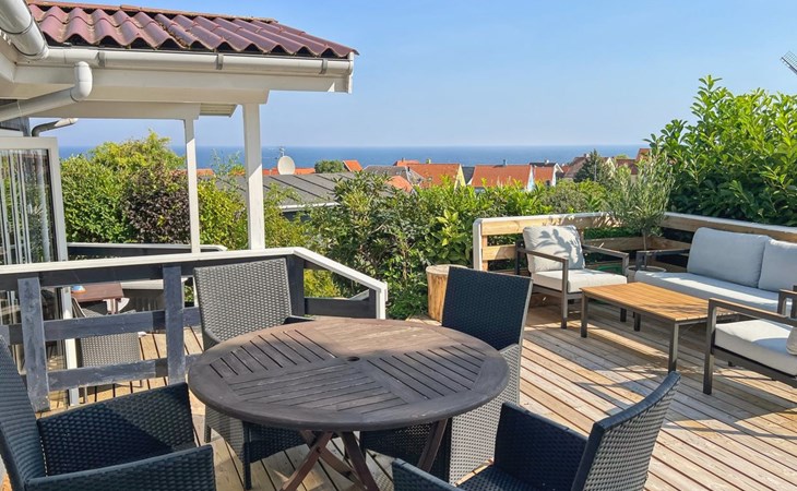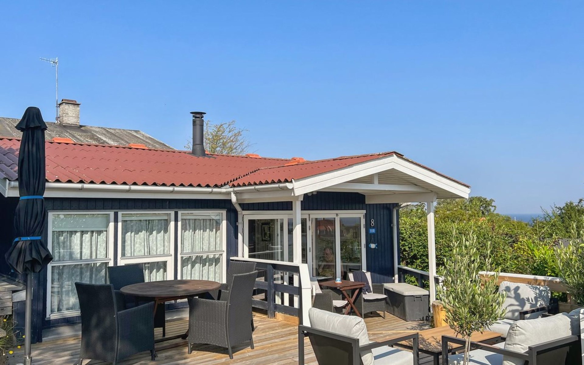 Einfamilienhaus, Baujahr 1997. 800 m vom Meer. Zur Alleinbenutzung: Grundstück 2'000 m2, gepflegter Garten. Terrasse (30 m2). Im Hause: Sauna, Waschmaschine. Parkplatz beim Haus. Lebensmittelgeschäft 200 m. Golfplatz 10 km. Der Besitzer akzeptiert keine Jugendgruppen.