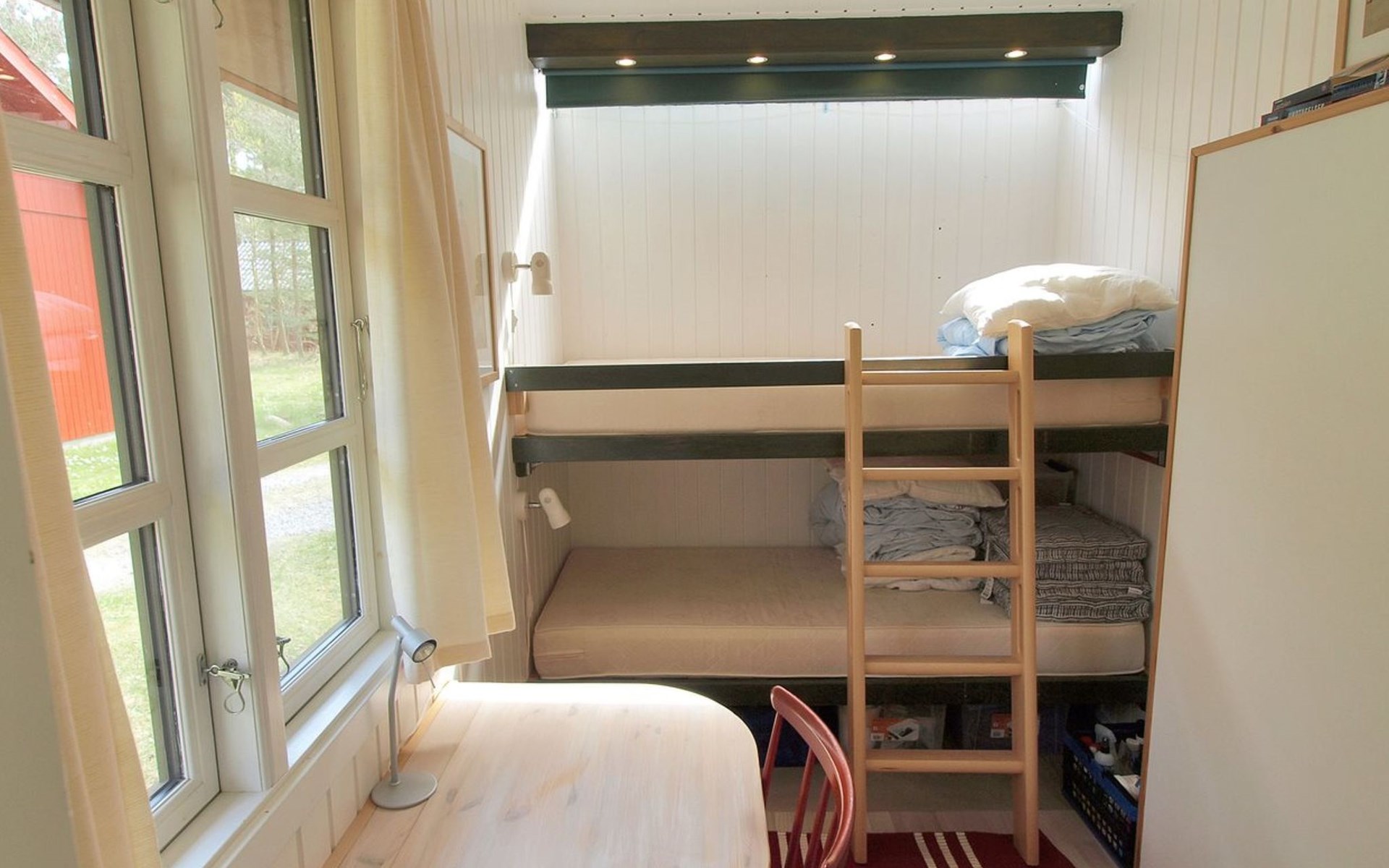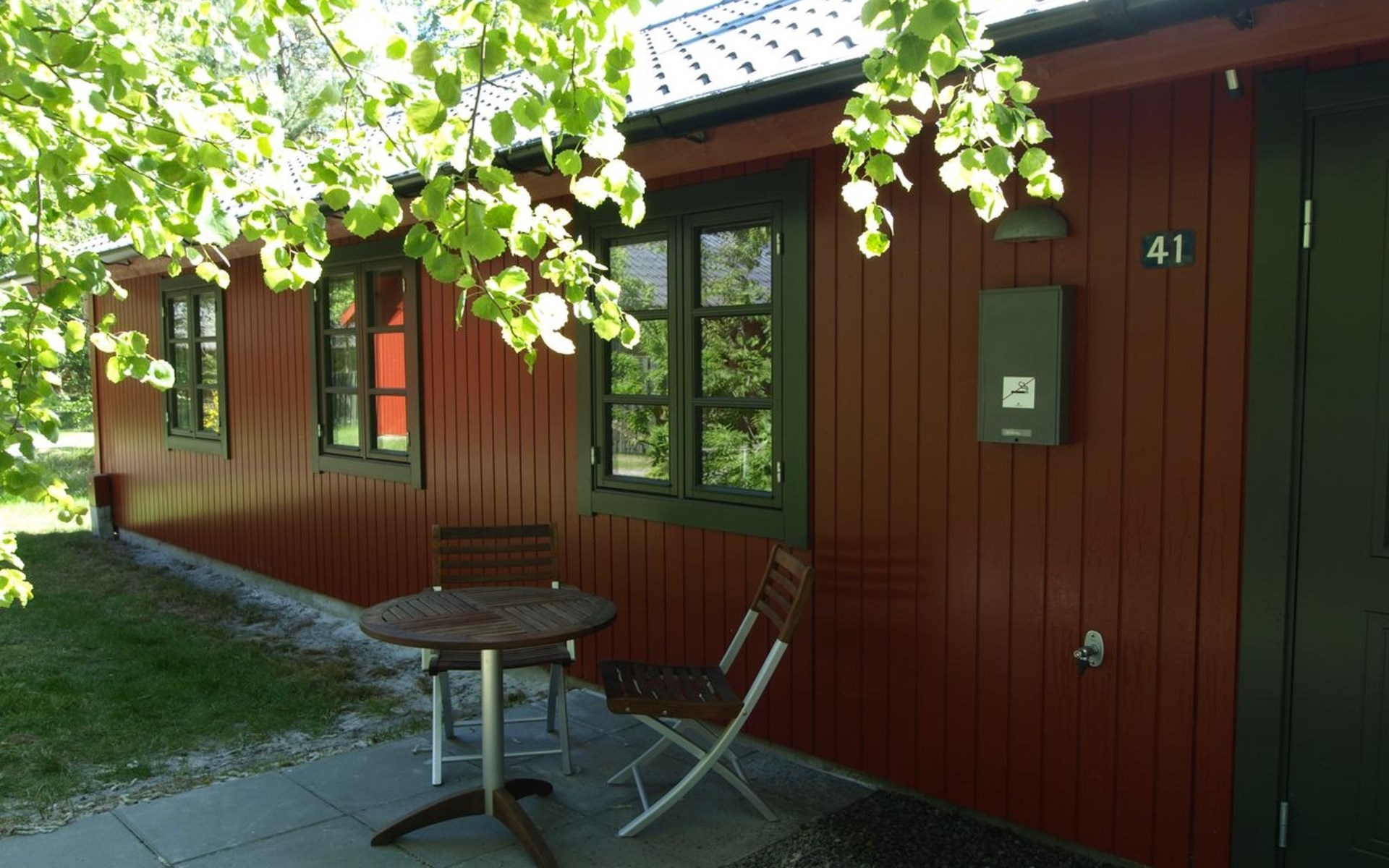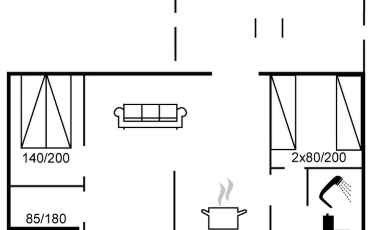 Feriendorf, Baujahr 1973. 200 m vom Meer. Zur Alleinbenutzung: naturbelassenes Grundstück. Terrasse (16 m2), Parkplatz beim Haus. Lebensmittelgeschäft 1.5 km. Der Besitzer akzeptiert keine Jugendgruppen.