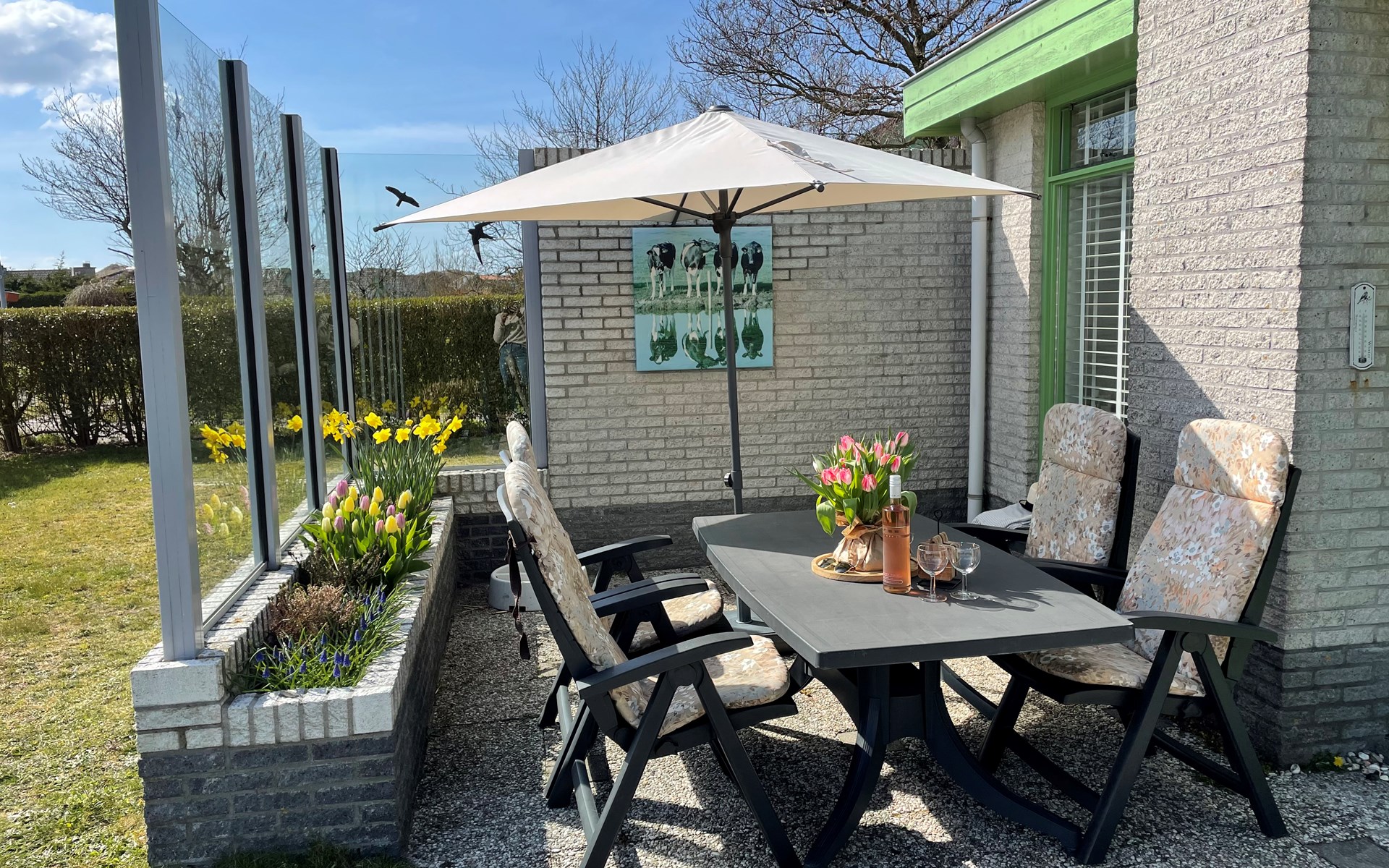 Draußen können Sie einen großen, sonnigen Garten mit Terrasse und Gartenmöbeln genießen. Dank des vollständig umzäunten Gartens können Kinder und Haustiere sicher spielen. Haustiere sind willkommen, bringen Sie also gerne Ihren Hund mit in den Urlaub.