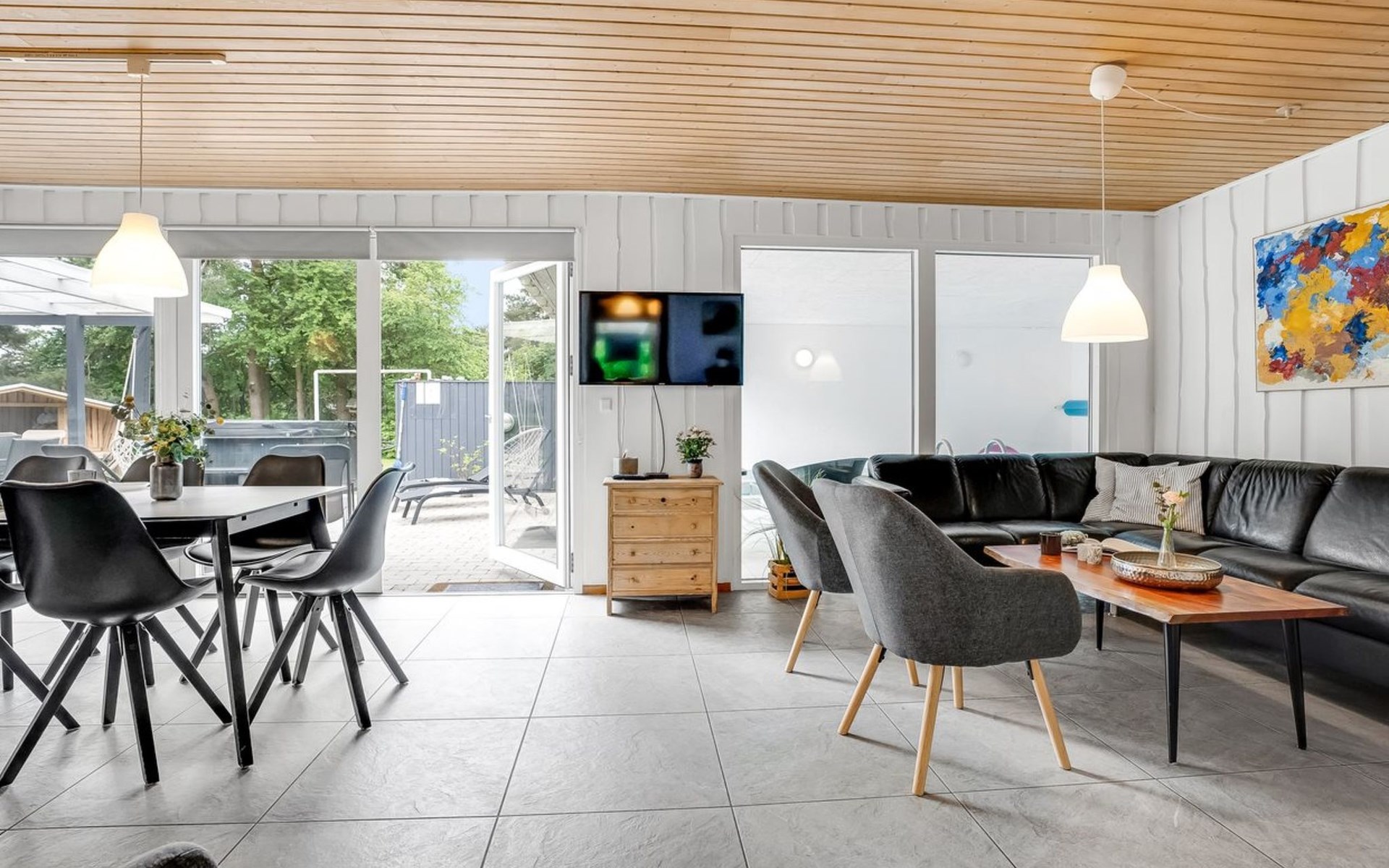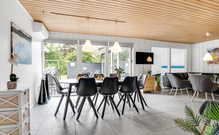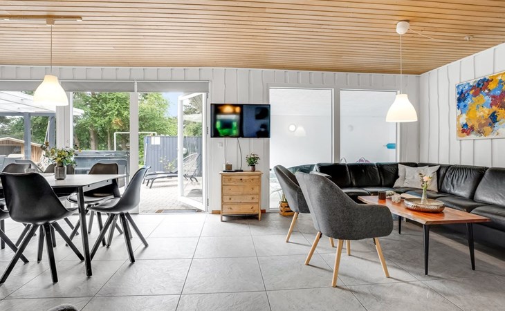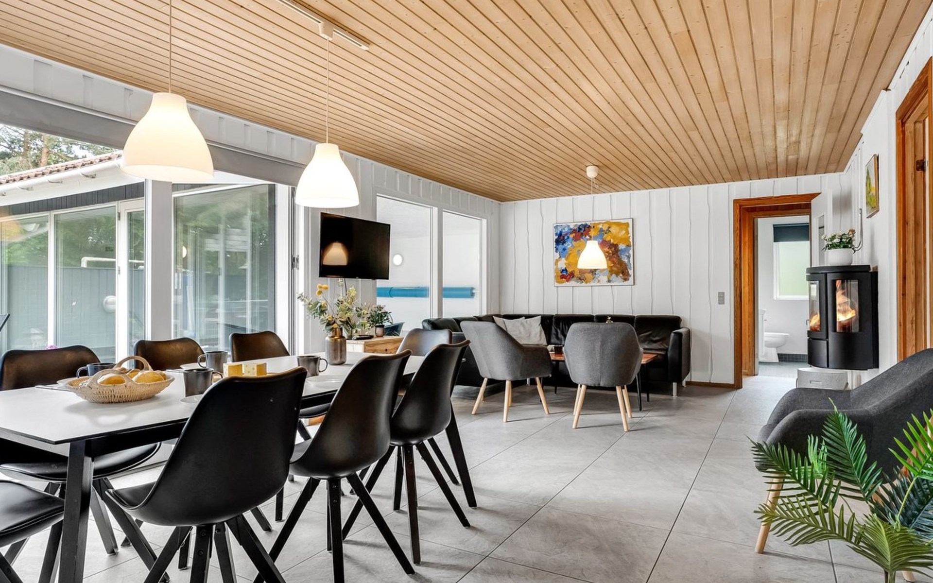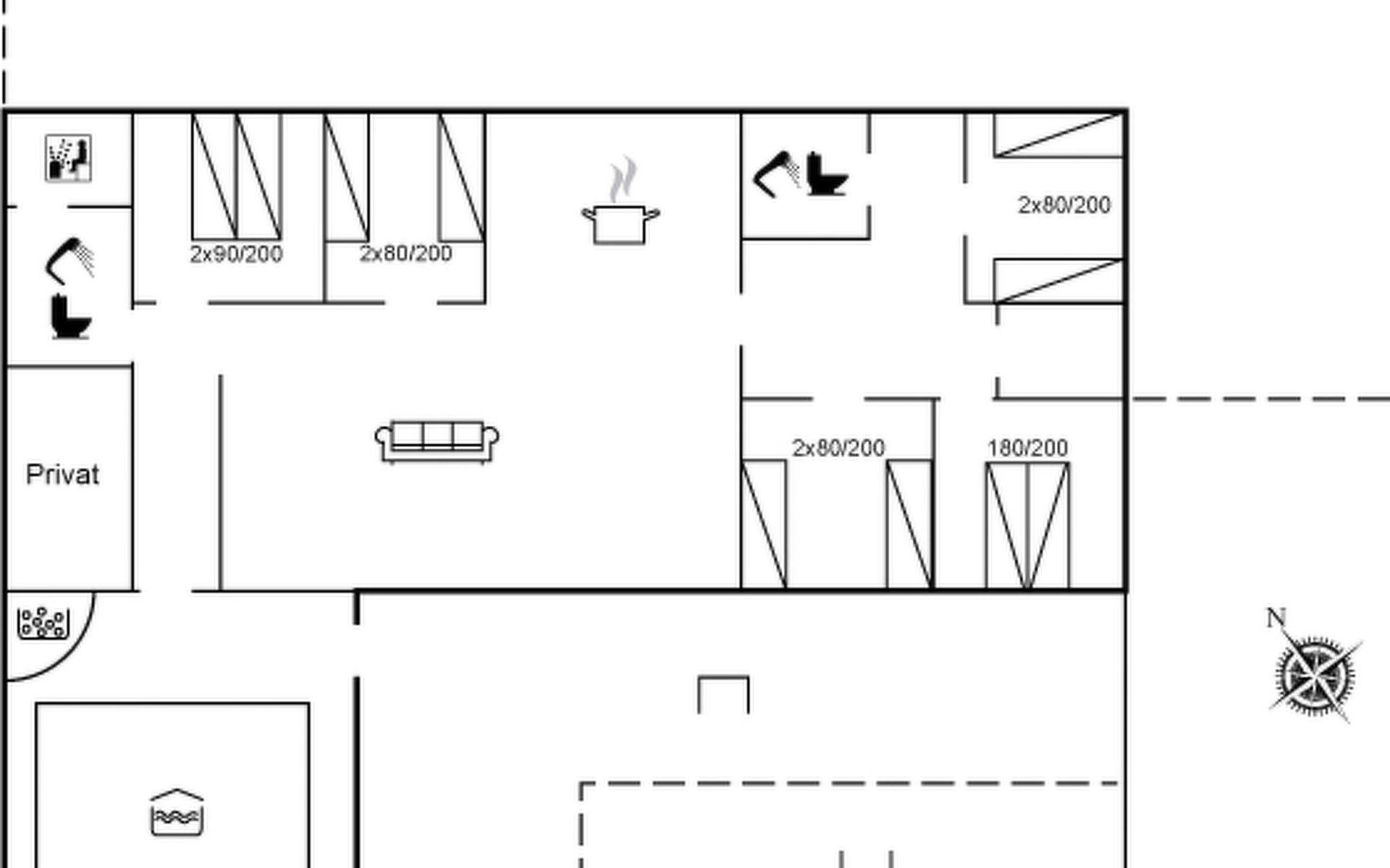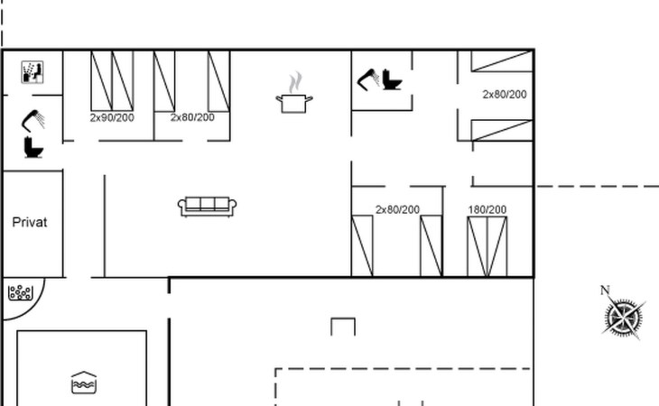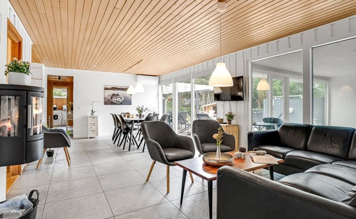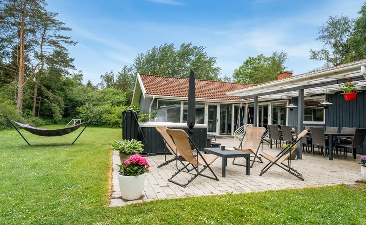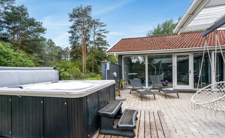 Einfamilienhaus, Baujahr 1993. 300 m vom Meer. Zur Mitbenutzung: Garten. Zur Alleinbenutzung: naturbelassenes Grundstück 1'554 m2, Garten (eingezäunt), Hallenbad (3 x 4 m, 1'5.8 m2, 130 - 130 cm tief). Terrasse (70 m2), Kinderspielplatz (Schaukel). Im Hause: Sauna, Trampolin, Waschmaschine, Wäschetrockner. Parkplatz beim Haus. Carport. Lebensmittelgeschäft 500 m. Der Besitzer akzeptiert keine Jugendgruppen.