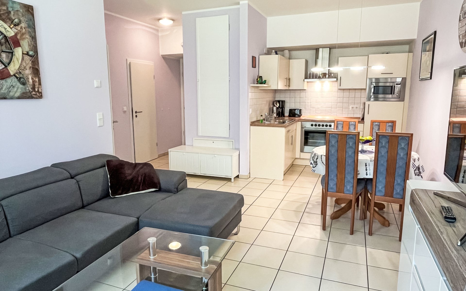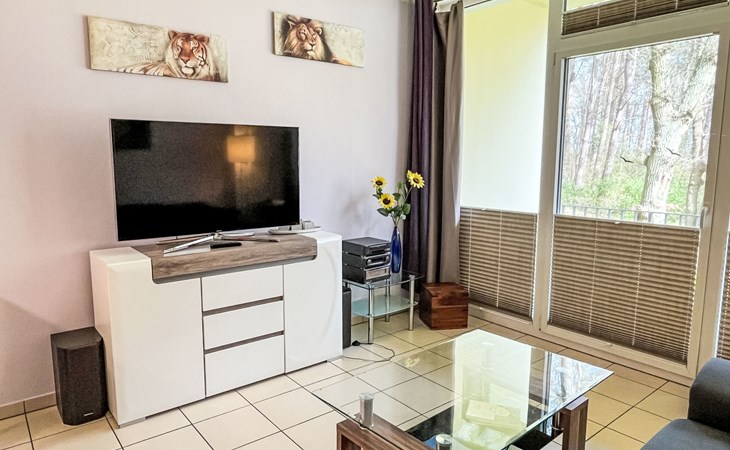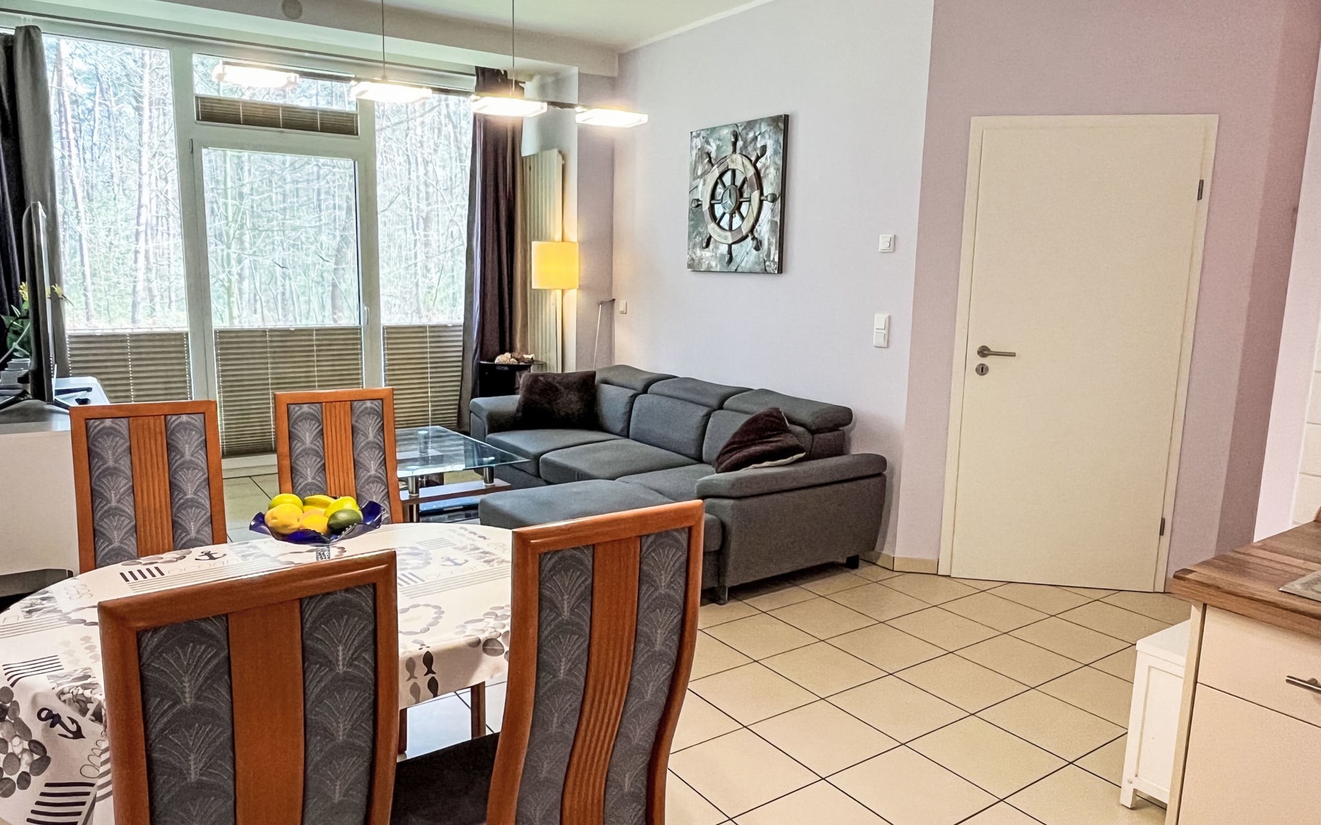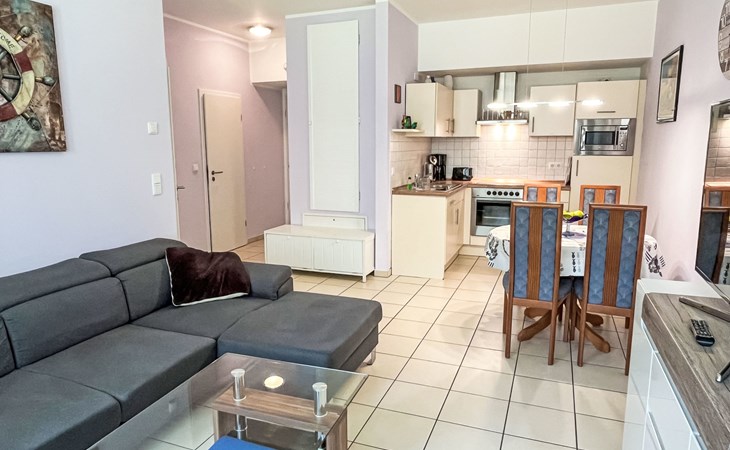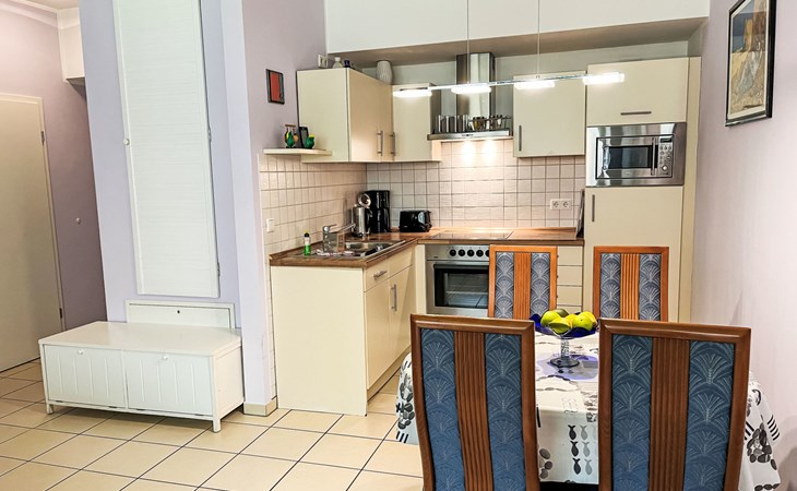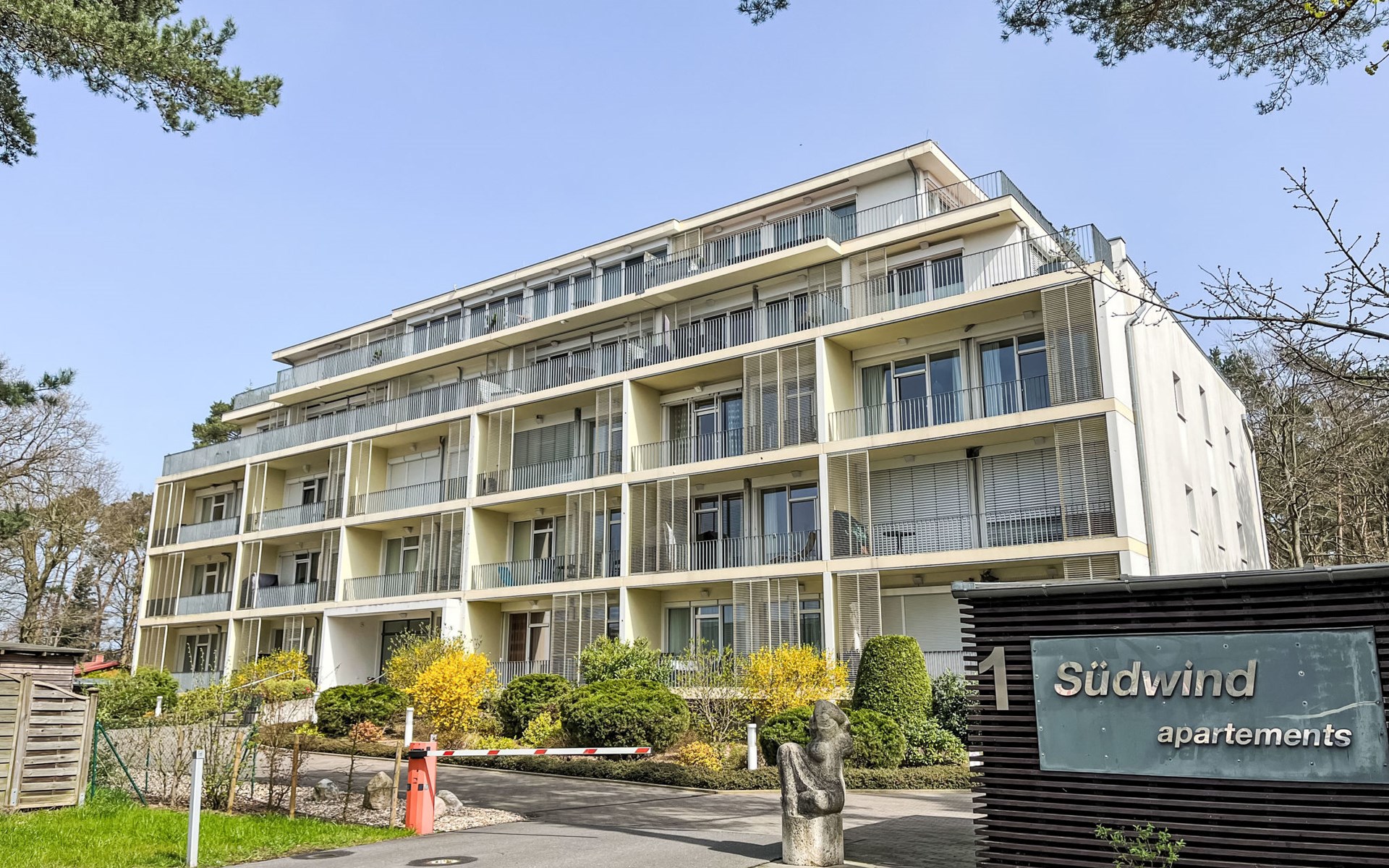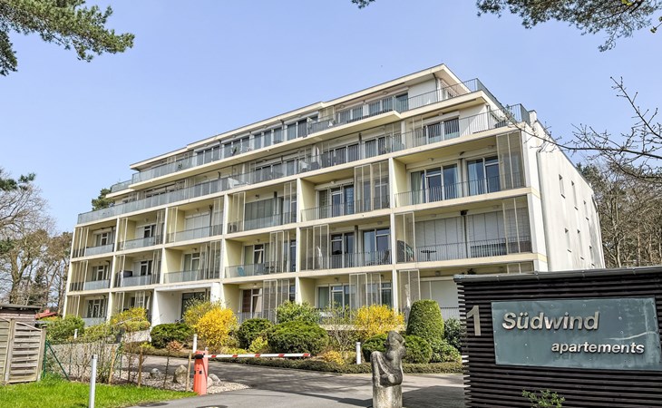 Appartementhaus "Südwind", auf 4 Stockwerken. Im Ort, 750 m vom Zentrum von Zempin, 300 m vom Meer, 300 m vom Strand. Im Hause: Zentralheizung. Parkplatz auf dem Grundstück. Supermarkt 4 km, Restaurant 700 m, Bäckerei, Café 500 m, Bushaltestelle, Bahnstation 600 m, Sandstrand 300 m, Thermalbad "Bernsteintherme" 4.3 km. Golfplatz (18 Loch) 21 km, Surfschule 4.2 km, Tennis 3.9 km, Minigolf 4 km.