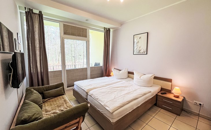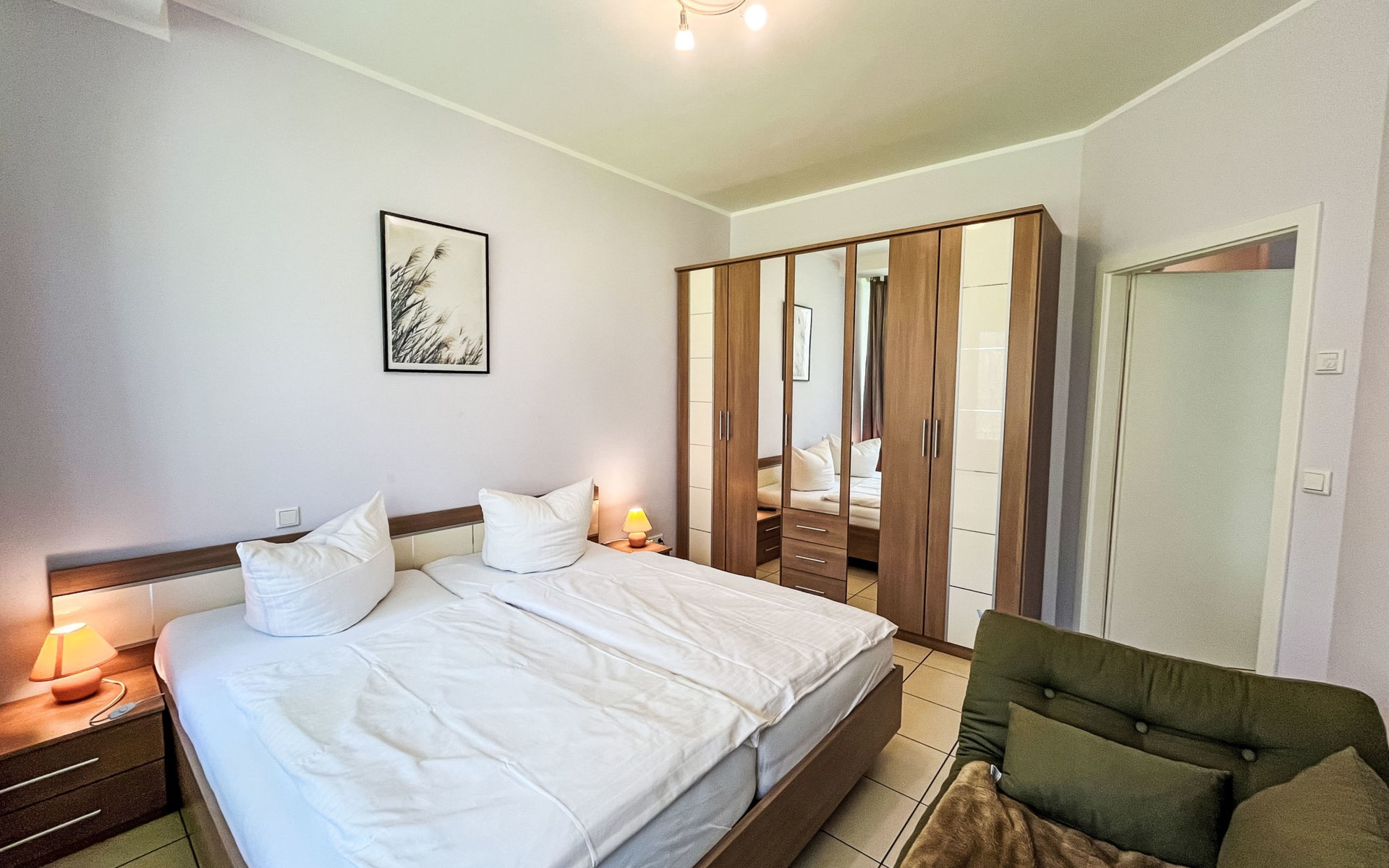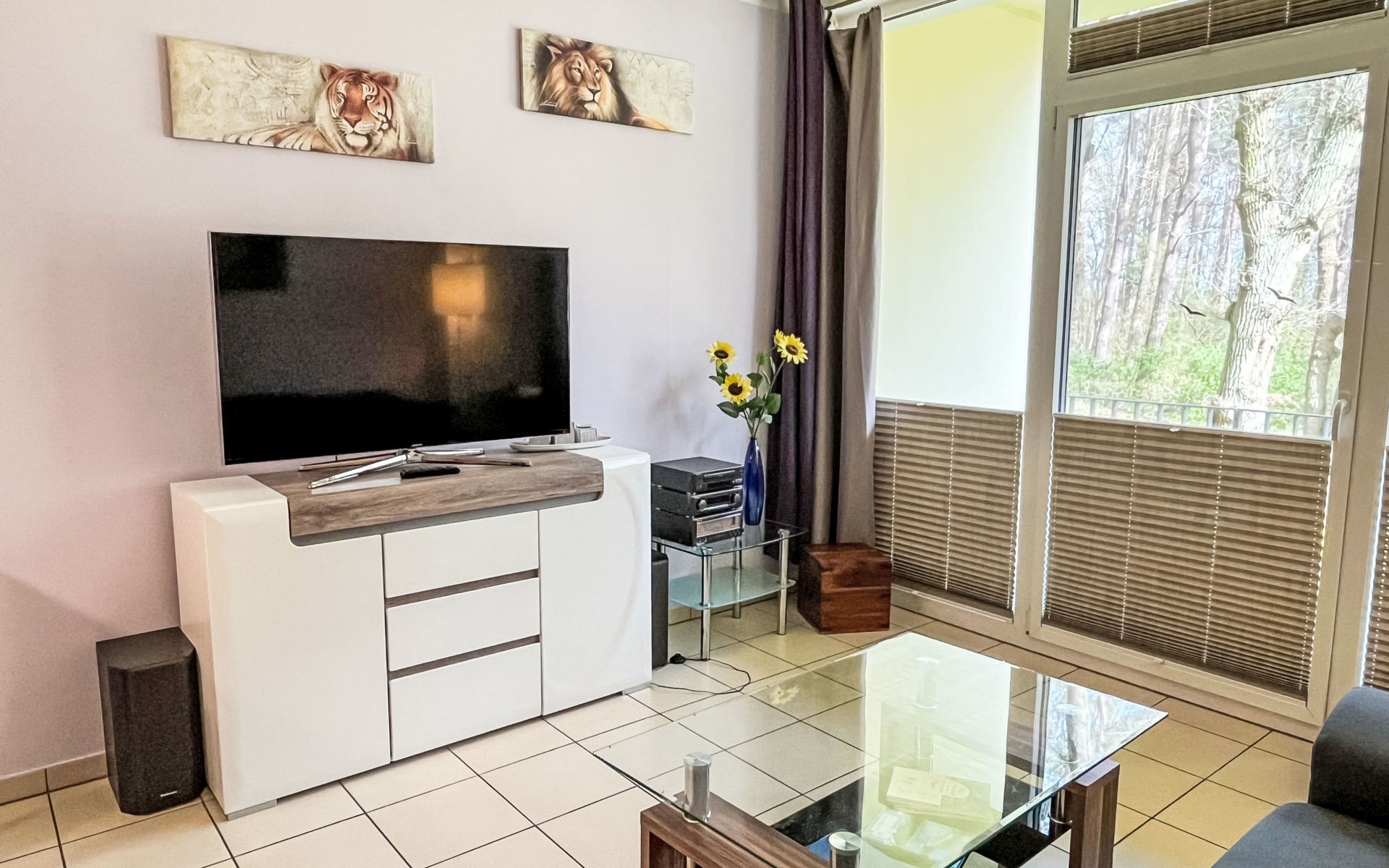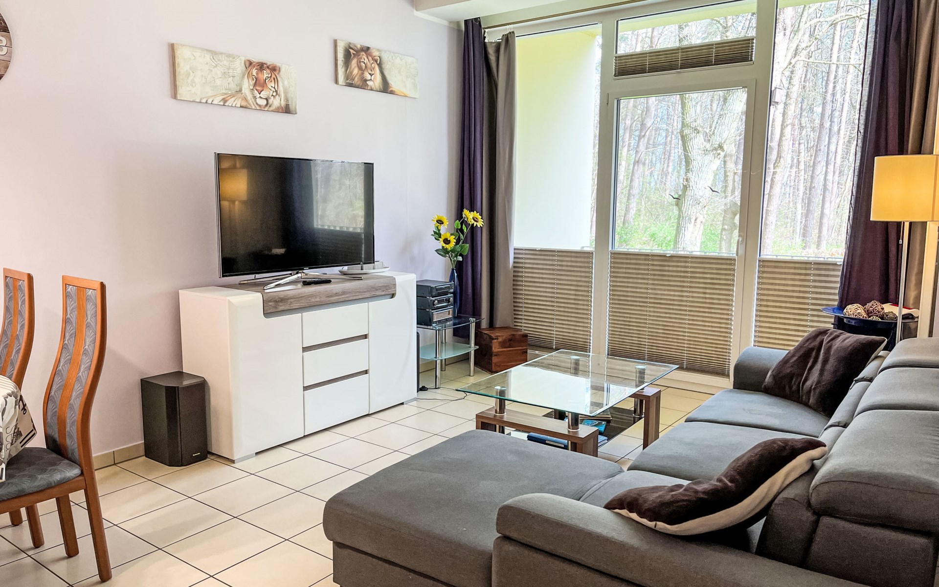Appartementhaus "Südwind", auf 4 Stockwerken. Im Ort, 750 m vom Zentrum von Zempin, 300 m vom Meer, 300 m vom Strand. Im Hause: Zentralheizung. Parkplatz auf dem Grundstück. Supermarkt 4 km, Restaurant 700 m, Bäckerei, Café 500 m, Bushaltestelle, Bahnstation 600 m, Sandstrand 300 m, Thermalbad "Bernsteintherme" 4.3 km. Golfplatz (18 Loch) 21 km, Surfschule 4.2 km, Tennis 3.9 km, Minigolf 4 km.