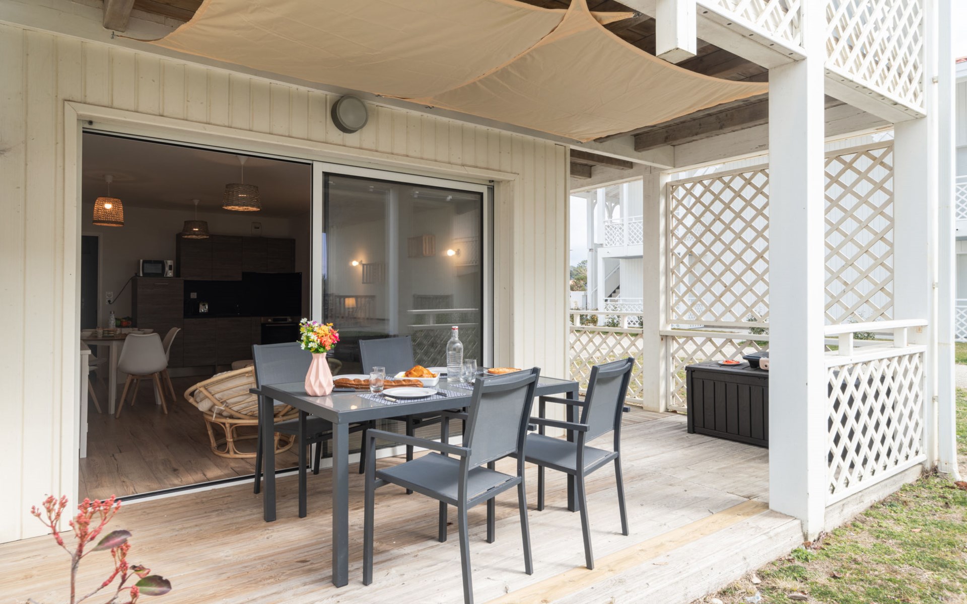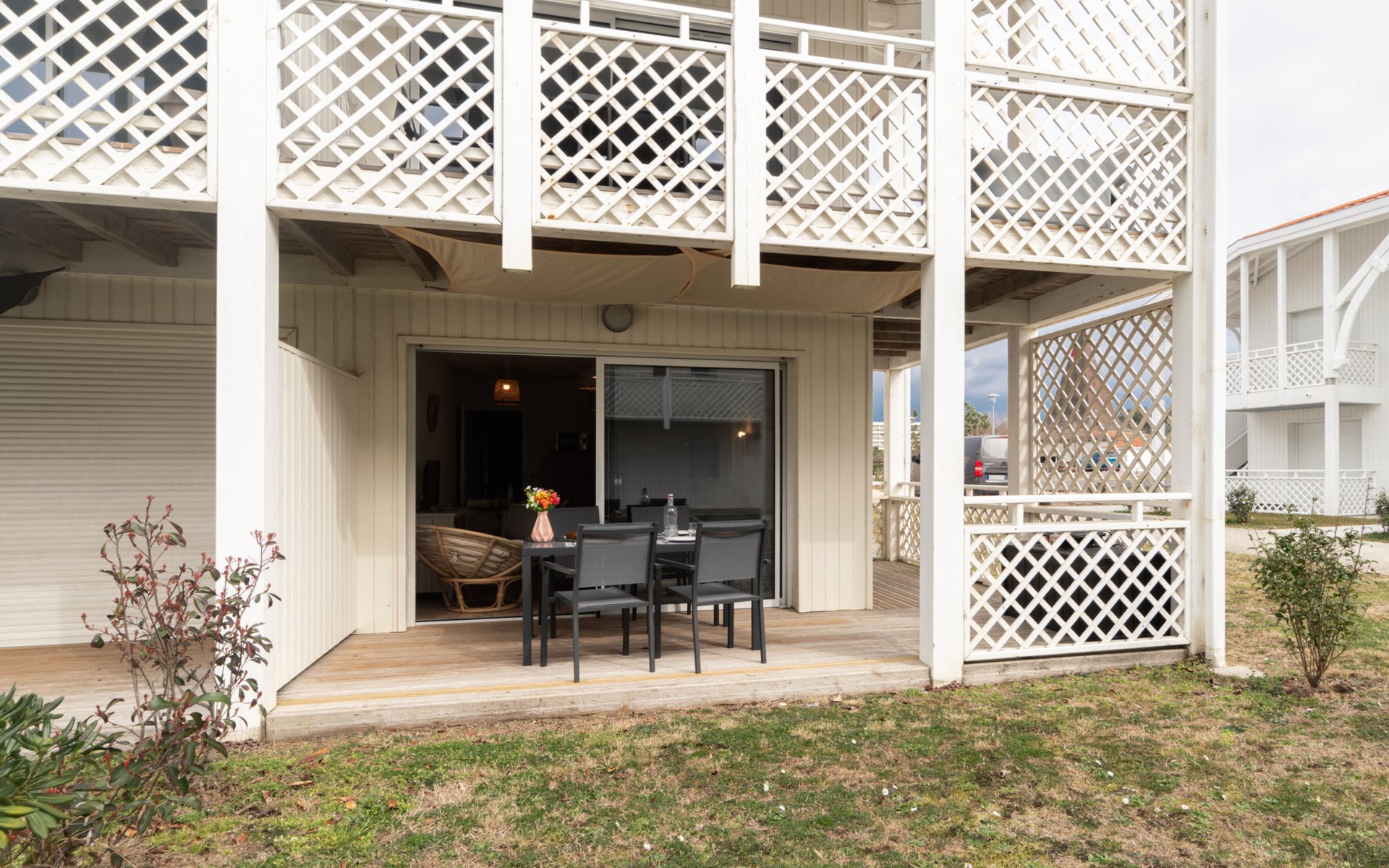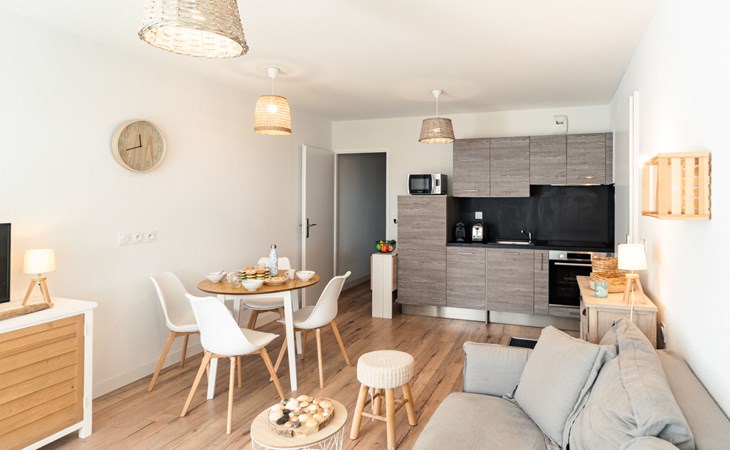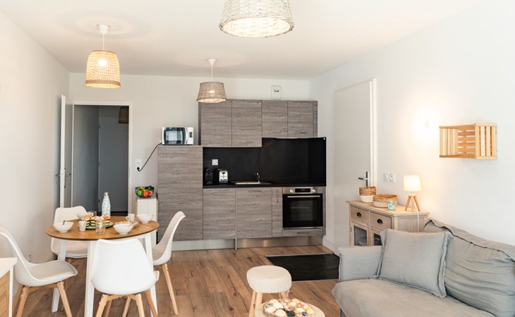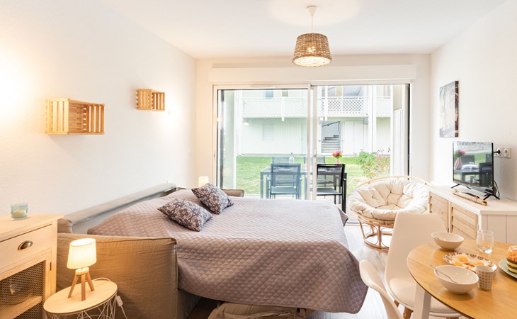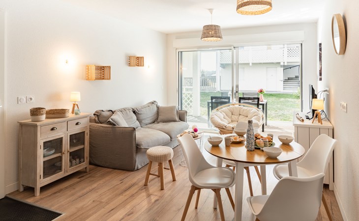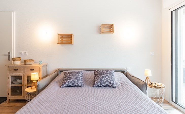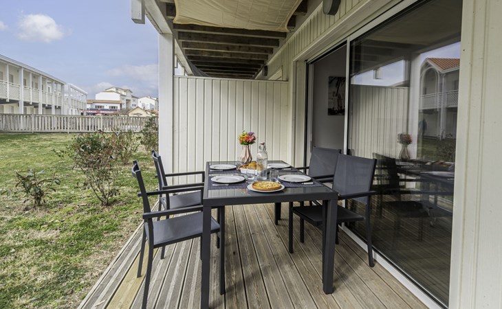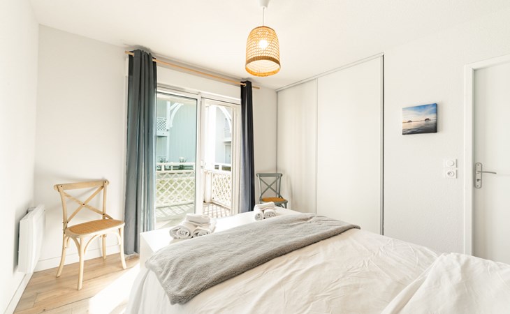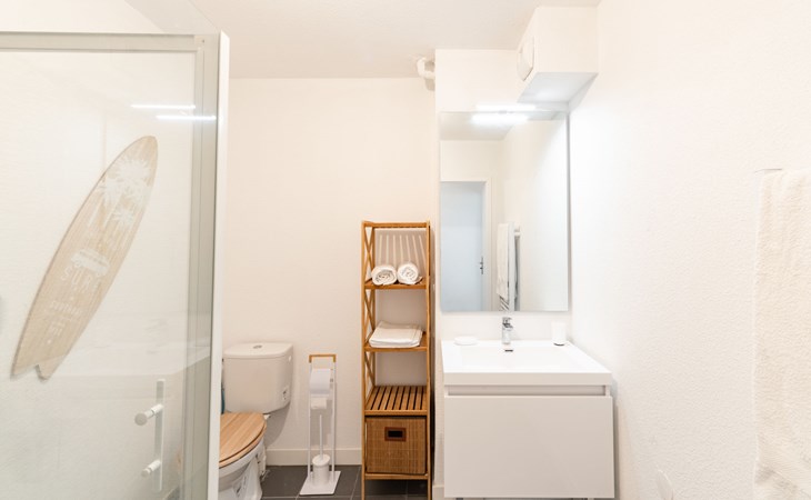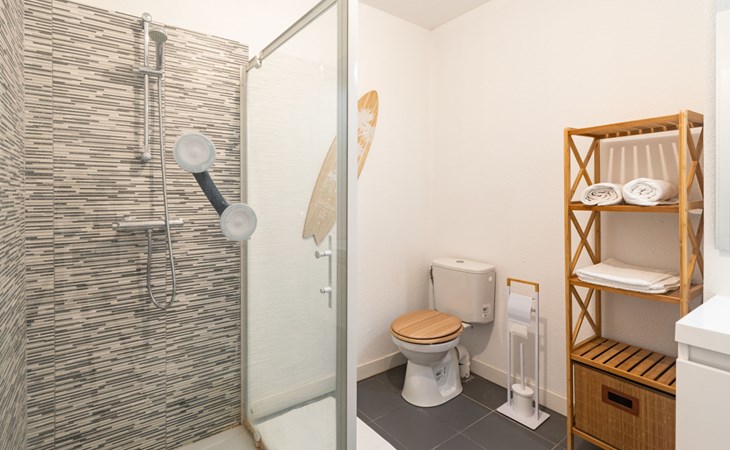 Mimizan Plage: Residenz "Pêcheur", Baujahr 2019. Im Ort, 100 m vom Zentrum von de Mimizan Plage, 600 m vom Waldrand, 200 m vom Meer, 9 km vom See, 200 m vom Strand, 50 m vom Kanal. Zur Mitbenutzung: Schwimmbad eingezäunt (155 - 155 cm tief, saisonale Verfügbarkeit: 01.Jun. - 30.Sep. Öffnungszeiten Schwimmbad: 10:00-19:00) mit Innentreppe. Kinderbecken, Aussendusche. In der Anlage: Einstellraum für Fahrräder, Waschmaschine, Wäschetrockner (zur Mitbenutzung). Einkaufsgeschäft 200 m, Lebensmittelgeschäft, Supermarkt 100 m, Einkaufszentrum 6 km, Restaurant 100 m, Bar, Bäckerei 100 m, Café, Fußgängerzone, Fahrradverleih, Sandstrand "La Garluche" 200 m. Surfschule 250 m, Segelschule 6 km, Tennis 3 km, Reitstall 9 km. Nahe gelegene Sehenswürdigkeiten: Bordeaux 120 km, Arcachon 70 km, Biscarrosse 35 km, Accro branches 5 km, Casino de jeux 1 km, Village de Marquèze 45 km. Bekannte Seen in der Umgebung sind gut erreichbar: Aureilhan 10 km.
