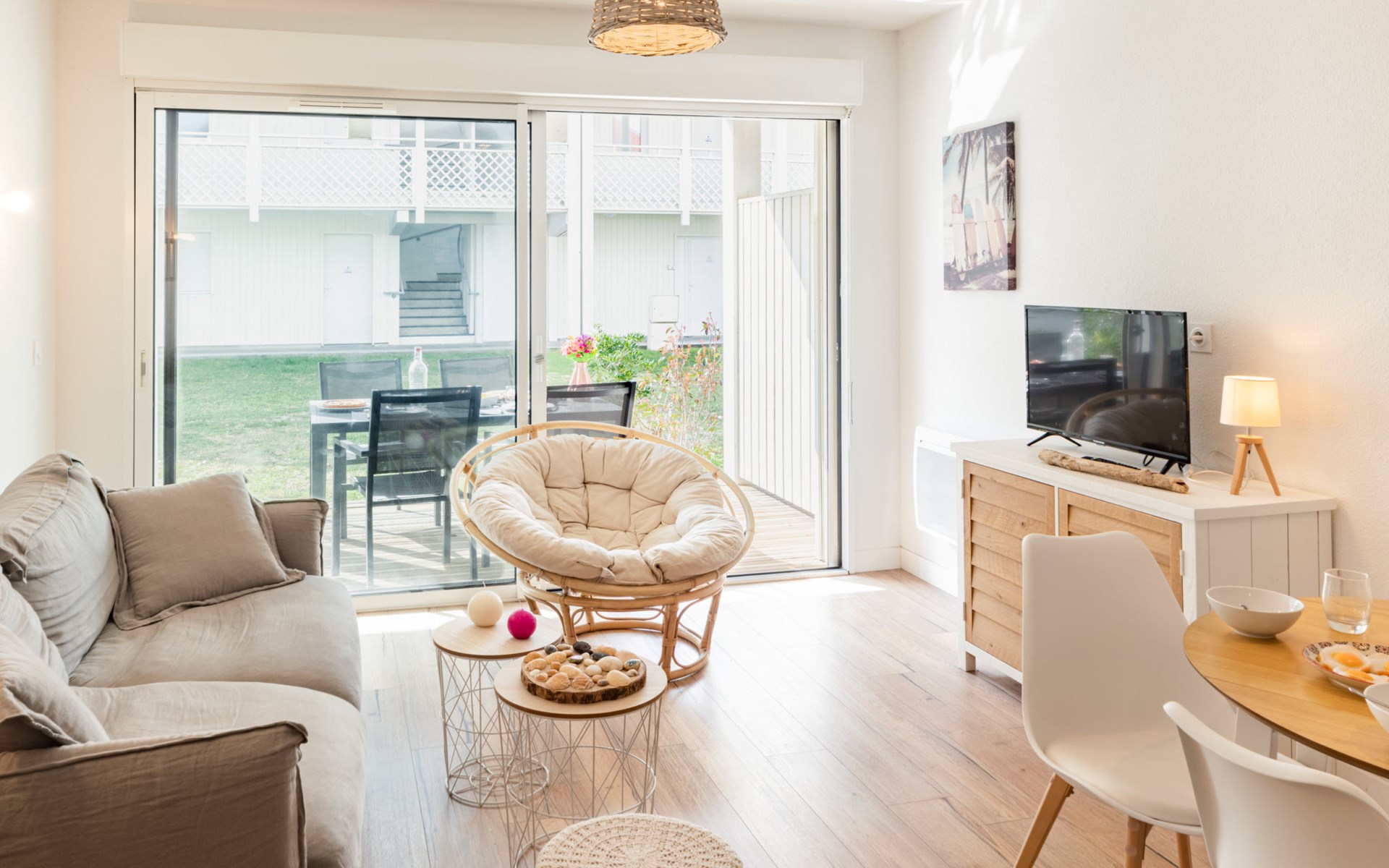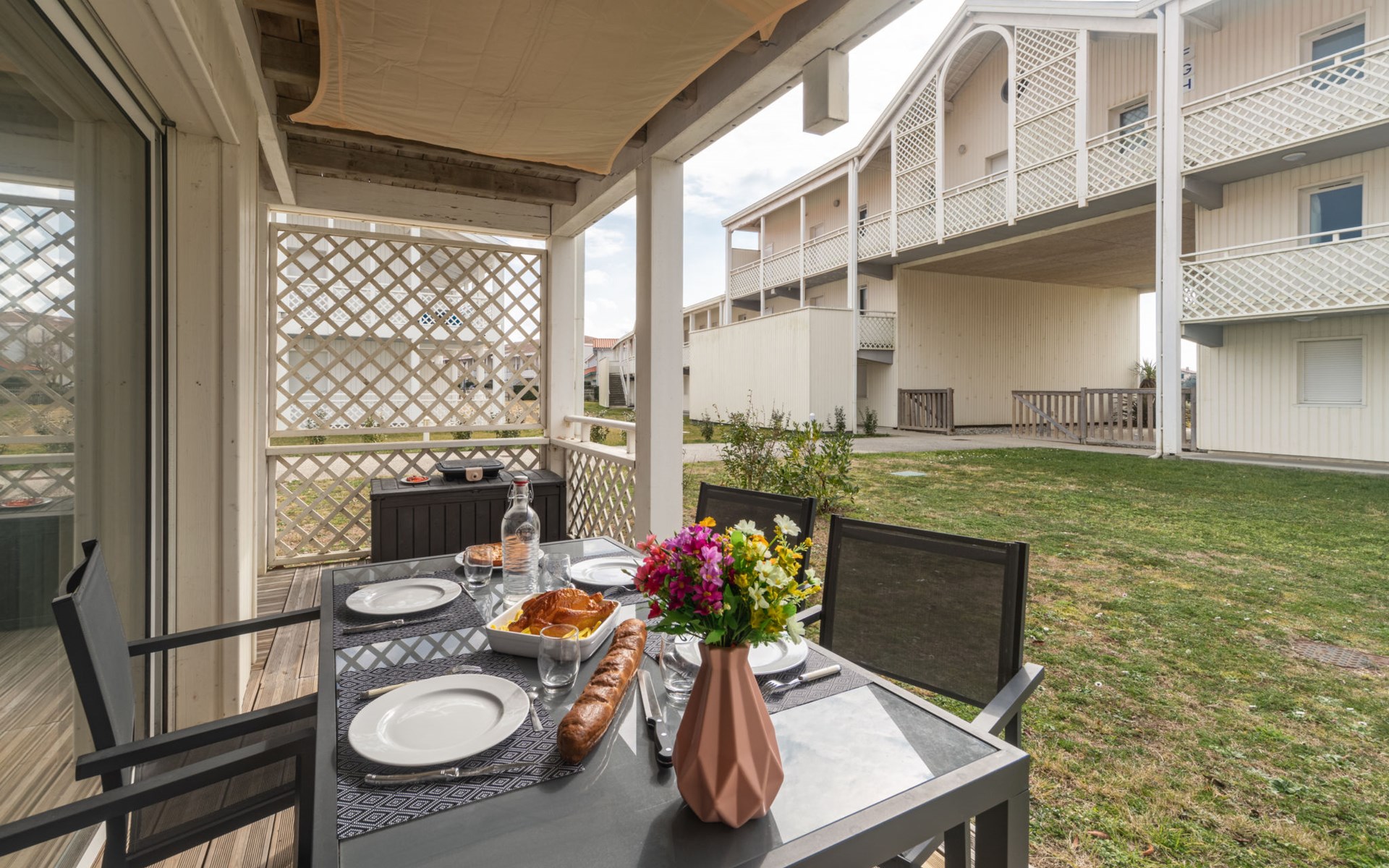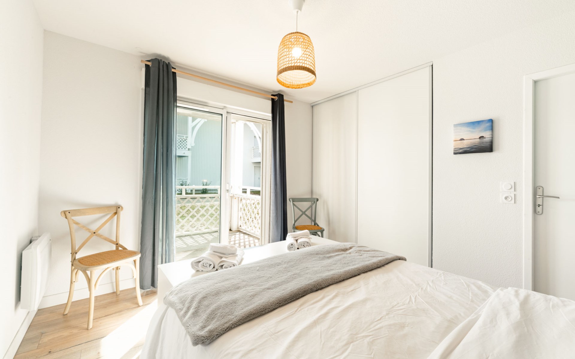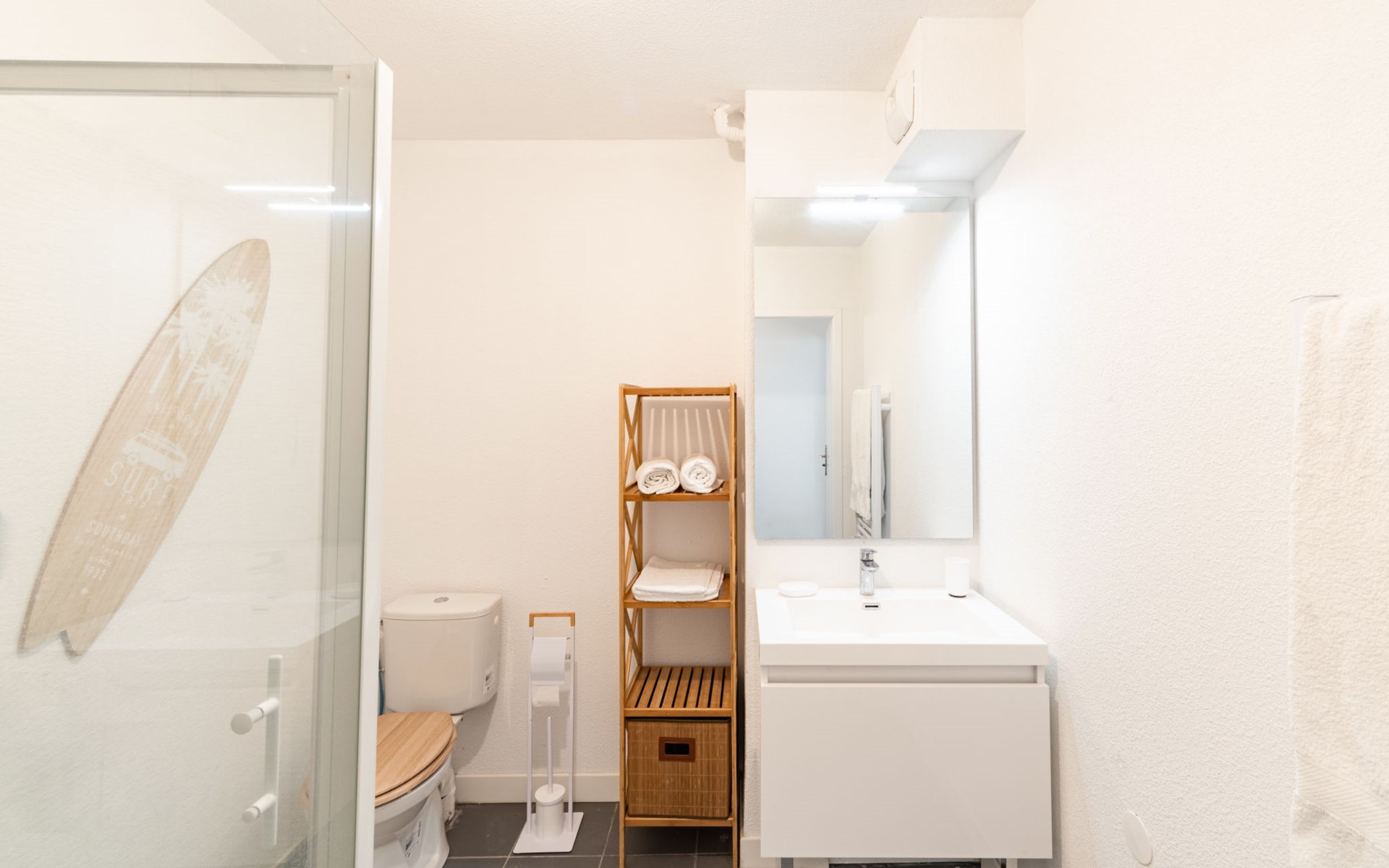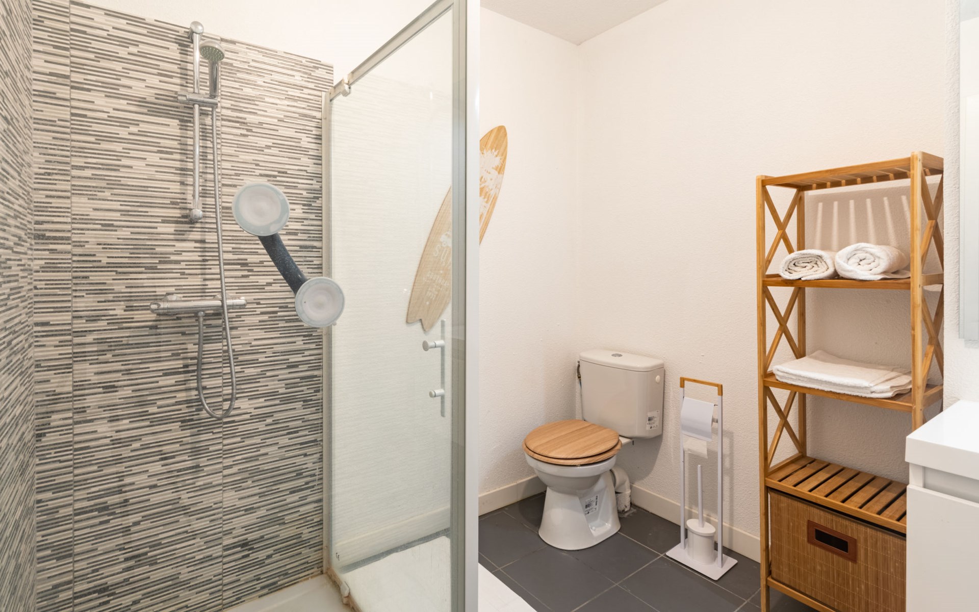 Mimizan Plage: Residenz "Pêcheur", Baujahr 2019. Im Ort, 100 m vom Zentrum von de Mimizan Plage, 600 m vom Waldrand, 200 m vom Meer, 9 km vom See, 200 m vom Strand, 50 m vom Kanal. Zur Mitbenutzung: Schwimmbad eingezäunt (155 - 155 cm tief, saisonale Verfügbarkeit: 01.Jun. - 30.Sep. Öffnungszeiten Schwimmbad: 10:00-19:00) mit Innentreppe. Kinderbecken, Aussendusche. In der Anlage: Einstellraum für Fahrräder, Waschmaschine, Wäschetrockner (zur Mitbenutzung). Einkaufsgeschäft 200 m, Lebensmittelgeschäft, Supermarkt 100 m, Einkaufszentrum 6 km, Restaurant 100 m, Bar, Bäckerei 100 m, Café, Fußgängerzone, Fahrradverleih, Sandstrand "La Garluche" 200 m. Surfschule 250 m, Segelschule 6 km, Tennis 3 km, Reitstall 9 km. Nahe gelegene Sehenswürdigkeiten: Bordeaux 120 km, Arcachon 70 km, Biscarrosse 35 km, Accro branches 5 km, Casino de jeux 1 km, Village de Marquèze 45 km. Bekannte Seen in der Umgebung sind gut erreichbar: Aureilhan 10 km.