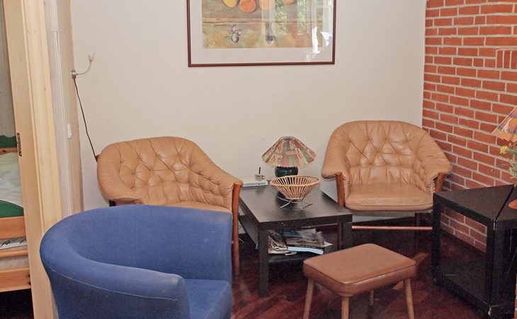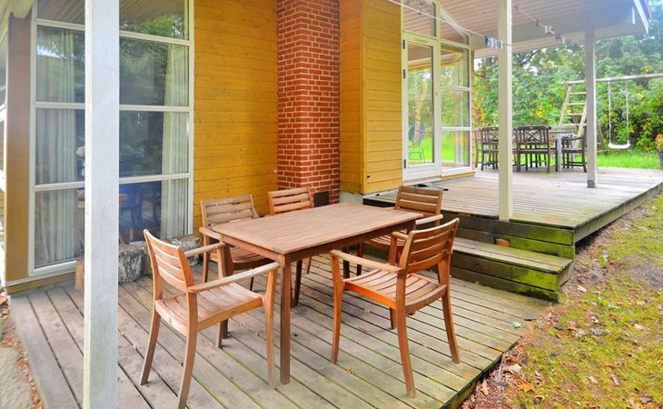 Einfamilienhaus, Baujahr 1996. 100 m vom Meer. Zur Alleinbenutzung: naturbelassenes Grundstück 1'100 m2. Terrasse (50 m2), Kinderspielplatz (Schaukel). Im Hause: Sauna, Waschmaschine, Wäschetrockner. Parkplatz beim Haus. Lebensmittelgeschäft 1 km. Der Besitzer akzeptiert keine Jugendgruppen.