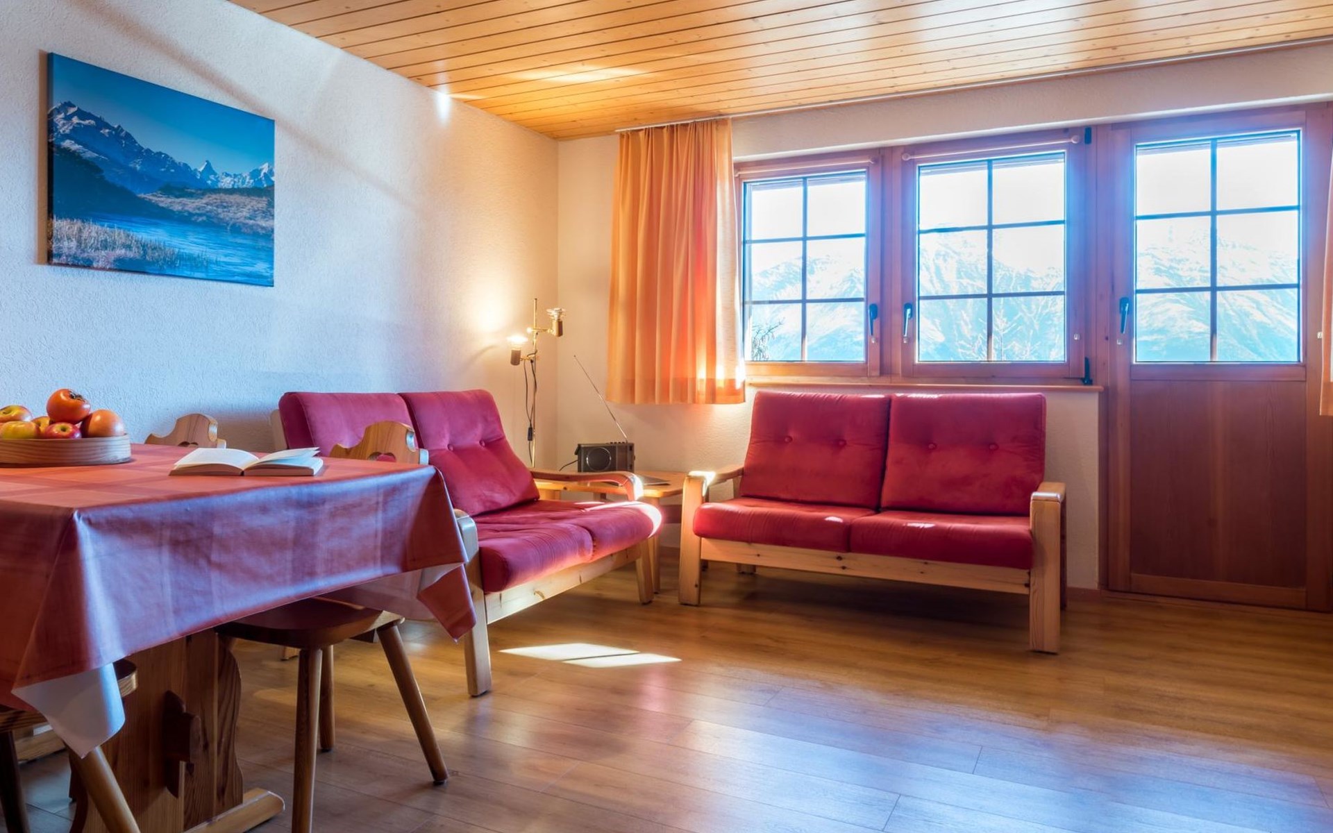 Die 2 1/2-Zimmer-Wohnung eignet sich für 1 bis 4 Personen und bietet einen separaten Schlafraum sowie einen Wohnbereich mit Küche und zwei Klappbetten. Der Südbalkon eröffnet einen freien Blick auf die Walliser Viertausender. Die Wohnung ist gepflegt und sehr sauber ausgestattet mit WLAN, SAT-TV, Lift, gemeinsamer Waschmaschine und Trockner. Im Winter steht ein abgeschlossener Skiraum mit moderner Schuhtrocknungsanlage samt Desinfektion zur Verfügung. Im Sommer lädt eine Liegewiese mit Grillplatz zum Verweilen ein. Es handelt sich um eine Nichtraucher-Wohnung.