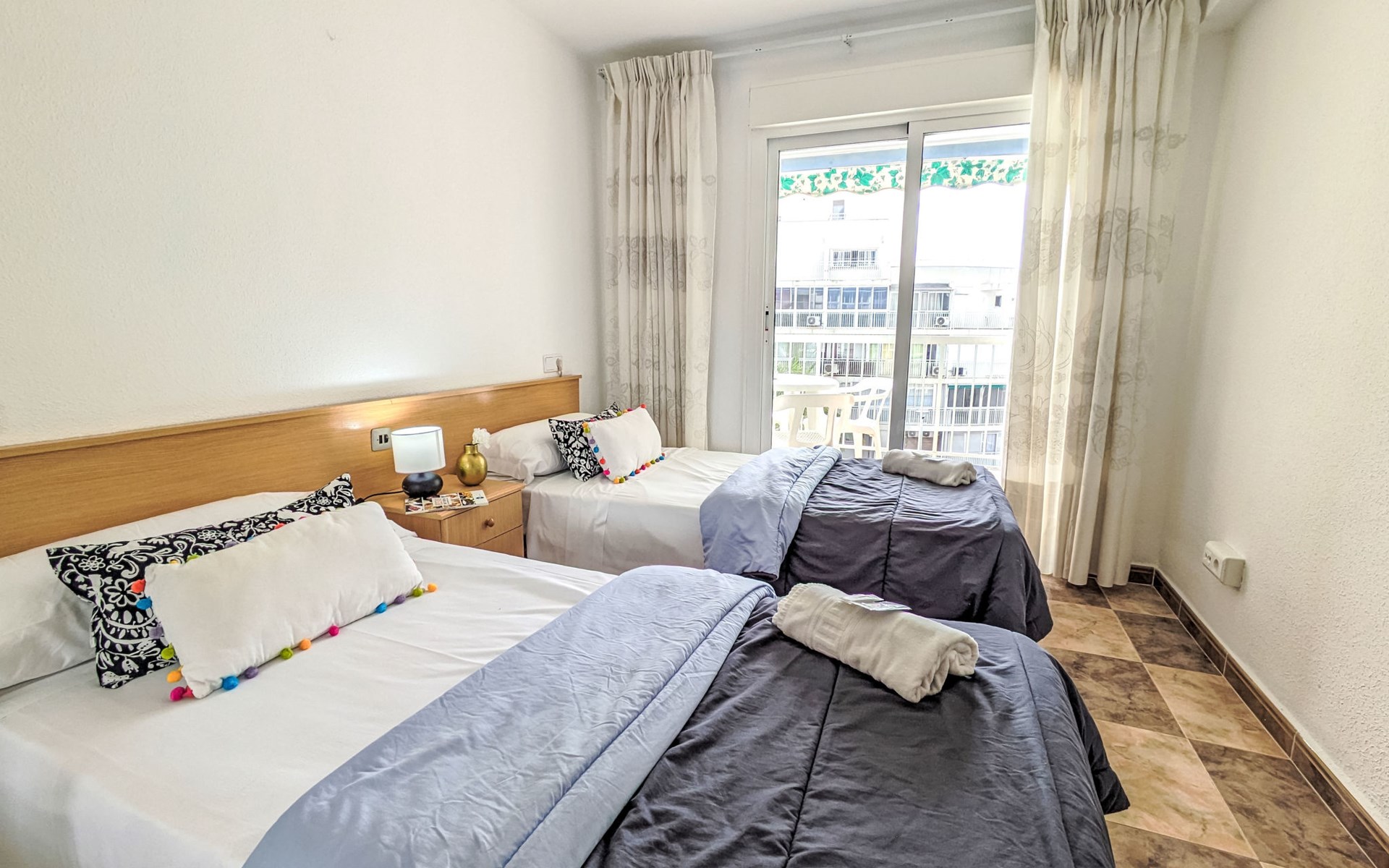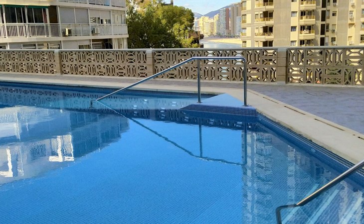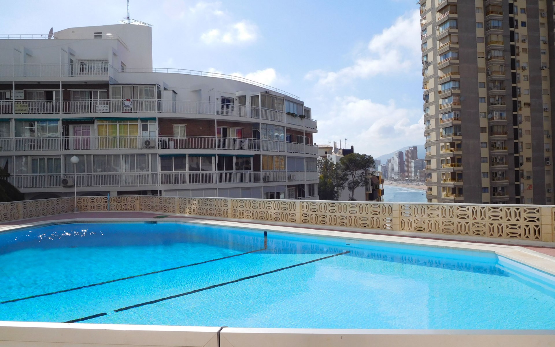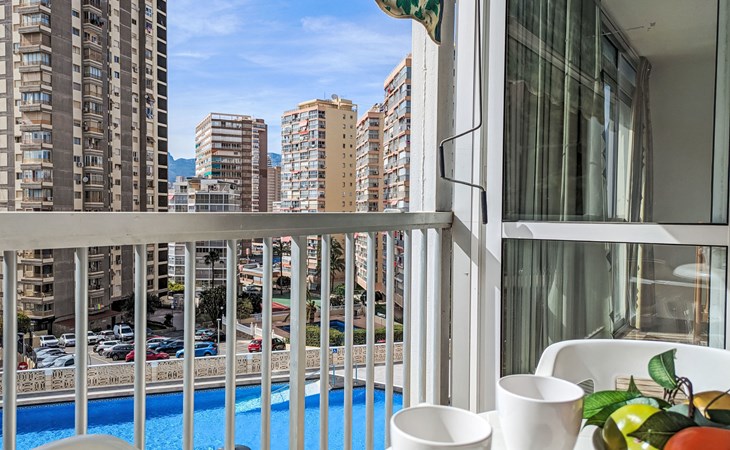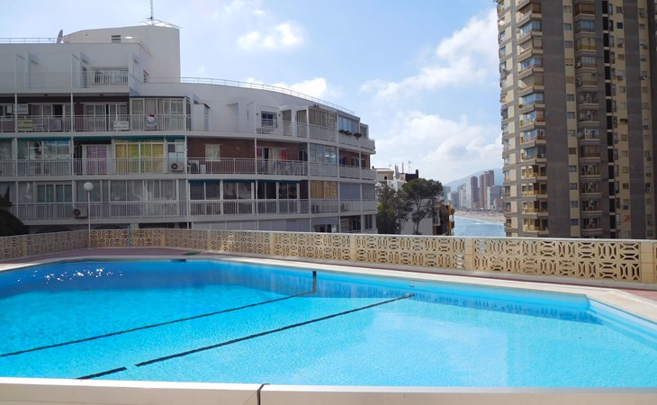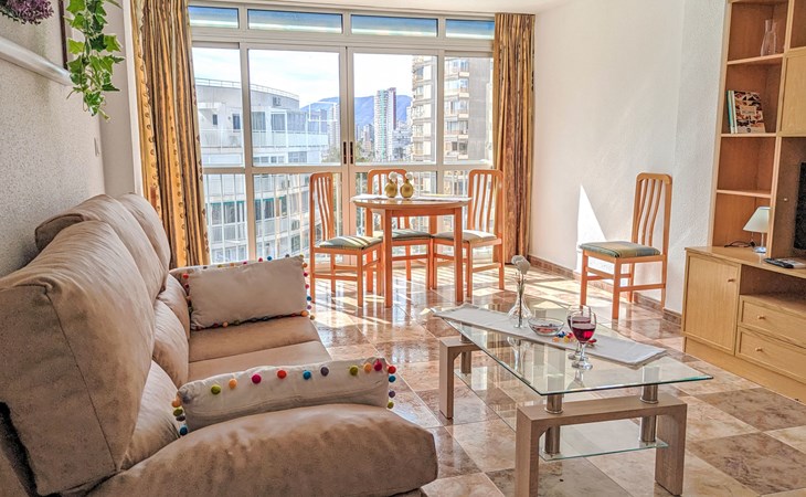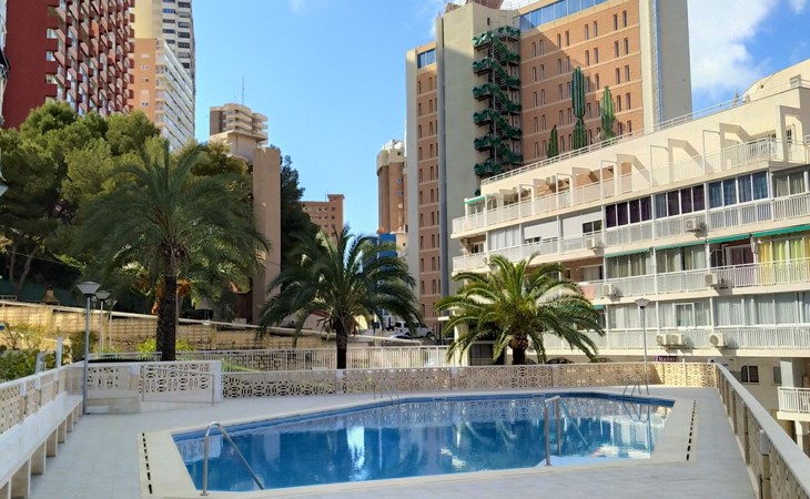 Playa Levante: Grosses, gemütliches Appartementhaus "Halcon Levante", auf 16 Stockwerken. Im Ort, 300 m vom Zentrum von Rincon de Loix, belebte, sonnige Lage am Hang, 100 m vom Meer, 100 m vom Strand. Zur Mitbenutzung: Grundstück (eingezäunt), Schwimmbad (7 x 11 m, 50 - 190 cm tief, saisonale Verfügbarkeit: 16.Jun. - 16.Sep.). Aussendusche. Im Hause: Fahrstuhl. Steile Zufahrt. Parkplatz auf dem Grundstück. Lebensmittelgeschäft 10 m, Supermarkt 50 m, Restaurant, Bar 100 m, Bushaltestelle "Benidorm" 100 m, Bahnstation "Benidorm" 4 km. Golfplatz (18 Loch) 6 km, Wanderwege ab Haus 200 m. Nahe gelegene Sehenswürdigkeiten: Terra Mitica 11 km, Terra Natura 11 km, Aqualandia 2 km, Mundomar 2 km, Alicante 46 km, Aeropuerto Alicante 60 km. Bitte beachten: Babyausstattung auf Anfrage. Der Besitzer akzeptiert keine Jugendgruppen. Die Nachbarschaft ist sehr lärmempfindlich. Ruhe und gutes Benehmen wird erwartet.