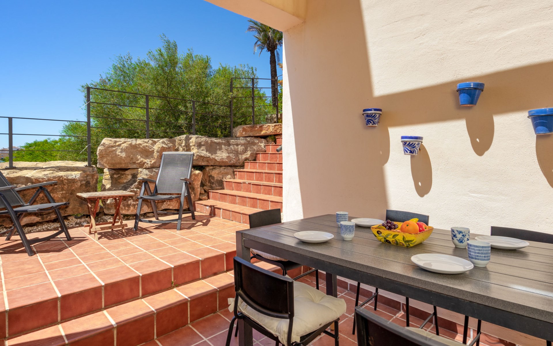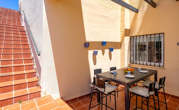 Sehr schönes, gemütliches Appartementhaus "Terrazas Calamijas". Im Bezirk La Cala de Mijas, ruhige, sonnige Lage, 900 m vom Meer, Richtung Südosten. Zur Mitbenutzung: Garten, Schwimmbad nierenförmig (7 x 20 m, 140 - 140 cm tief, saisonale Verfügbarkeit: 15.Mai. - 15.Sep.). Kinderbecken, Aussendusche. Treppenweg (30 Stufen) bis zum Haus. Parkplatz Nr. 236. Einkaufsgeschäft 400 m, Supermarkt, Restaurant, Bar 300 m, Bäckerei 150 m, Café 300 m, Bushaltestelle "Lidl La Cala" 700 m, Sandstrand 900 m. Die Nachbarschaft ist sehr lärmempfindlich. Ruhe und gutes Benehmen wird erwartet.