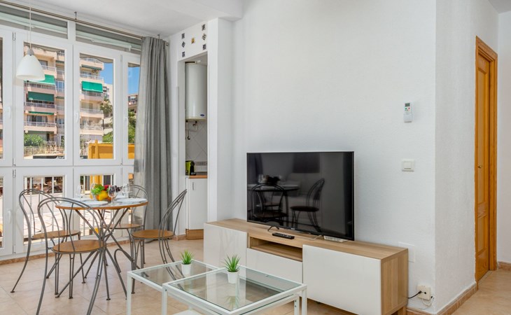 Puerto Marina: Schönes, komfortables Appartementhaus "Benasol". Zentrale, belebte Lage, 400 m vom Meer, 400 m vom Strand. Zur Mitbenutzung: Garten mit Rasen, Schwimmbad (saisonale Verfügbarkeit: 01.Jan. - 31.Dez.). WC im Poolbereich, Aussendusche. Im Hause: Fahrstuhl. Einkaufsgeschäft, Supermarkt, Restaurant, Bar 50 m, Café 100 m, Bushaltestelle 50 m, Bahnstation 1.5 km, Sandstrand 400 m. Sporthafen 400 m, Jacht-Hafen, Surfschule, Segelschule 400 m, Luftseilbahn 5 km. Nahe gelegene Sehenswürdigkeiten: Sea Life 200 m, Selwoo Marina 2 km, Aqualand 3 km, Malaga aeropuerto 10 km. Der Besitzer akzeptiert keine Jugendgruppen. Bitte beachten: Nacht Club/Disco 400 m vom Haus.