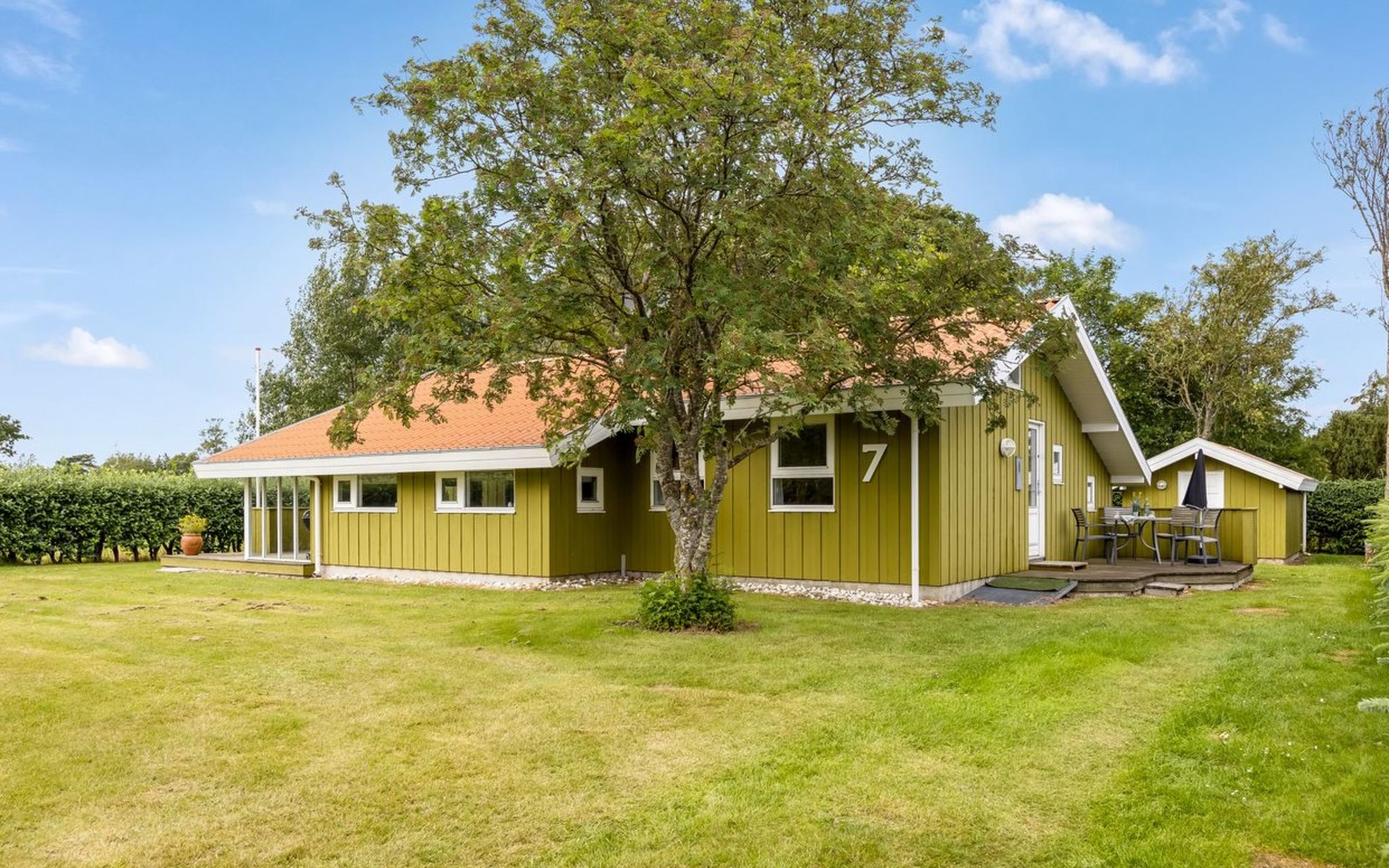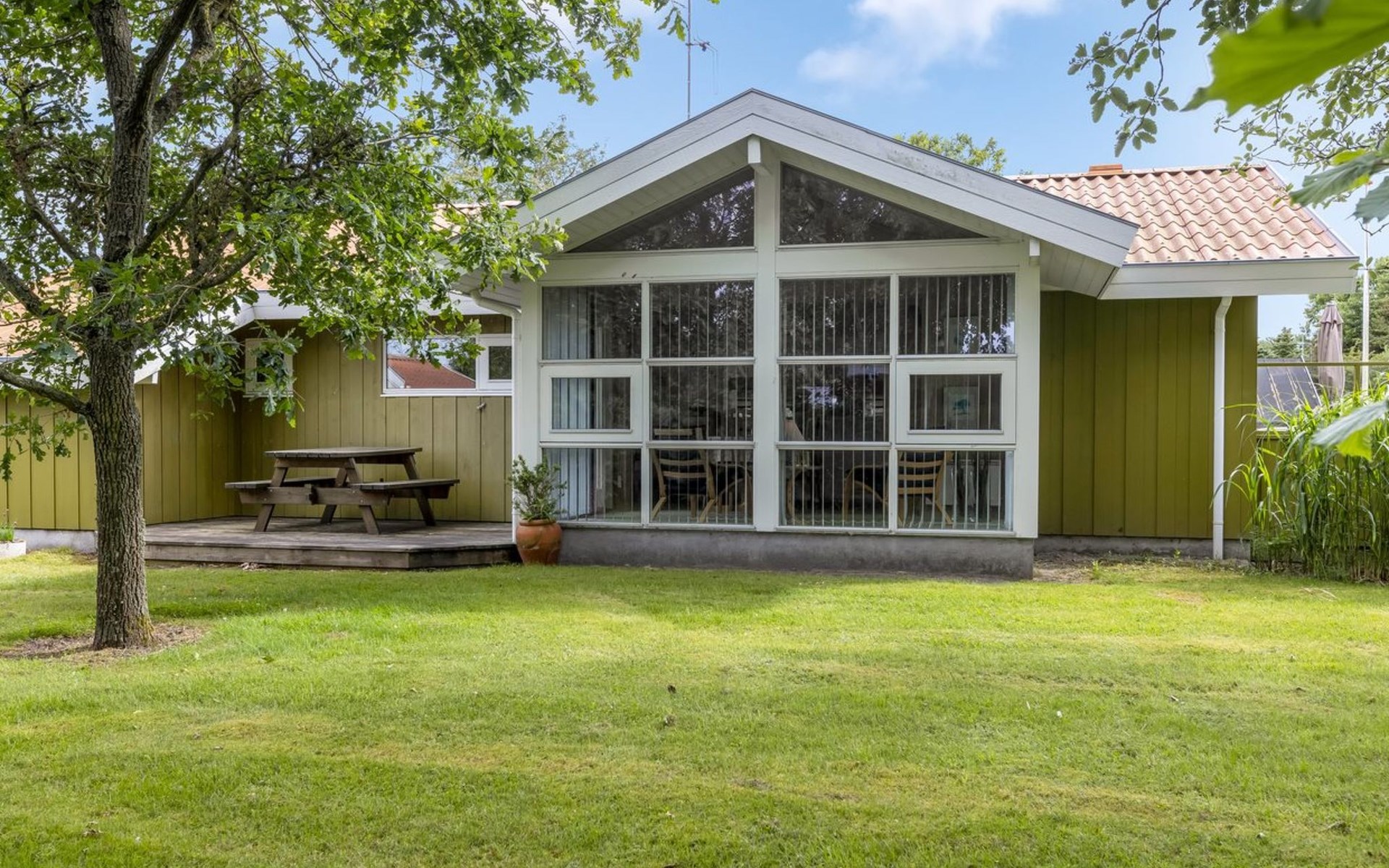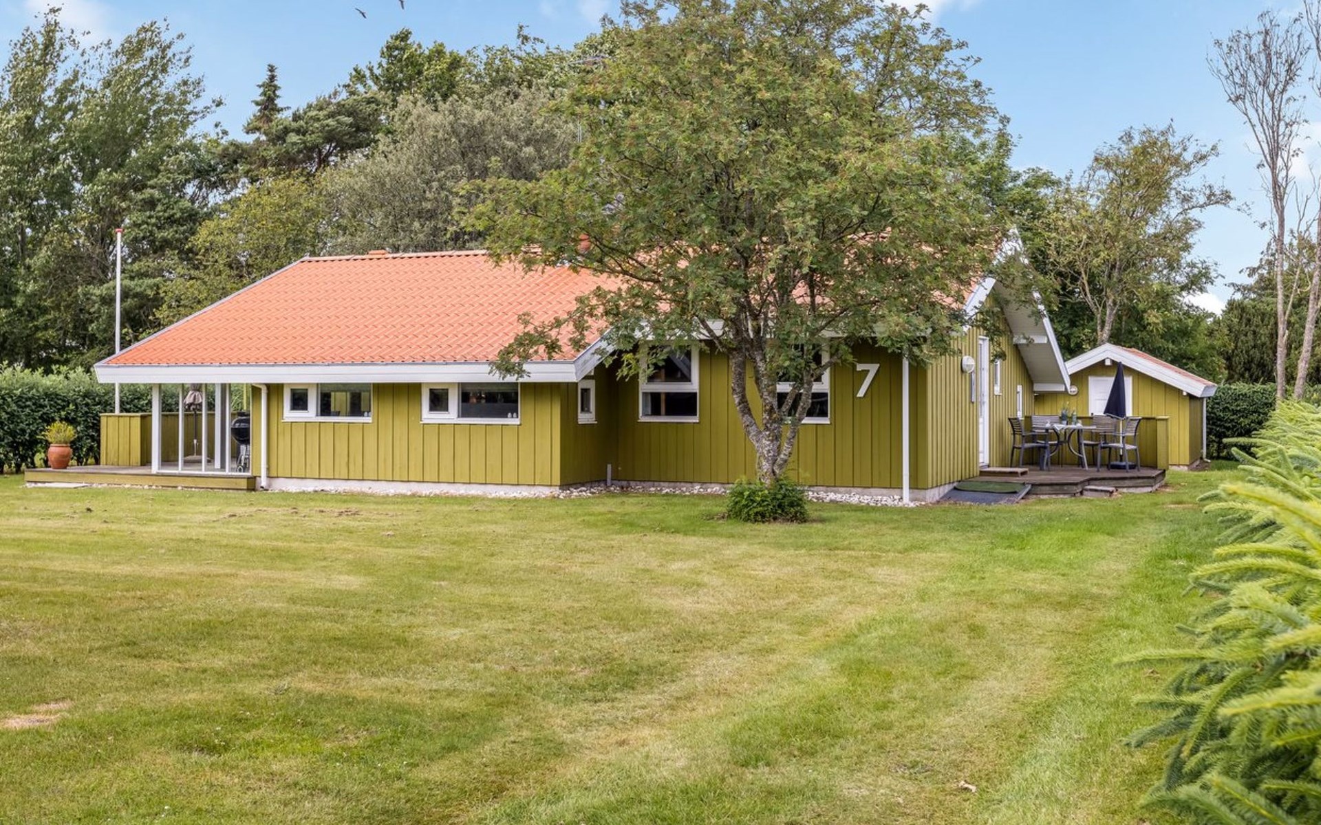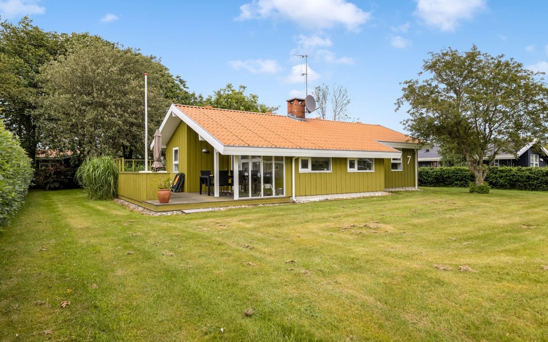 Einfamilienhaus, Baujahr 1986. 260 m vom Meer. Zur Alleinbenutzung: Grundstück 874 m2, gepflegter Garten. Grill. Im Hause: Waschmaschine. Parkplatz beim Haus. Lebensmittelgeschäft 1.6 km. Golfplatz 15.3 km. Der Besitzer akzeptiert keine Jugendgruppen.