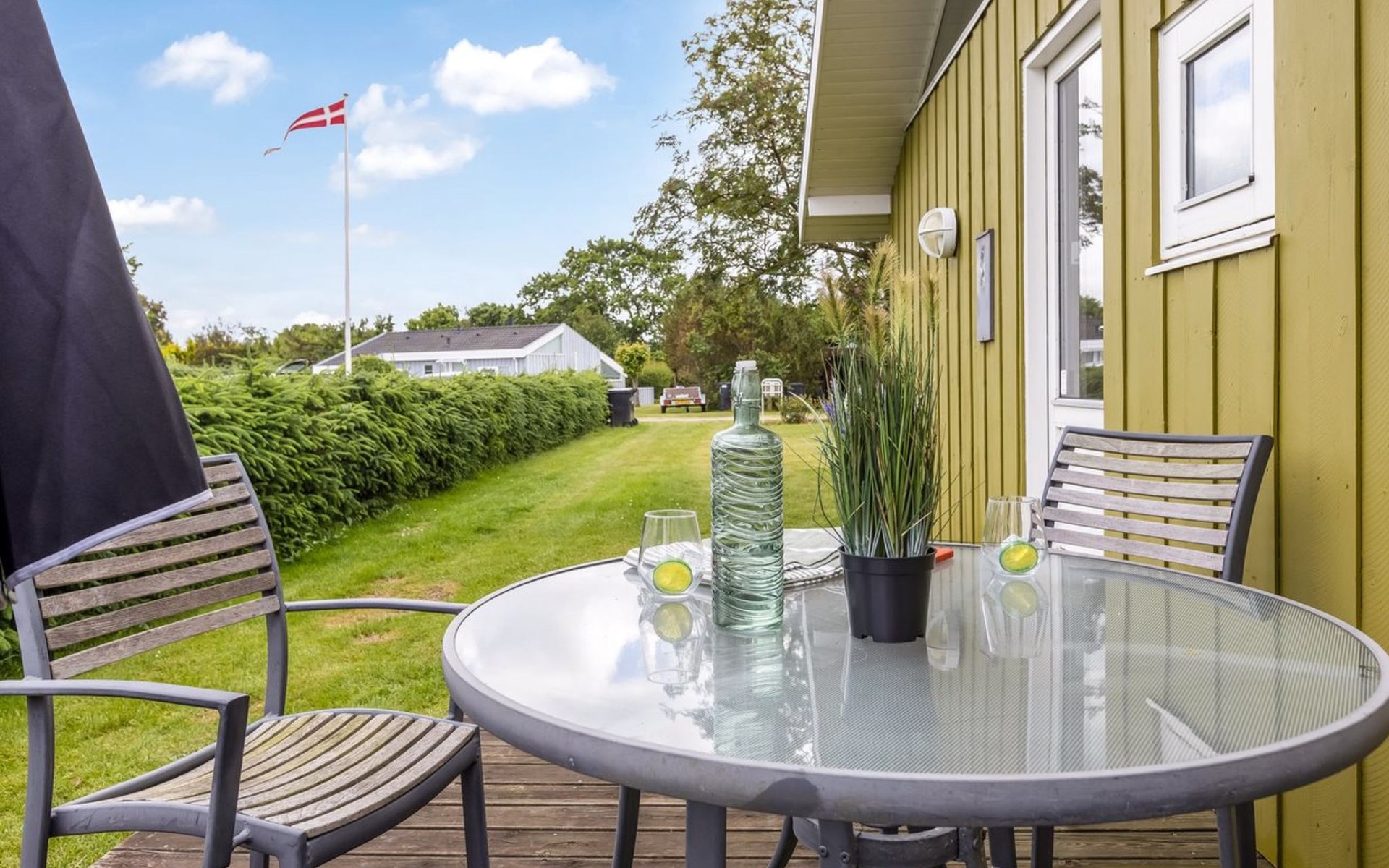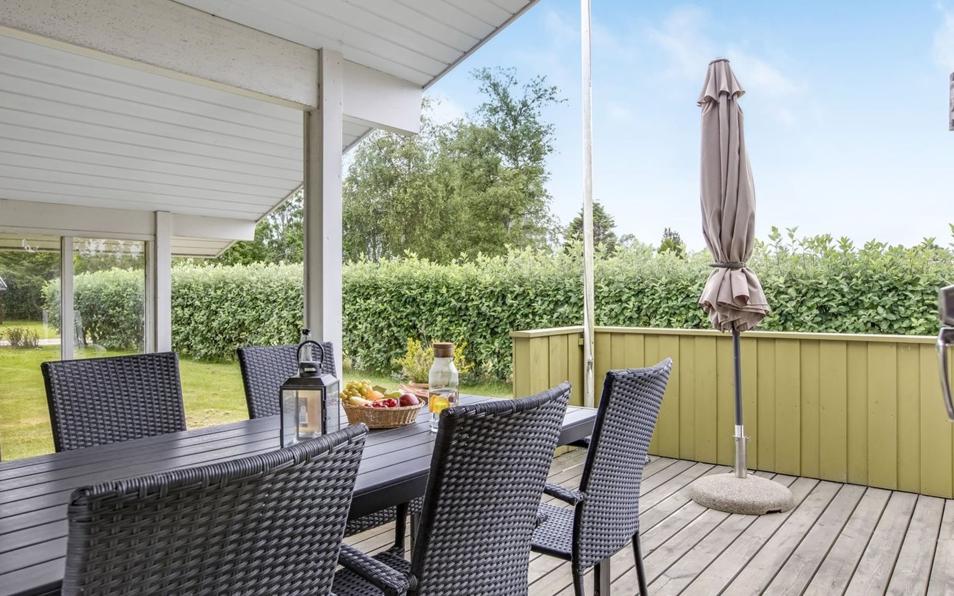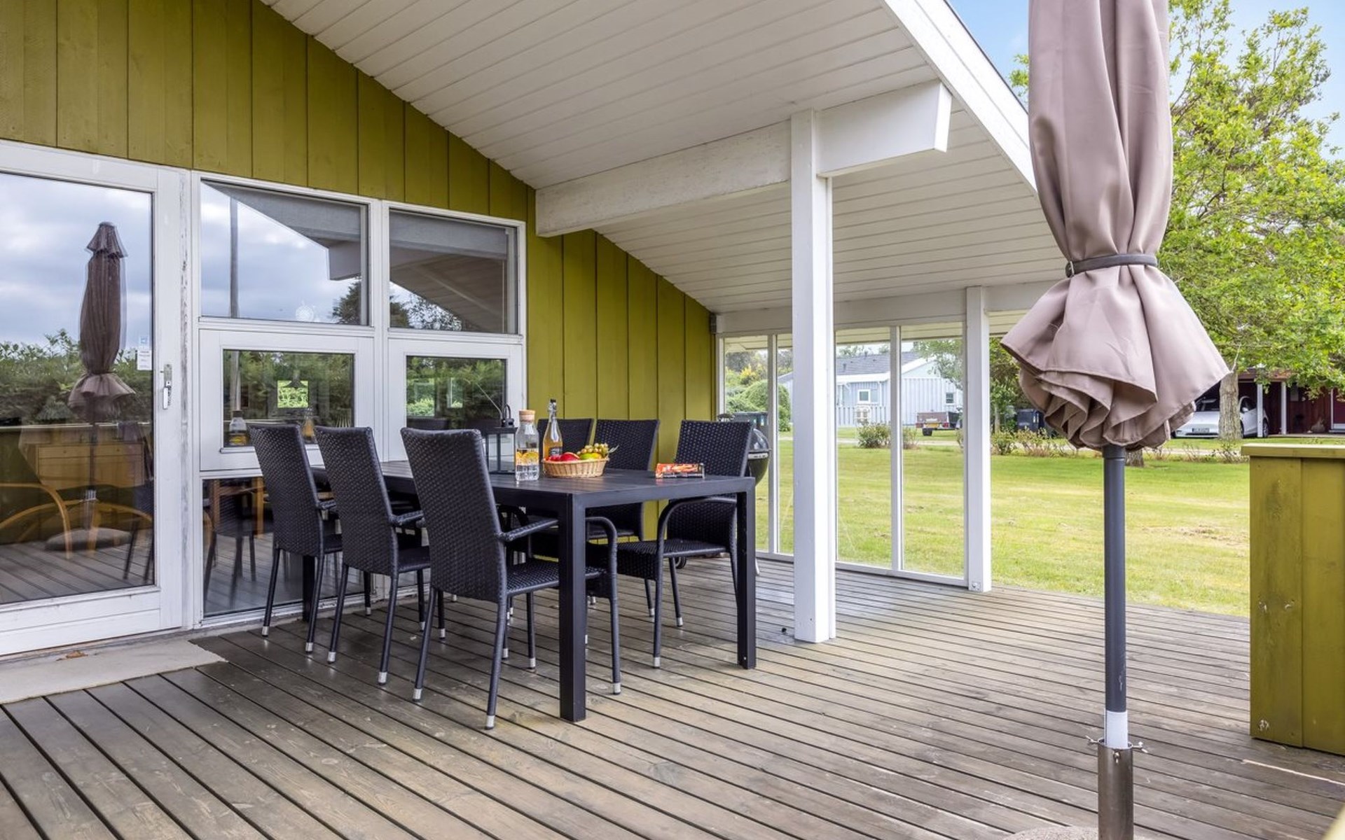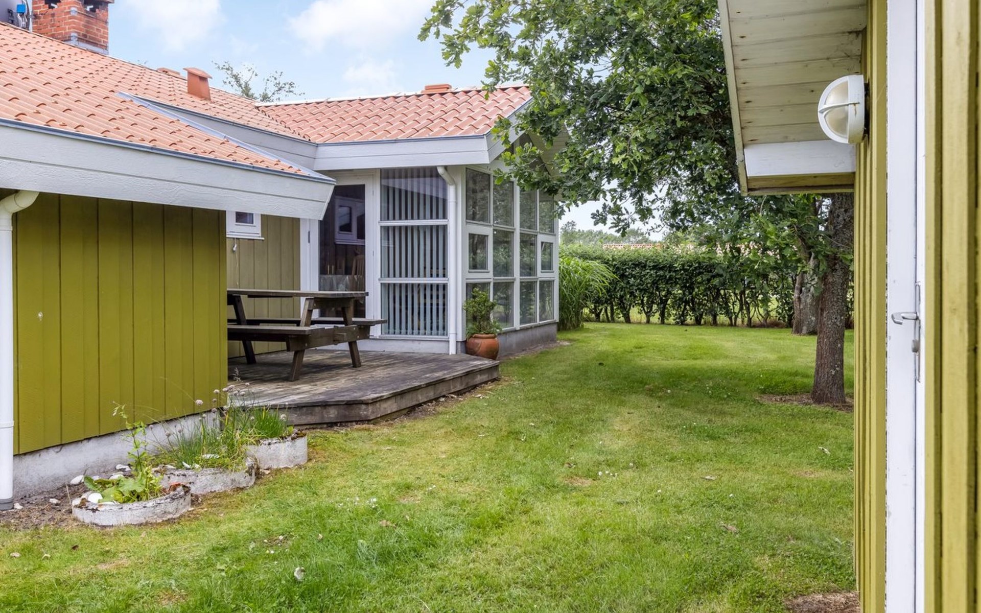 Einfamilienhaus, Baujahr 1986. 260 m vom Meer. Zur Alleinbenutzung: Grundstück 874 m2, gepflegter Garten. Grill. Im Hause: Waschmaschine. Parkplatz beim Haus. Lebensmittelgeschäft 1.6 km. Golfplatz 15.3 km. Der Besitzer akzeptiert keine Jugendgruppen.