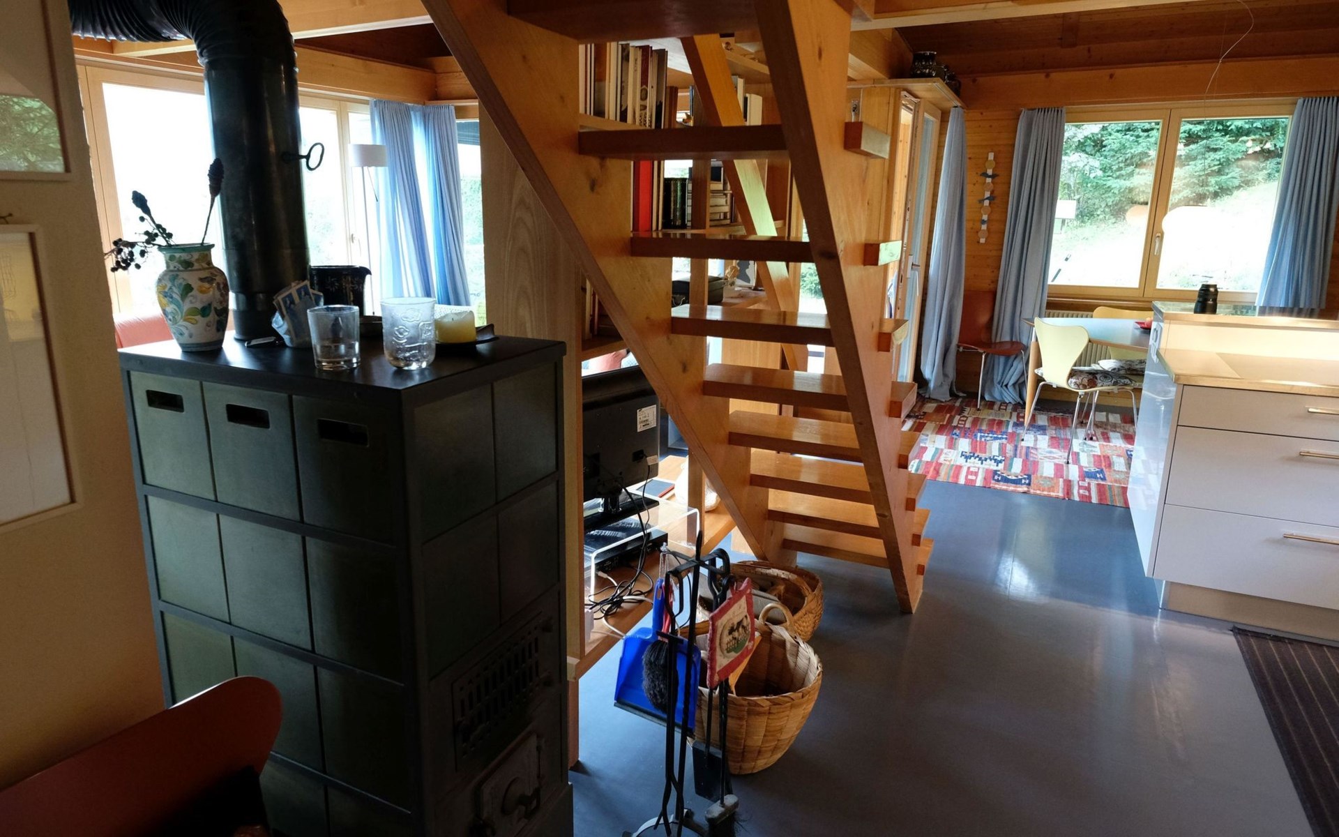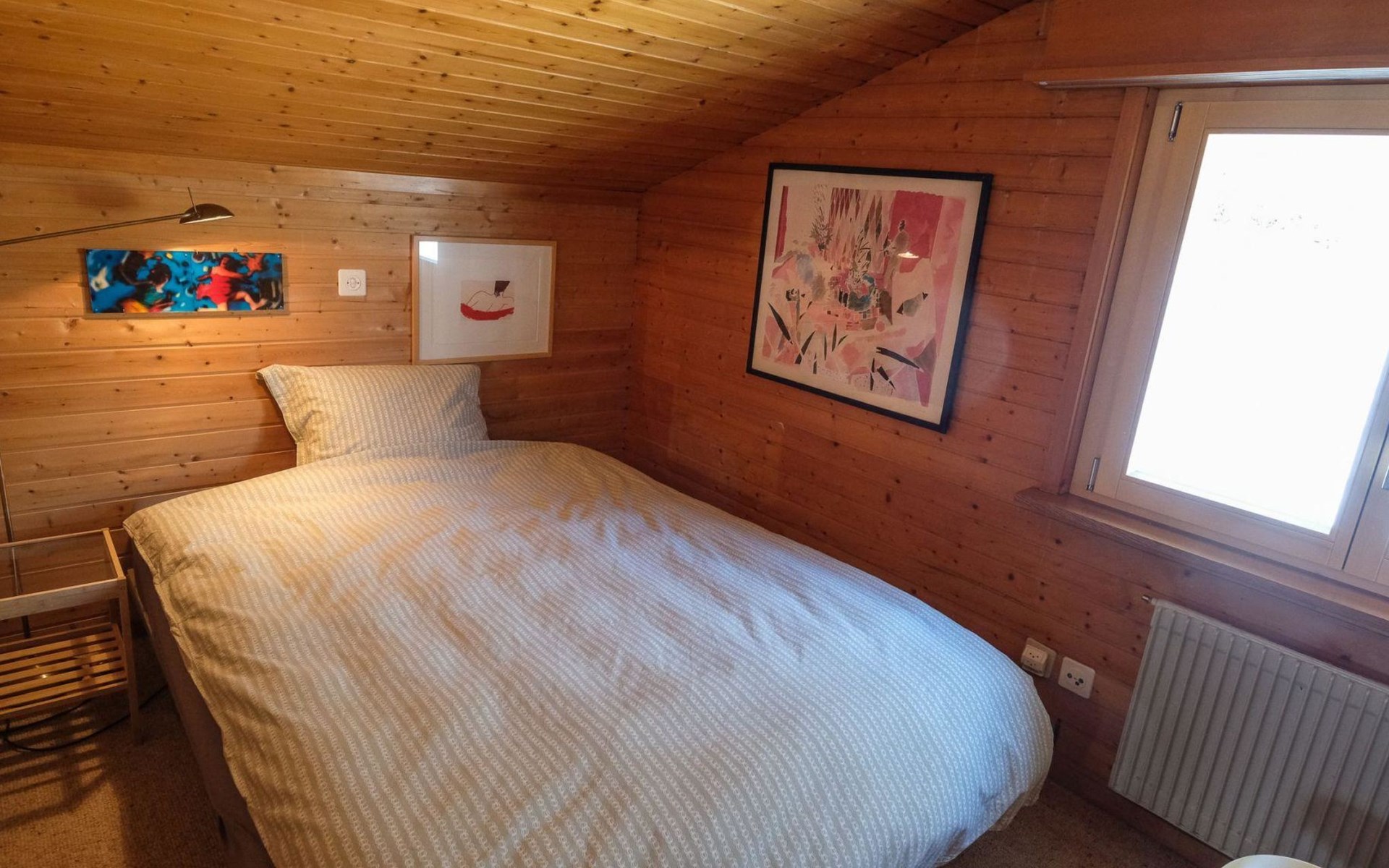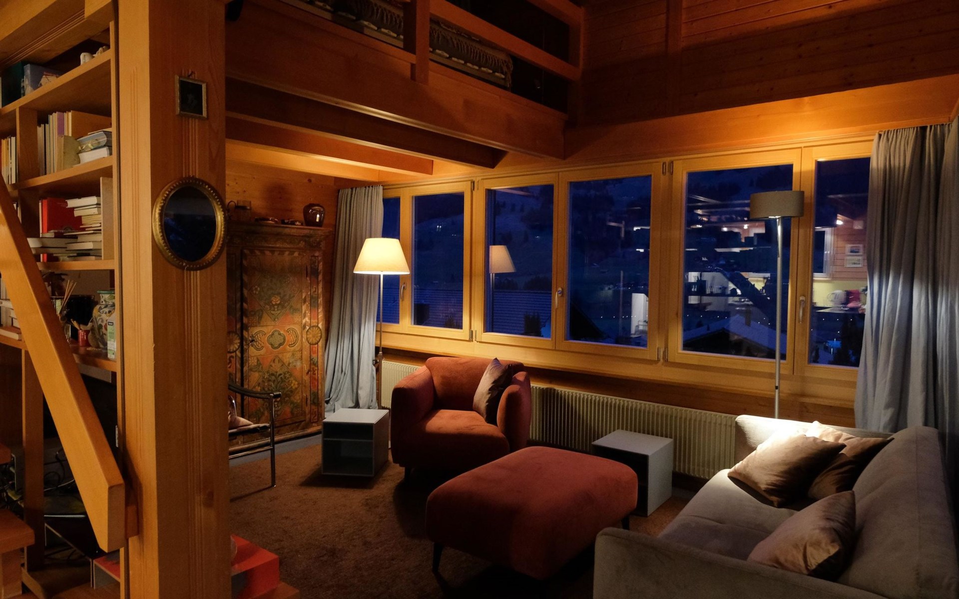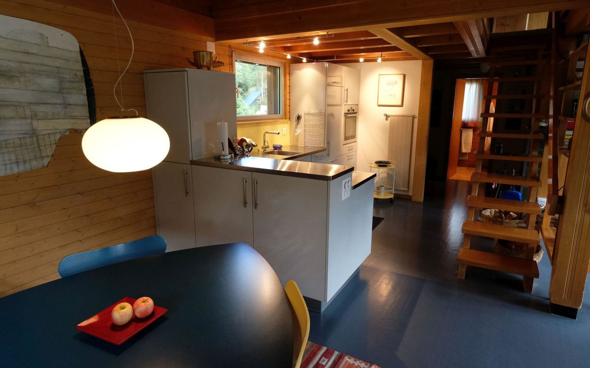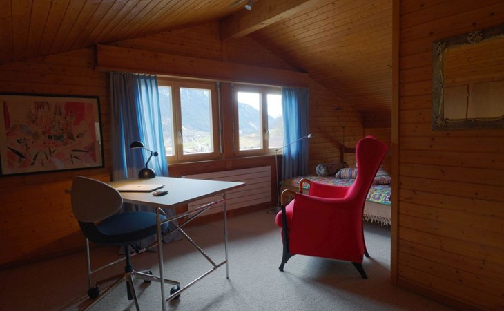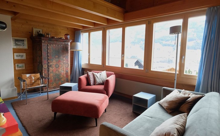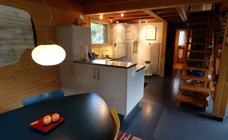 Hochparterre (Eingang): Grosses und helles Wohn-/Esszimmer mit Sofa, 2 Sesseln, TV, Teleboy mit über 250 Sendern, Apple TV und Netflix (eigenes Abo nötig), Essecke mit Esstisch. Offene Küche mit Geschirrspüler, Kapsel-Kaffeemaschine (Nespresso), Fondue- und Raclette-Set sowie diversen weiteren Küchengeräten. 1 Schlafzimmer mit Grand Lit (160x200cm). 1 Badezimmer mit Badewanne/WC. 1. Stock (Galerie): 1 separates Schlafzimmer mit 1 Grand Lit (140x200cm). 1 Grand Lit (140x200cm / automatisch verstellbares ergonomisches Bettsystem) auf der Galerie (kein abgeschlossener Raum). WiFi (1000MB/s).